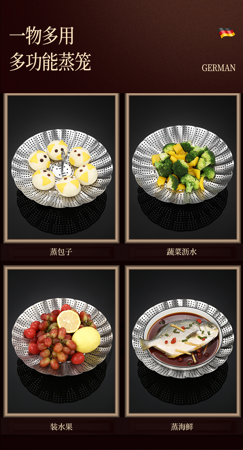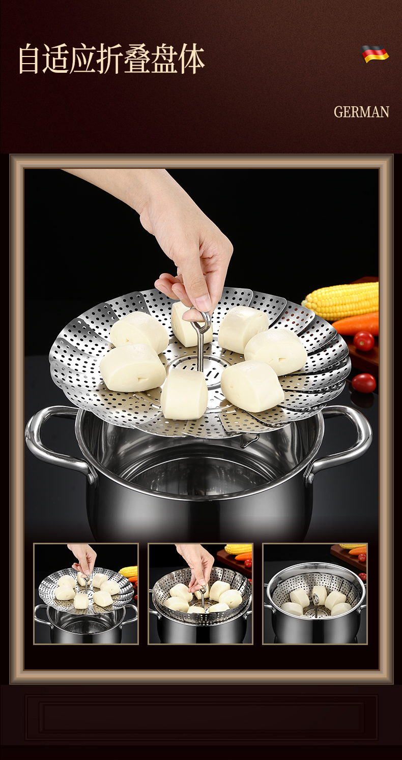 유니버설 스팀 랙 304 스테인레스 스틸 폴딩 기선 트레이 대담한 다기능 요리 찜 랙 가정용 물 개폐식 김이 서랍