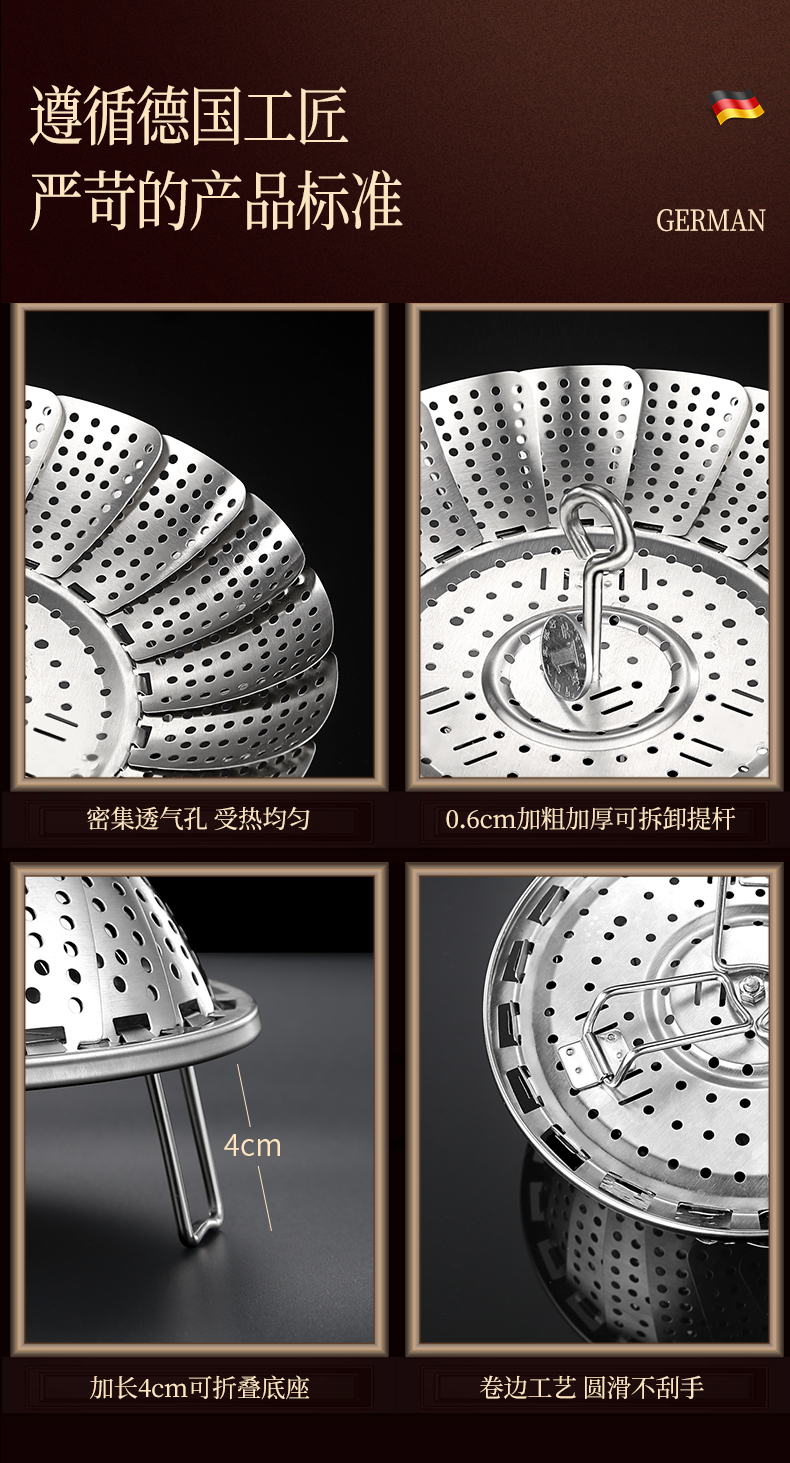 • 304 스테인레스 스틸 접이식 스팀 랙 중간 크기