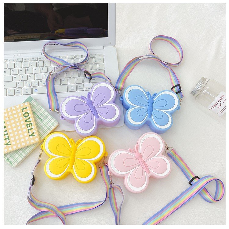 爆款蝴蝶儿童斜挎包学生硅胶零钱包可爱蜜蜂单肩收纳包包女钱包包