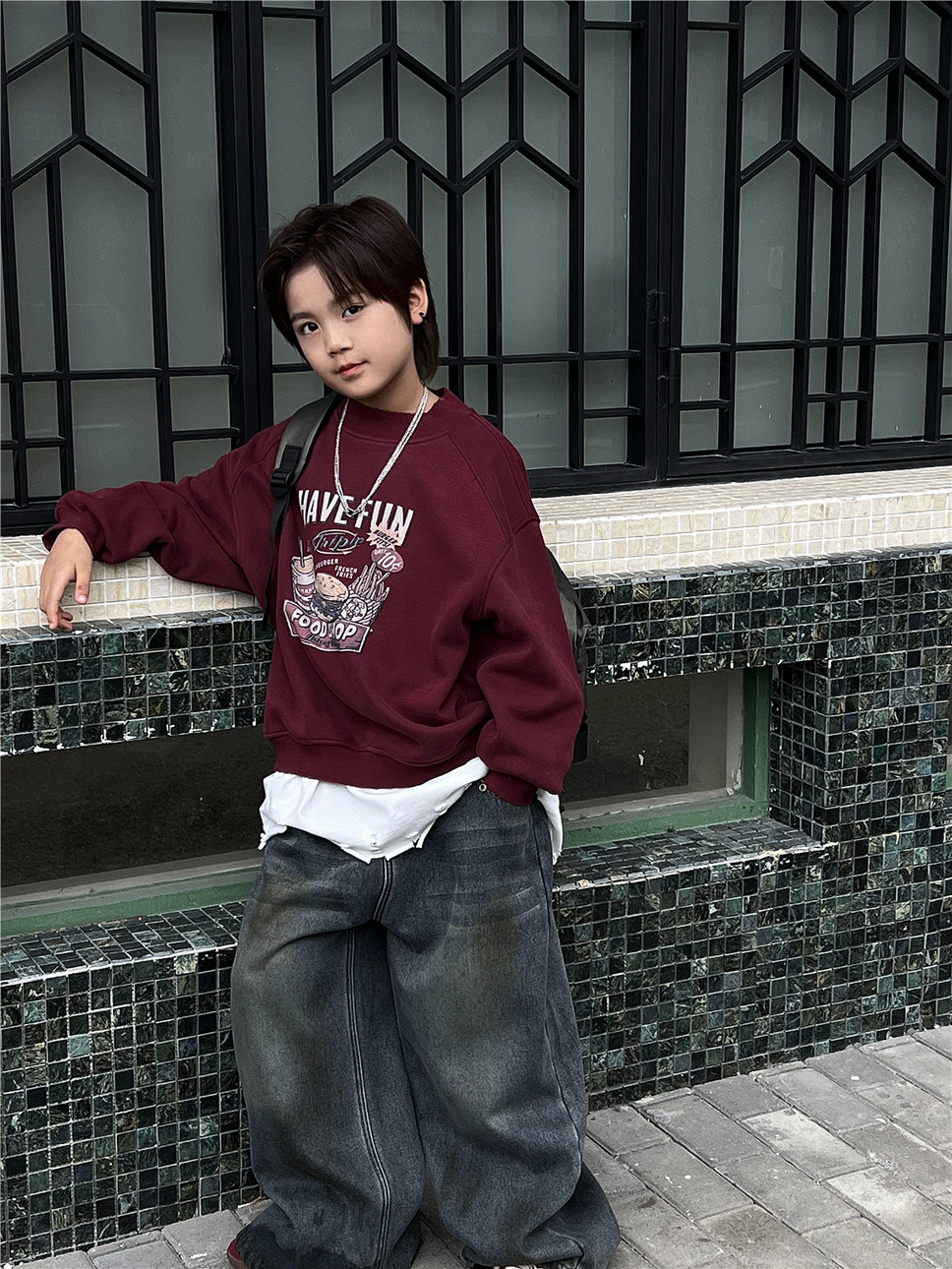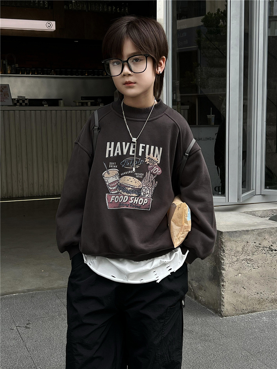 아동복 가을 겨울 두꺼운 스웨트셔츠 트렌디 브랜드 햄버거 콜라 컴퓨터 프린팅 남녀 아동용 따뜻하고 스타일리시한 스웨트셔츠스토어 가기