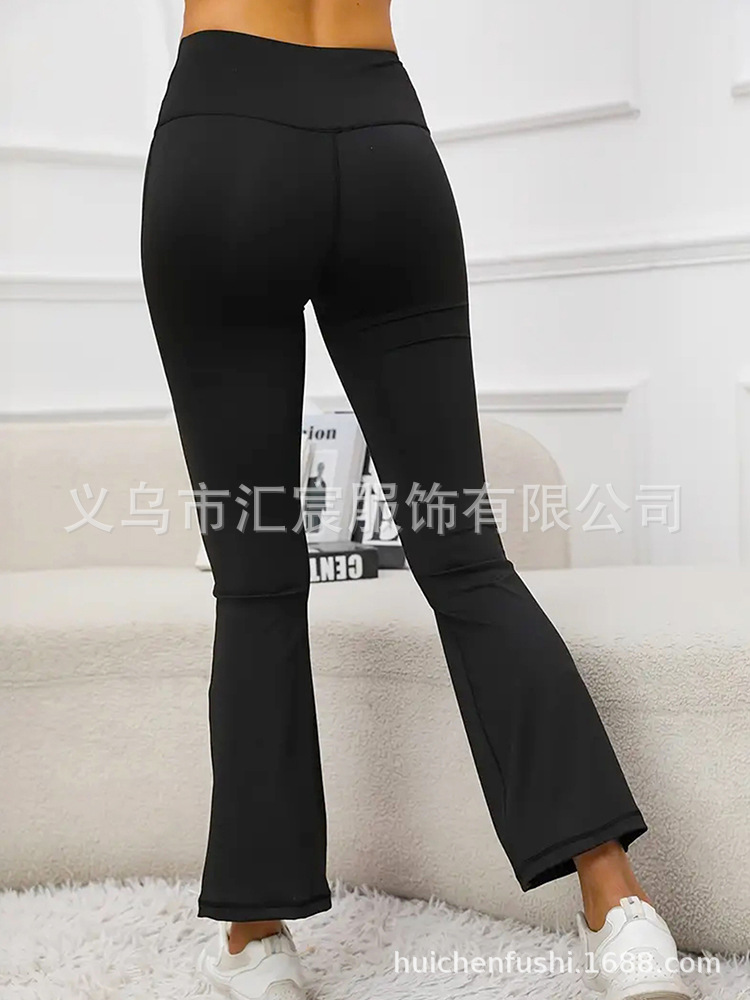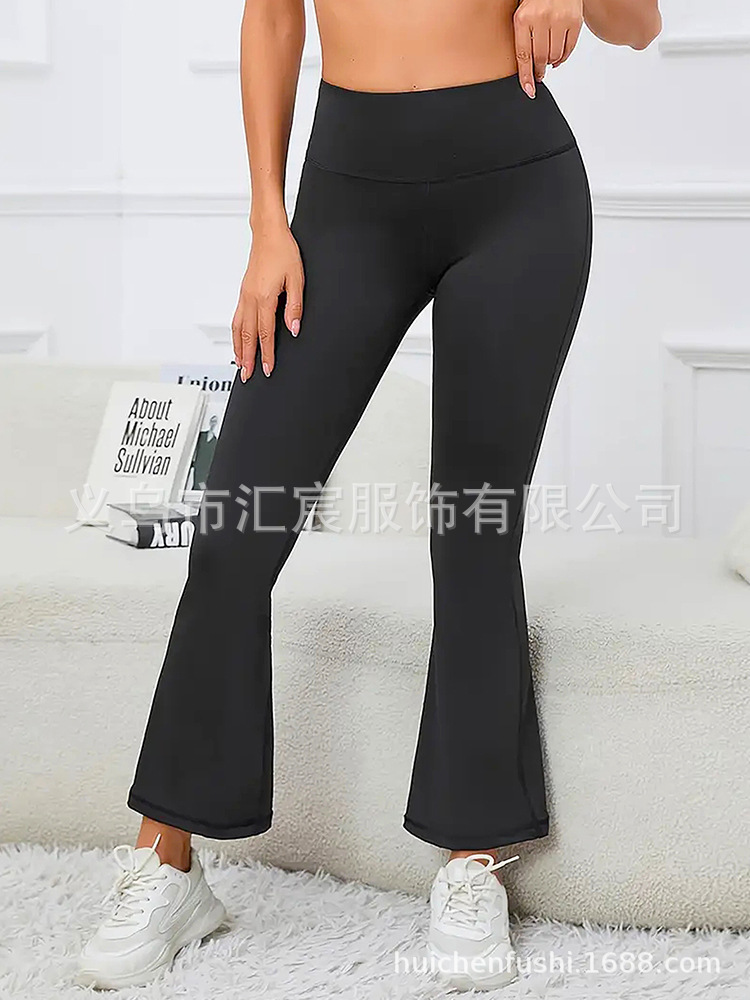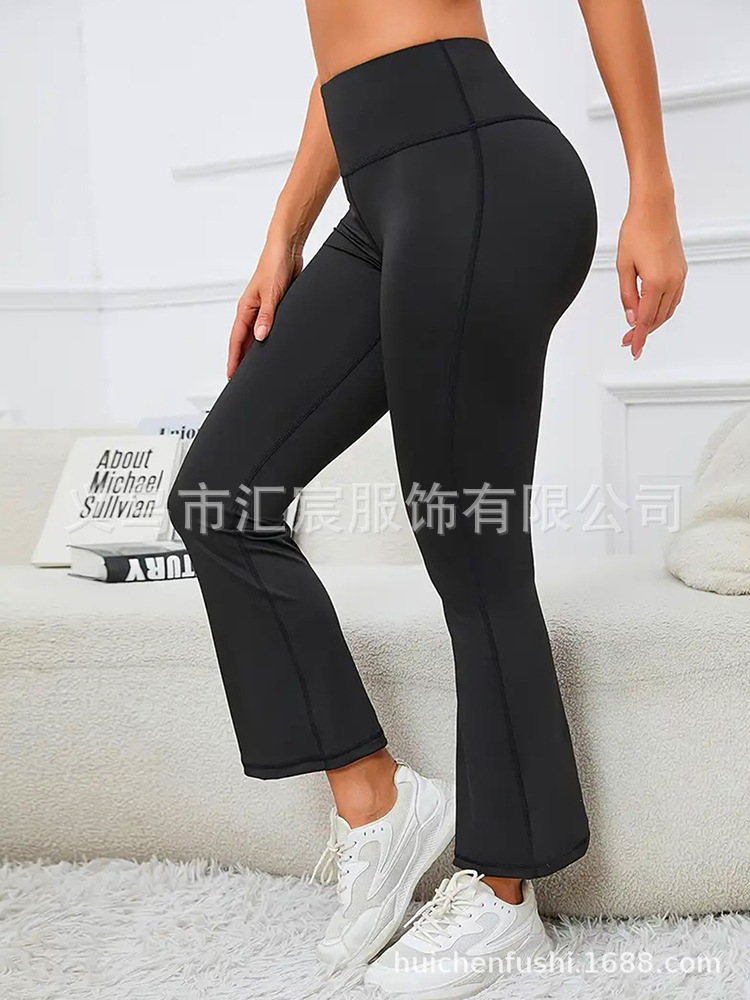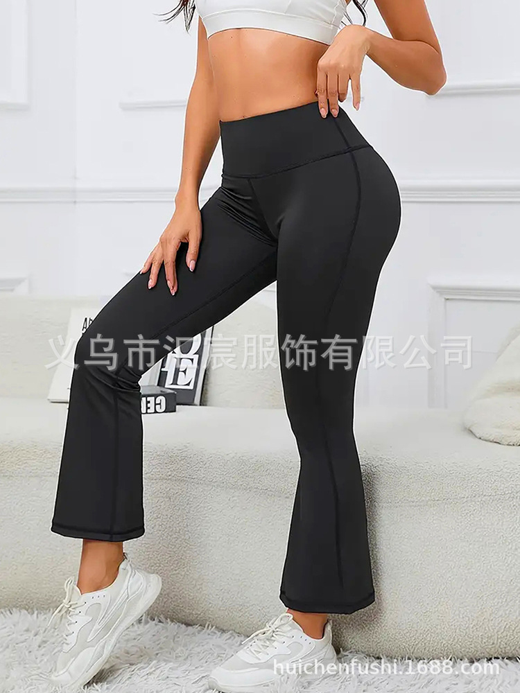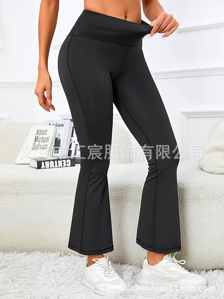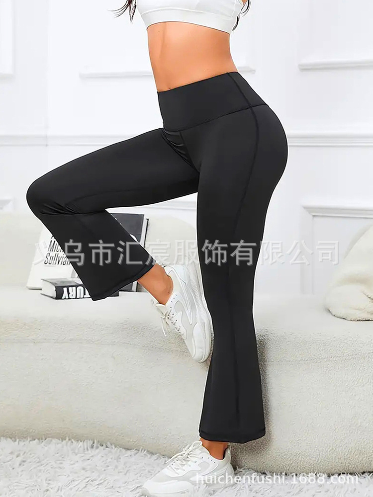 유럽과 미국의 국경 높은 허리 요가 바지 여성용 외부 착용 힙합 탄성 캐주얼 스포츠 바지 마이크로 플레어 바지 자른 바지스토어 가기
