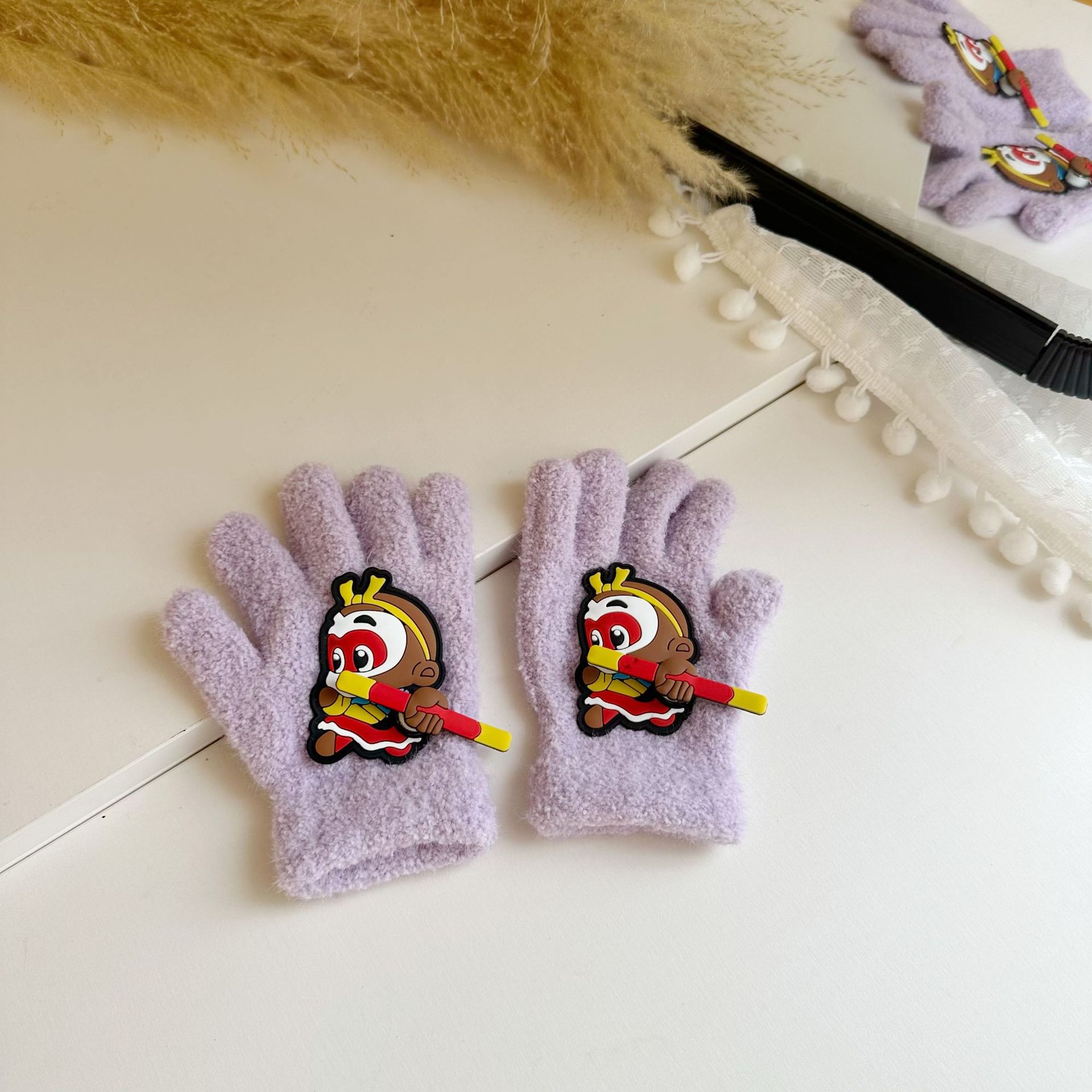 2024 새로운 어린이 장갑 가을과 겨울 멜로디 따뜻한 유치원 소년 소녀 아기 다섯 손가락 장갑스토어 가기