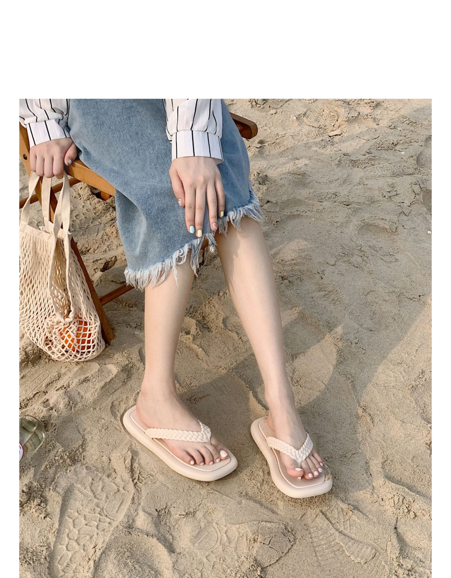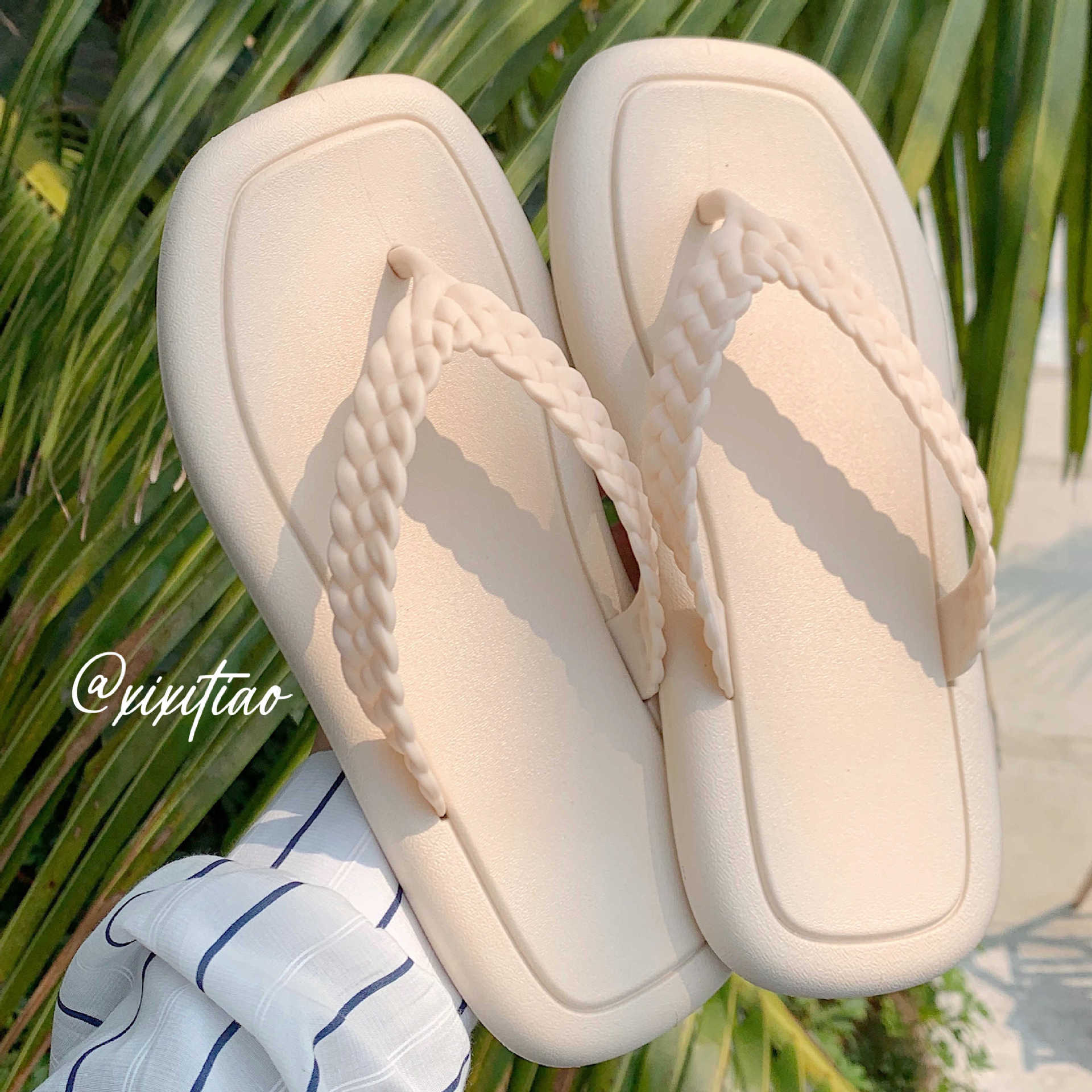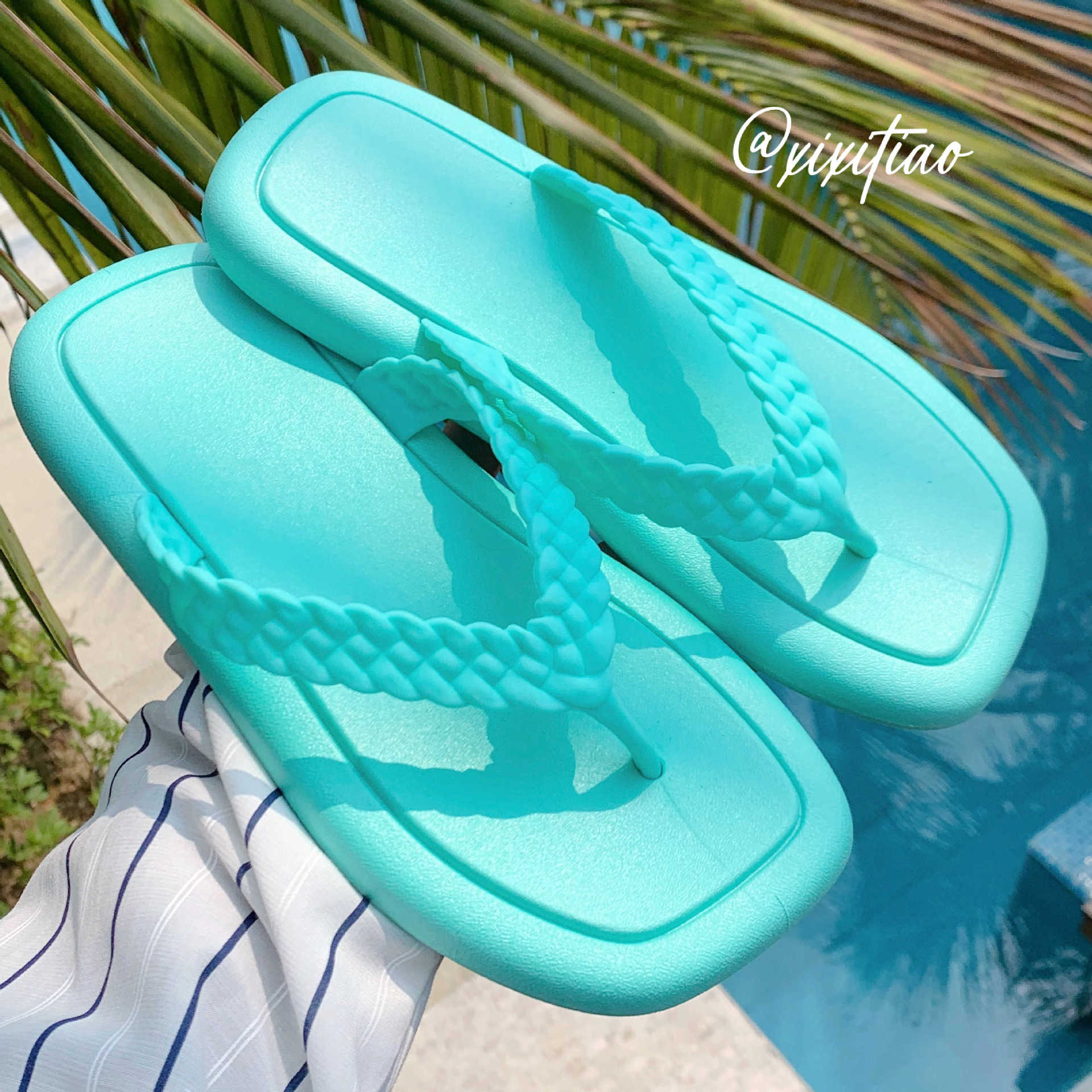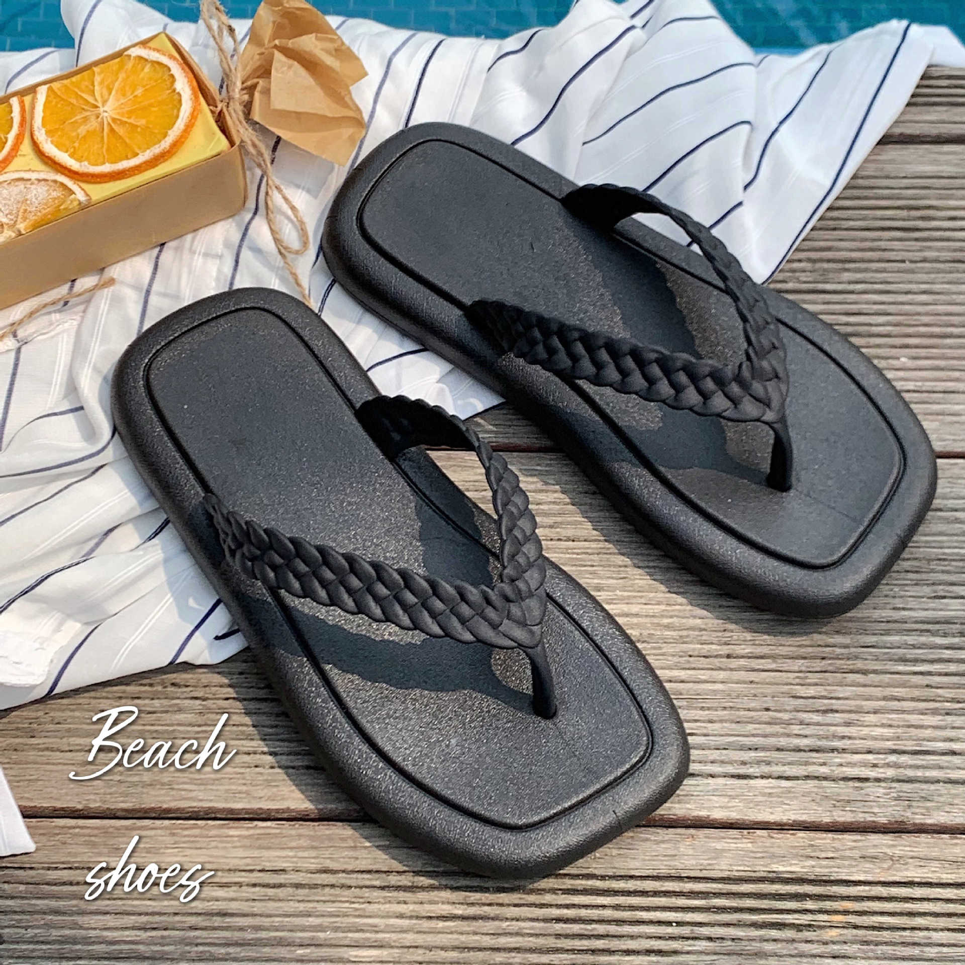 창조적 인 입고 요정 스타일 짠 스트랩 플립 플롭 여성 여름 유행 소프트 솔 해변 신발스토어 가기
