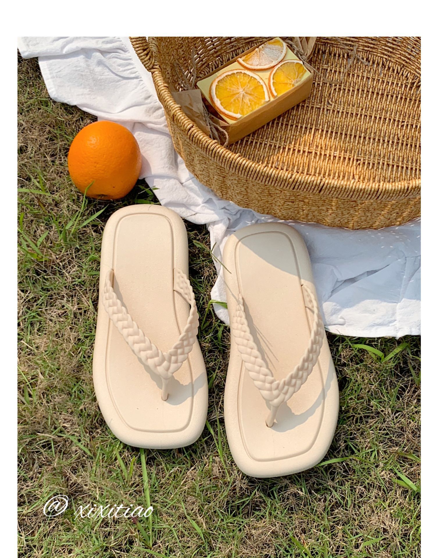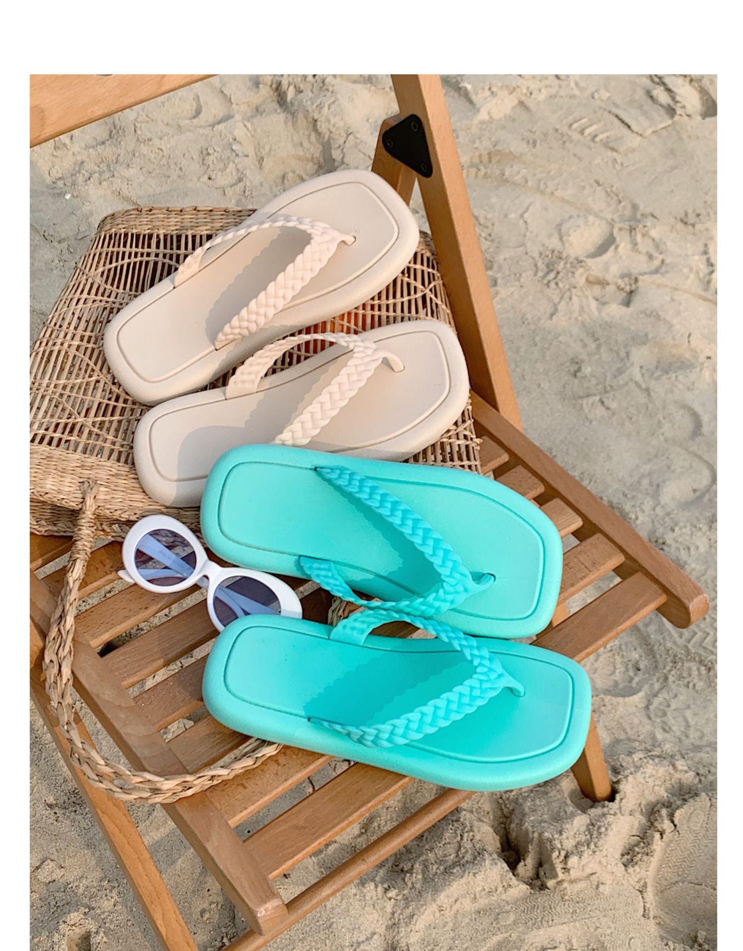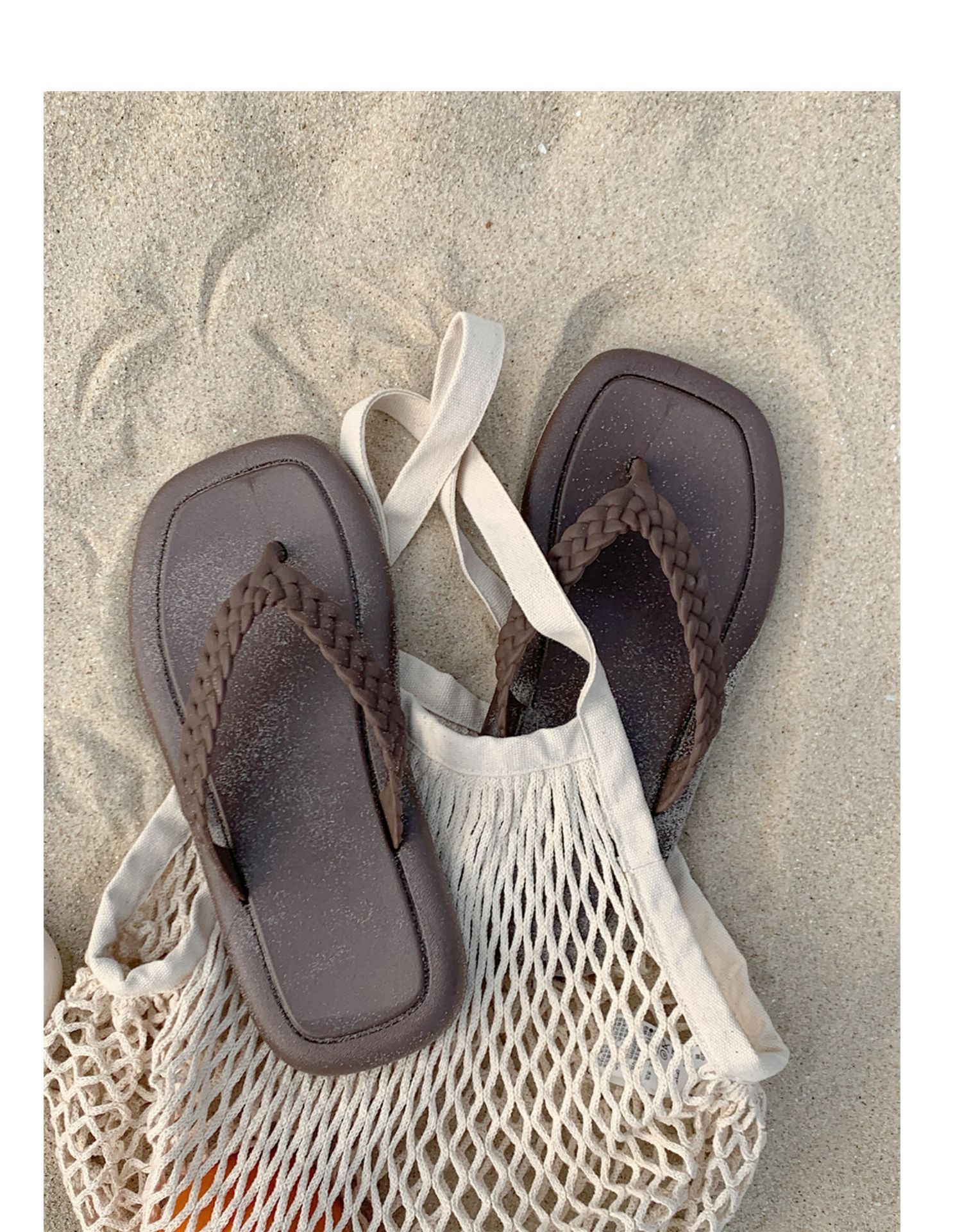 창조적 인 입고 요정 스타일 짠 스트랩 플립 플롭 여성 여름 유행 소프트 솔 해변 신발스토어 가기