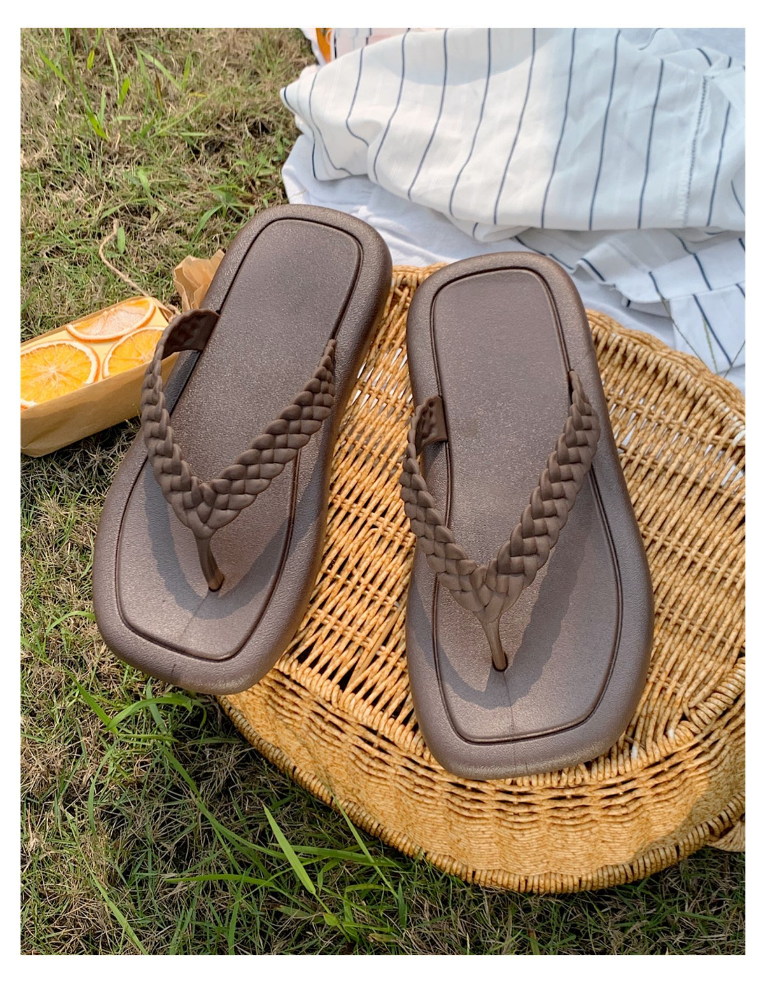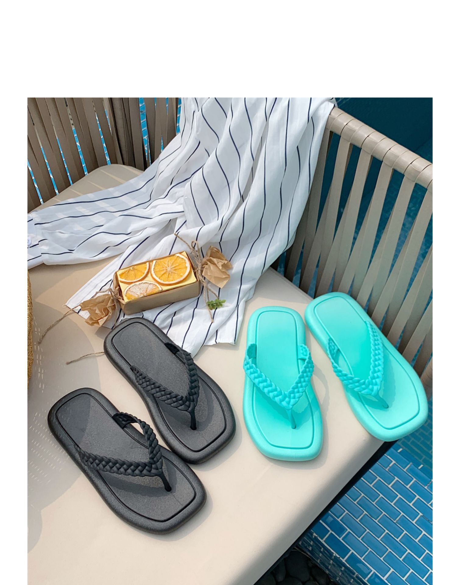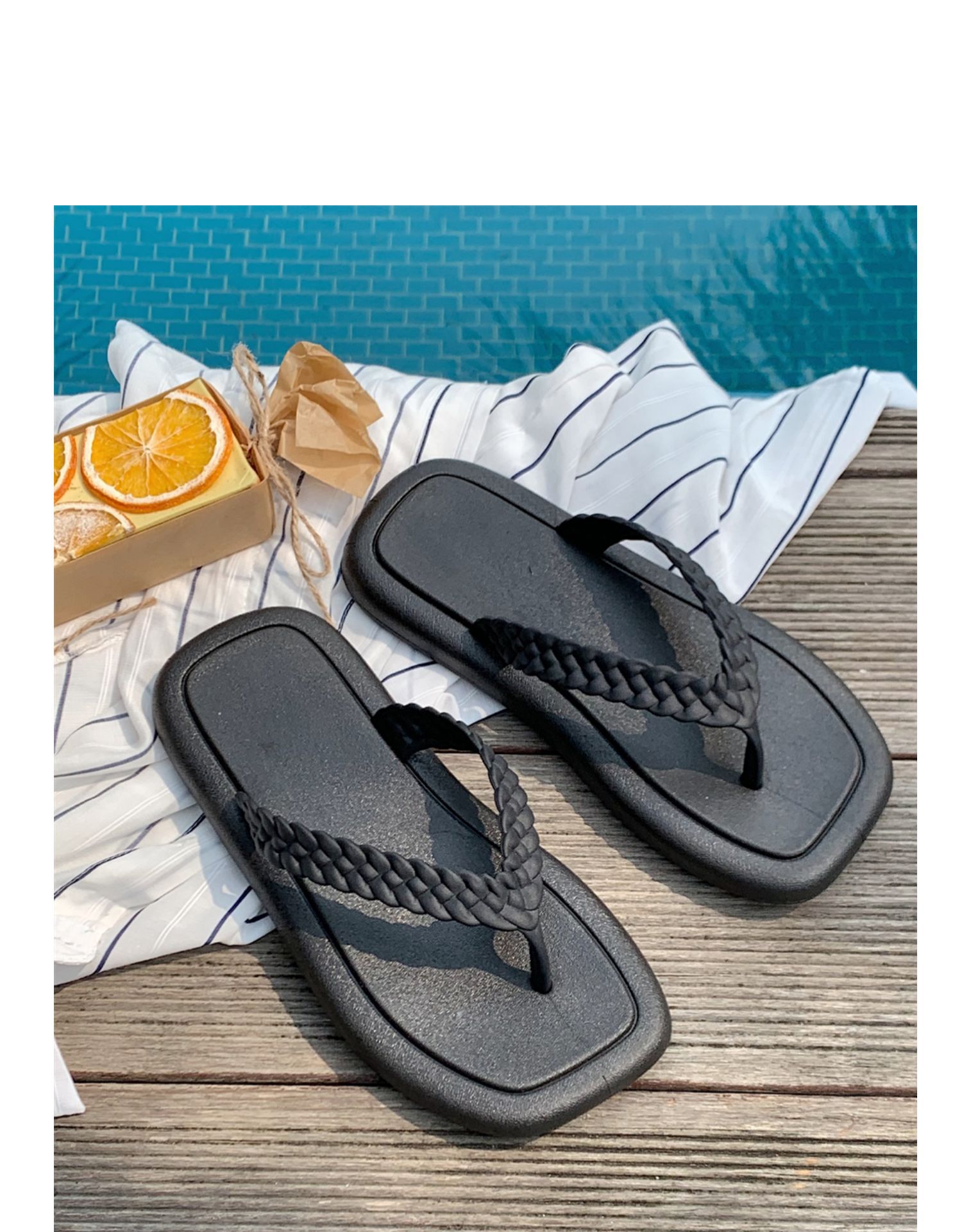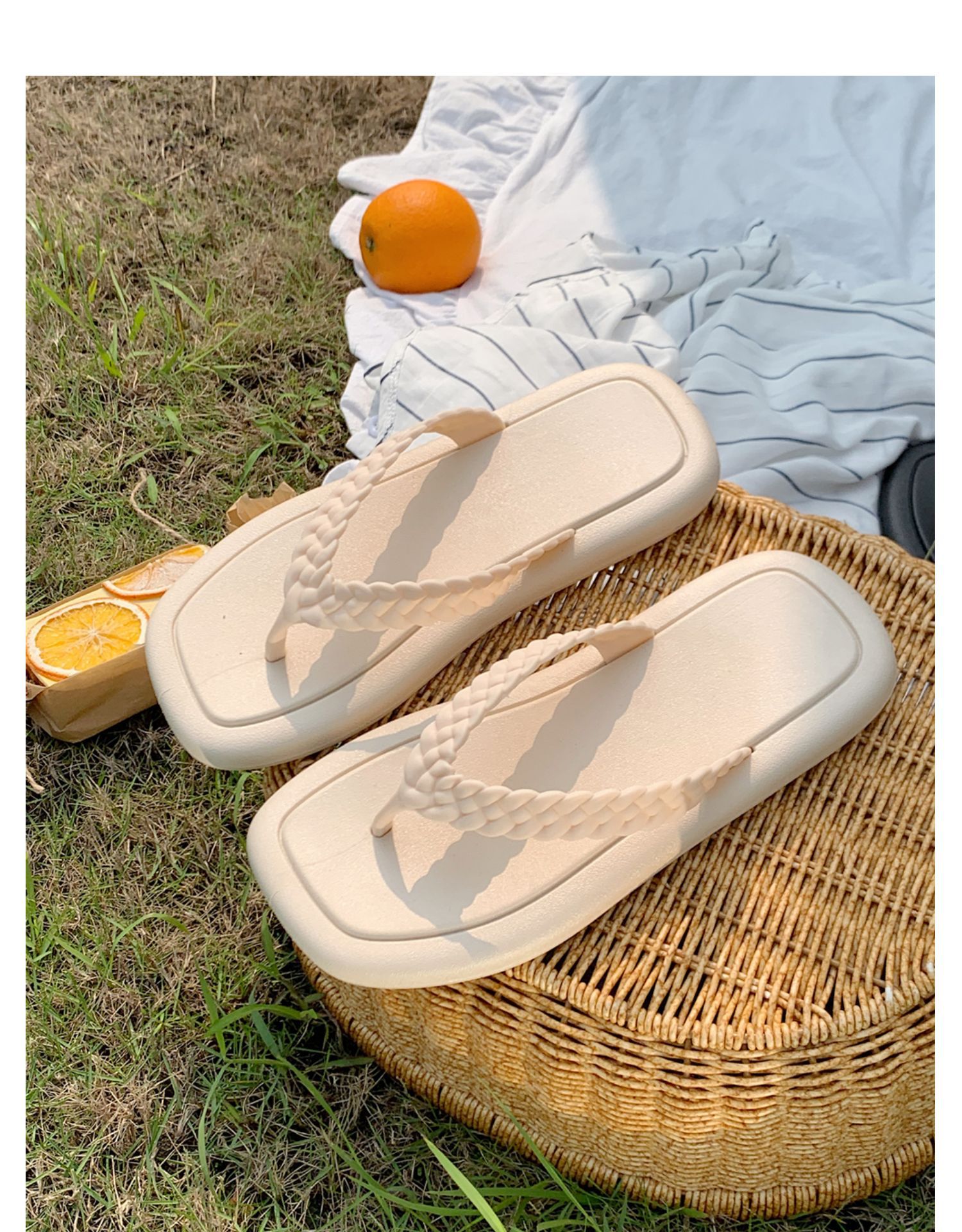 창조적 인 입고 요정 스타일 짠 스트랩 플립 플롭 여성 여름 유행 소프트 솔 해변 신발스토어 가기