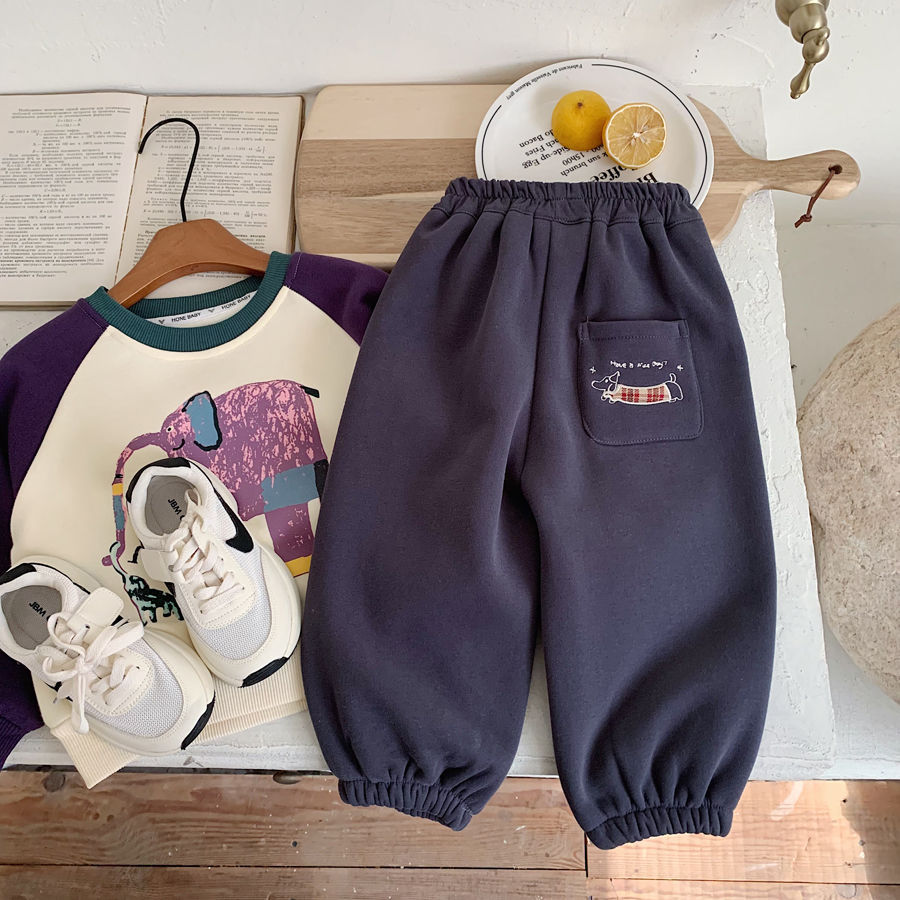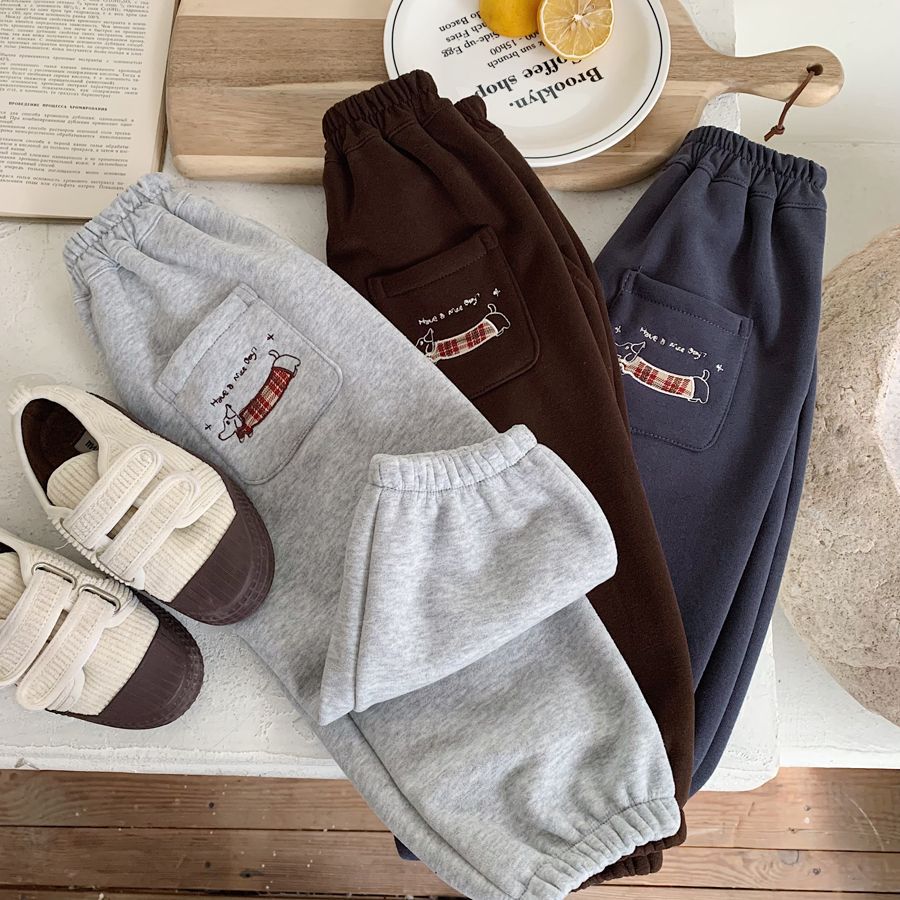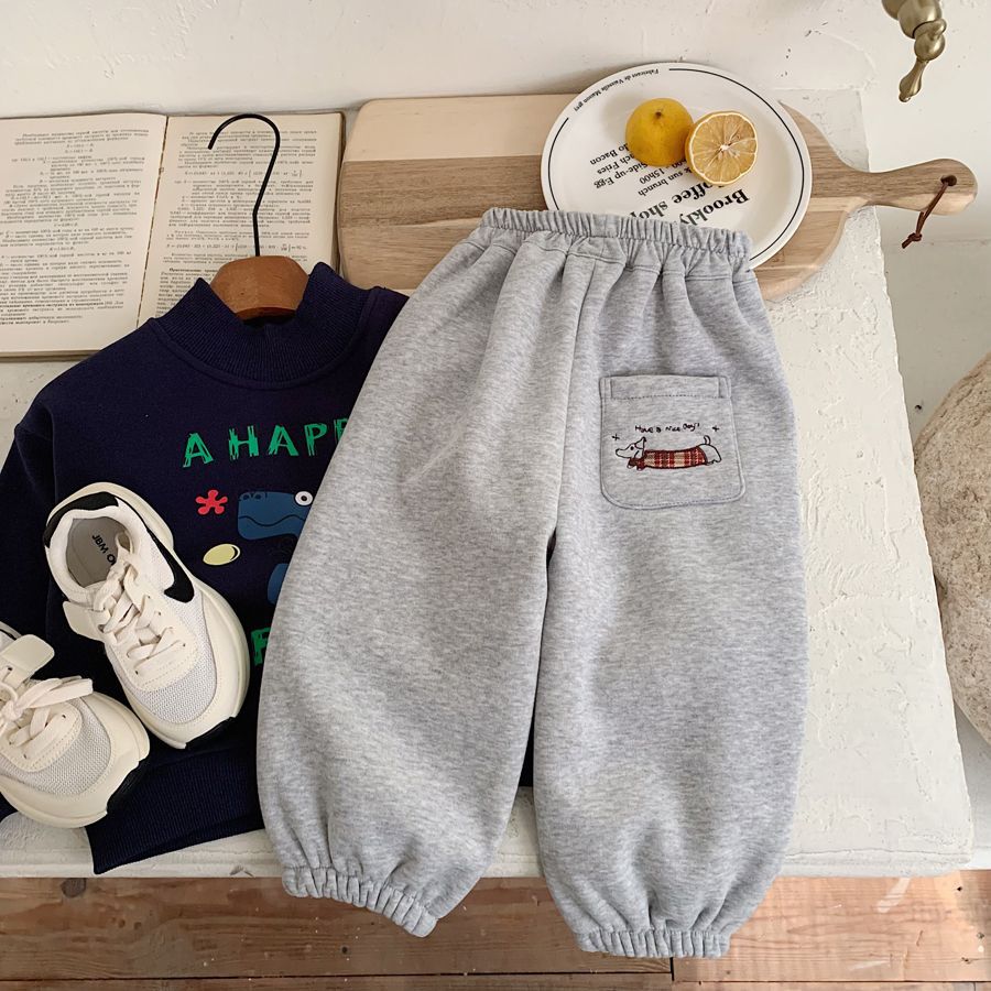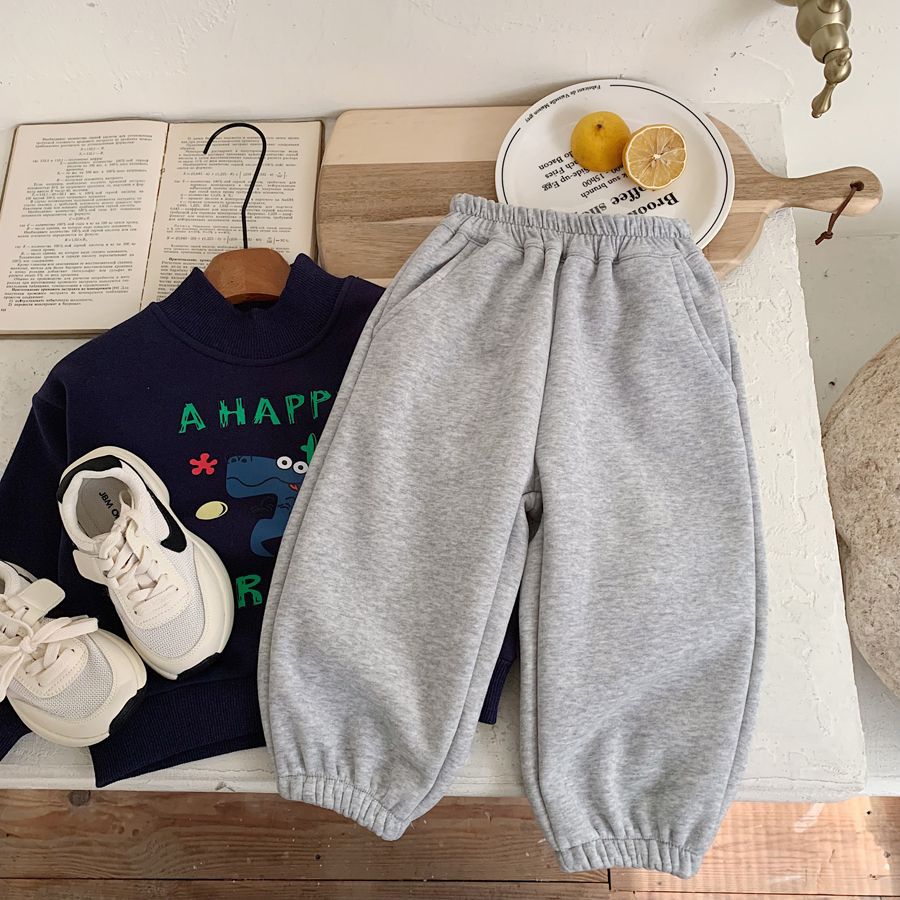 소년 기모 스포츠 바지 2024 겨울 새 아기 올리 벨벳 캐주얼 루즈 스웨트 팬츠 패션 올 매치 바지스토어 가기