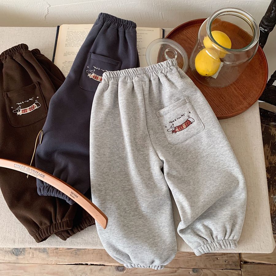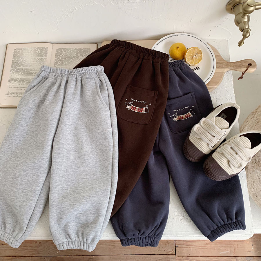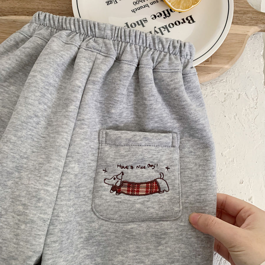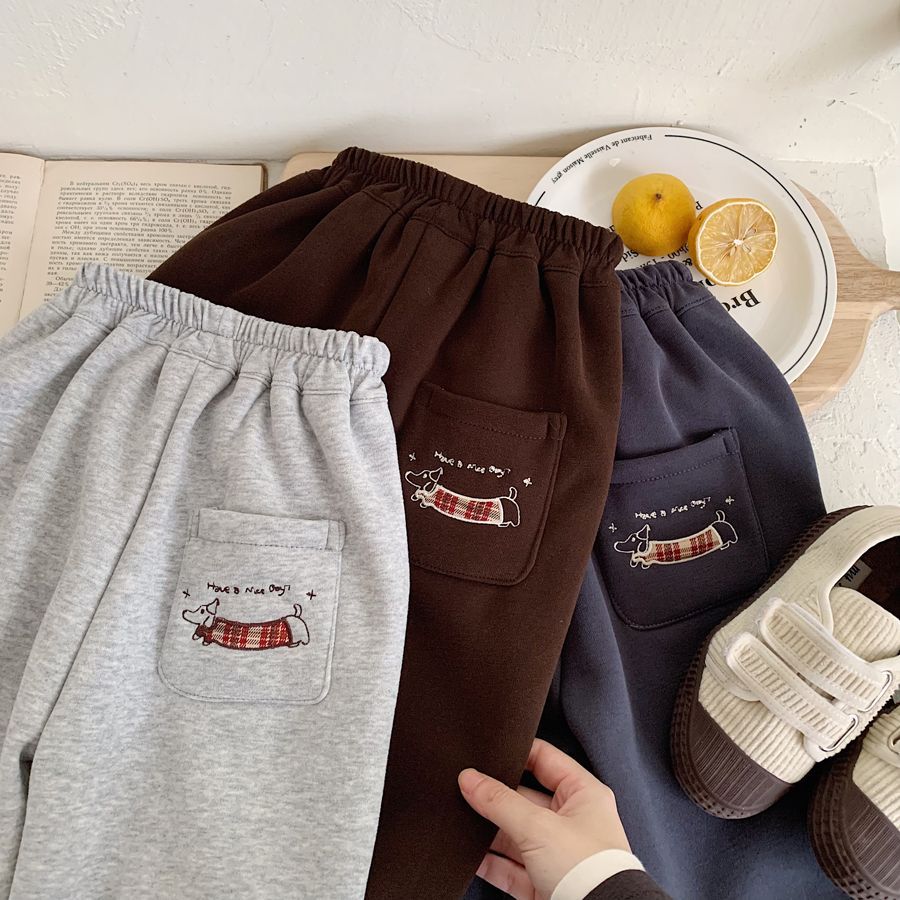 소년 기모 스포츠 바지 2024 겨울 새 아기 올리 벨벳 캐주얼 루즈 스웨트 팬츠 패션 올 매치 바지스토어 가기