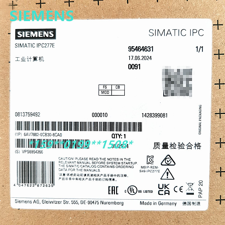 6AV7882-0CB30-8CA0 西门子工业计算机 6AV7882-OCB30-8CAO触摸屏
