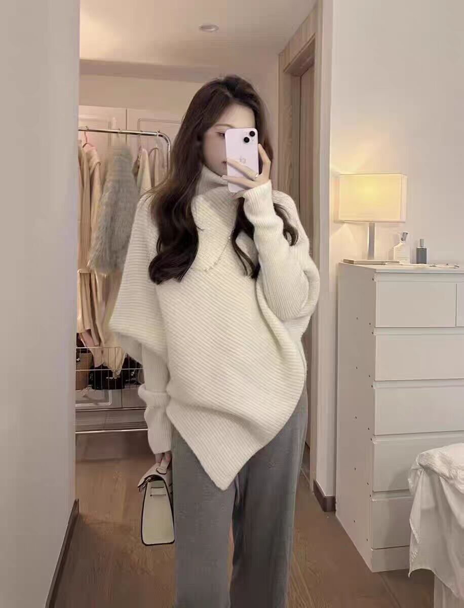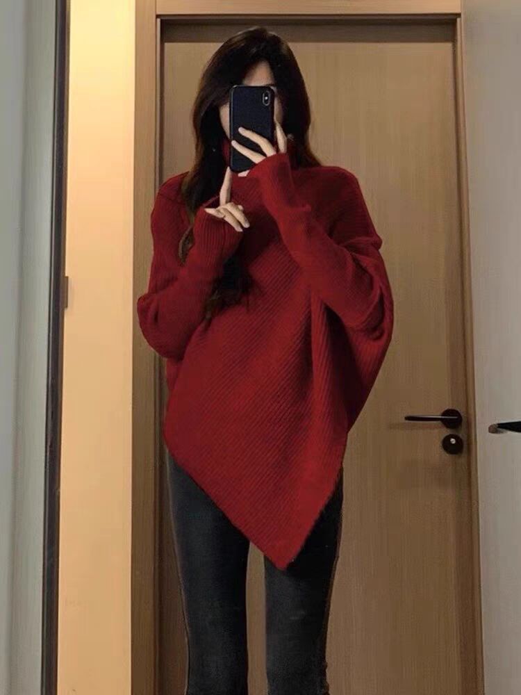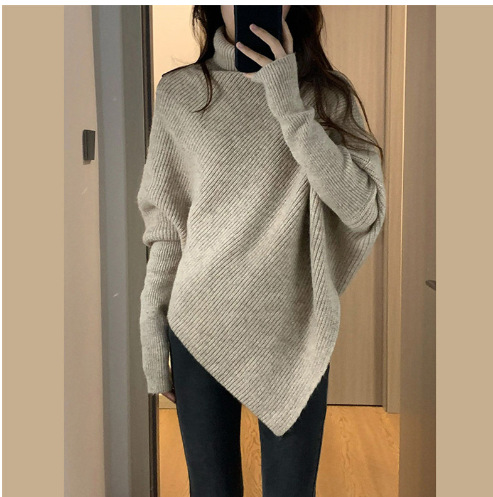 불규칙한 하이넥 스웨터 여성용 겨울 2025 신상 인기 한국 스타일 부드럽고 여유로운 외출용 니트 상의