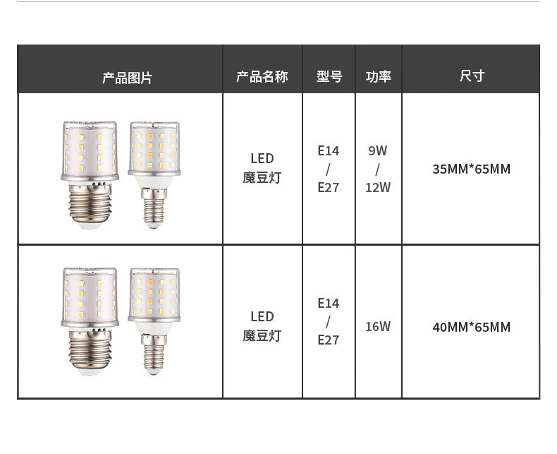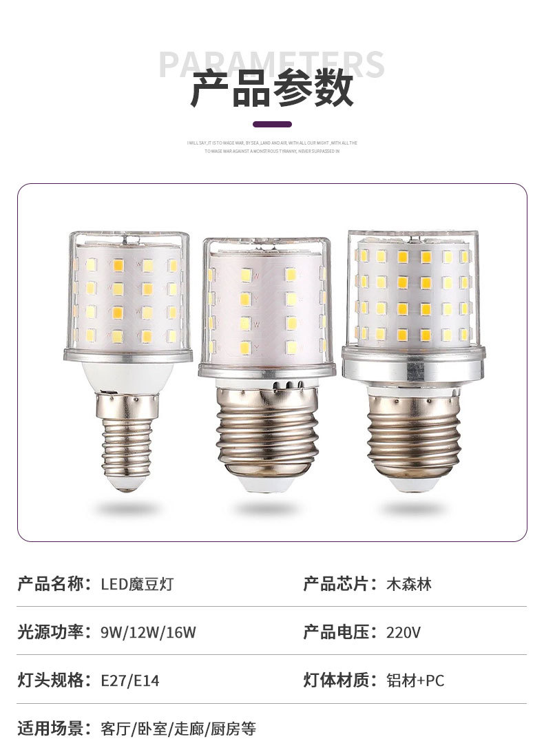 LED 전체 스펙트럼 전구 도매 밝은 9W12W16W 광원 홈 상업 조명 E14E27 마법 콩 전구스토어 가기