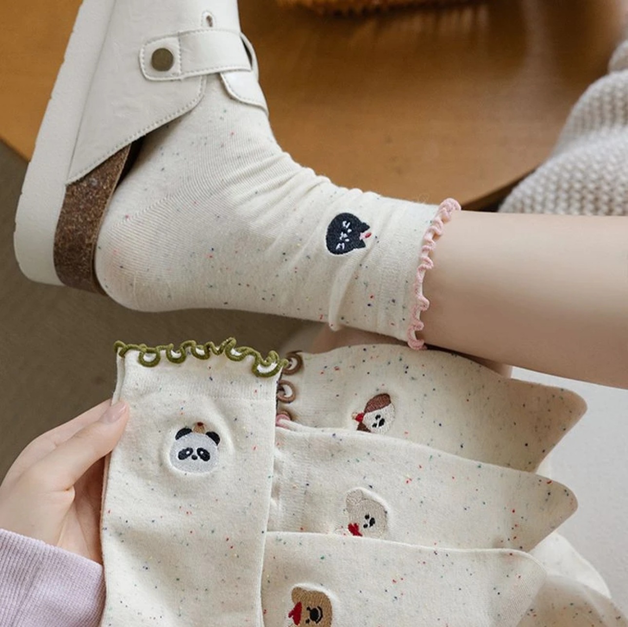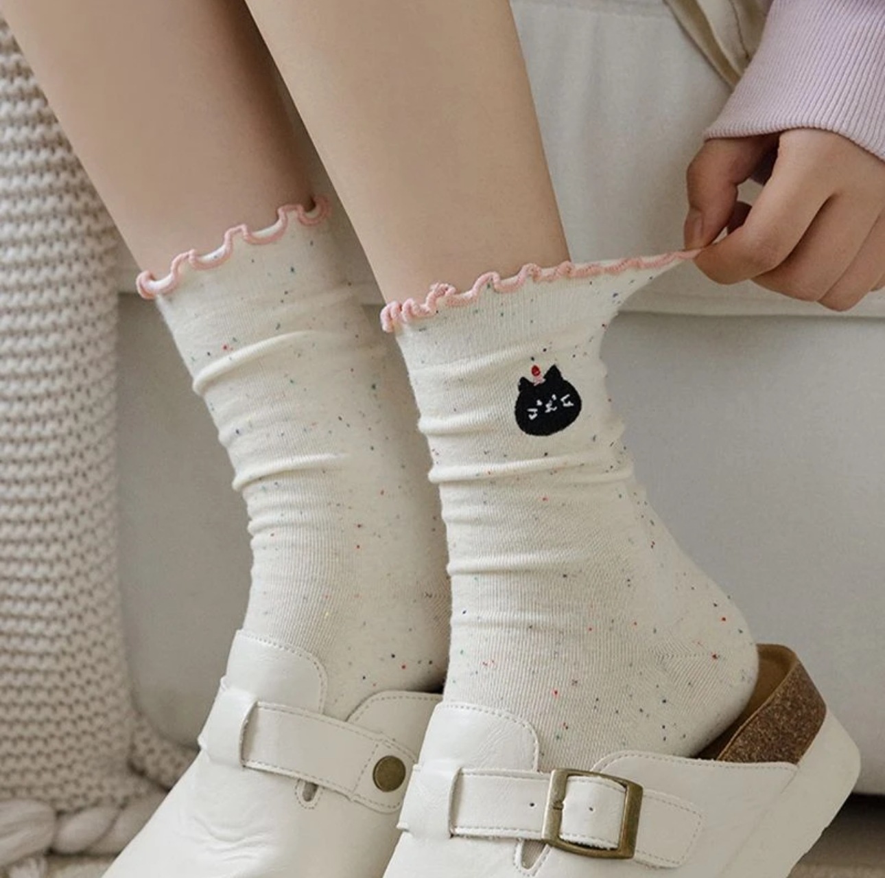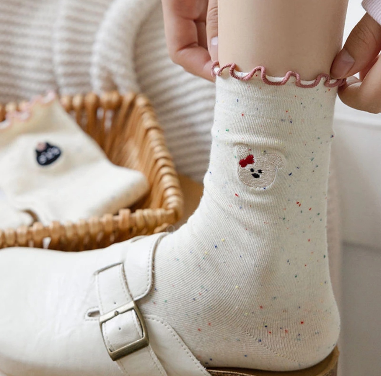 도트 원사 러플 뼈없는 귀여운 자수 문 양말 가을과 겨울 인터넷 인기있는 한국 스타일 쌓인 여성용 양말