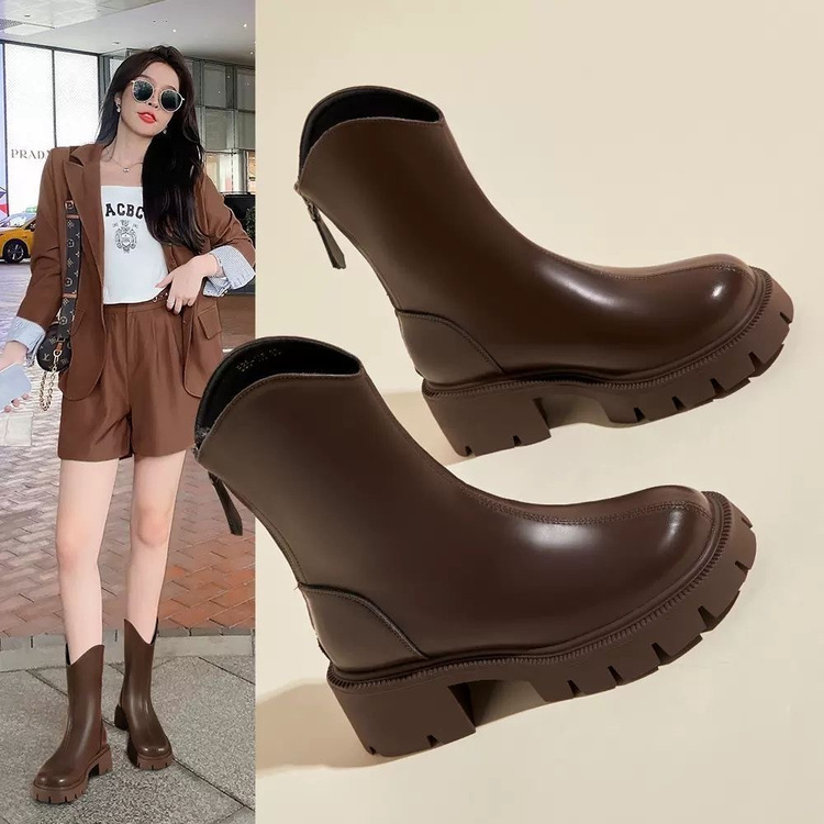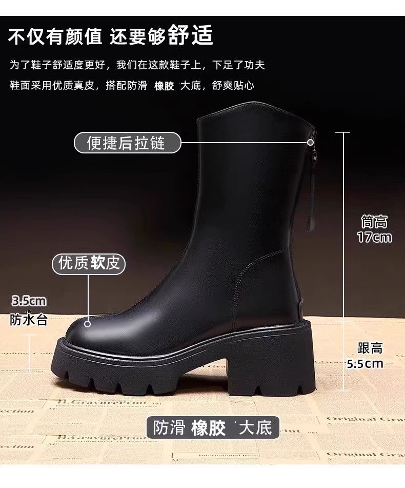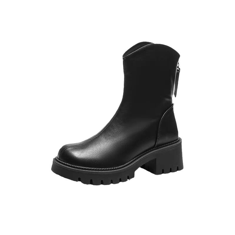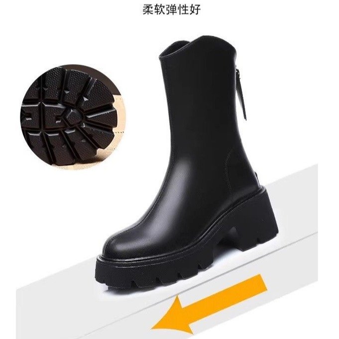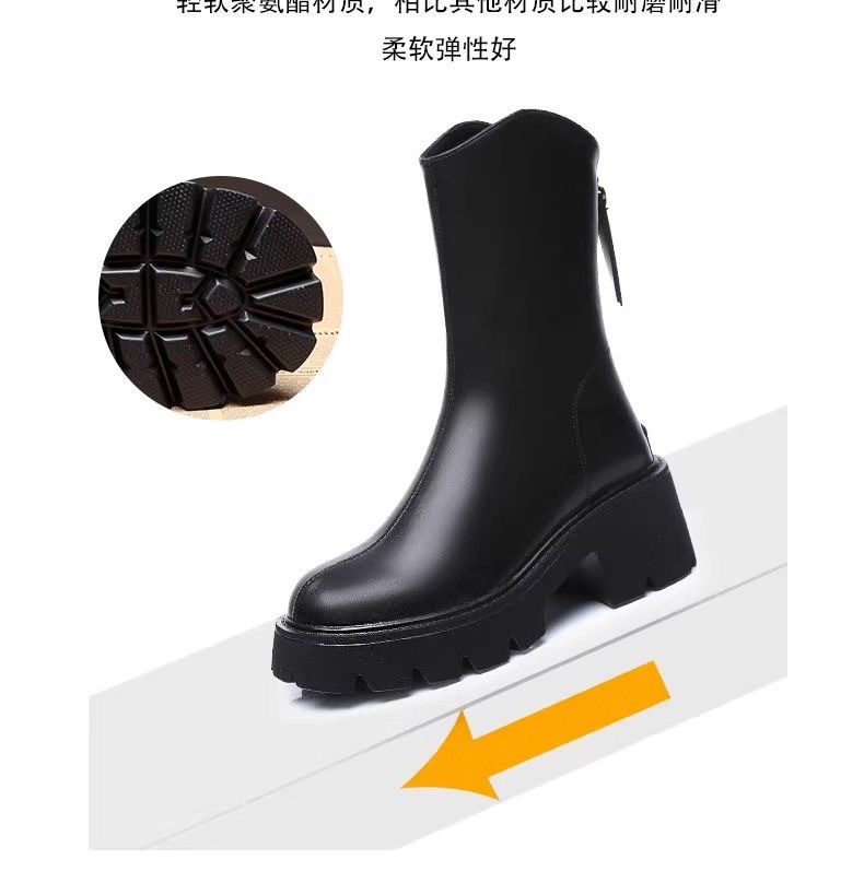 부드러운 가죽 마틴 부츠 여성용 영국 스타일 슬림 부츠 2026 신상 두꺼운 밑창 미드 부츠 굵은 굽 V컷 슬림 숏부츠 여성용스토어 가기