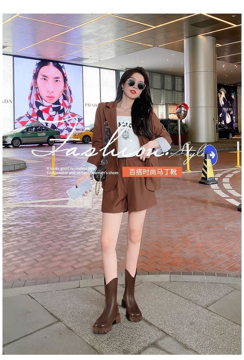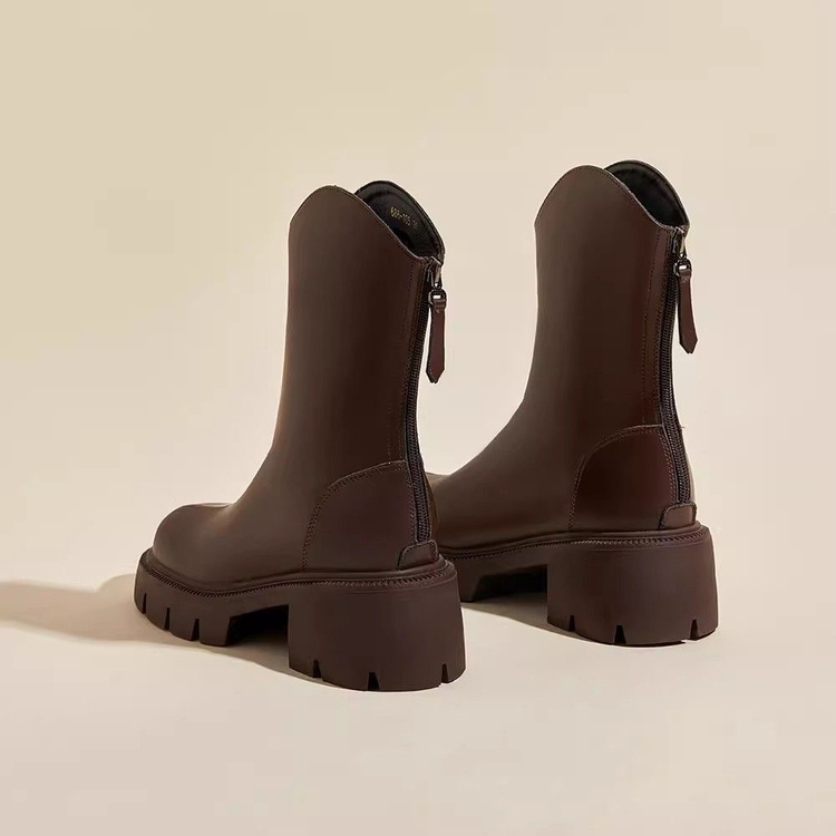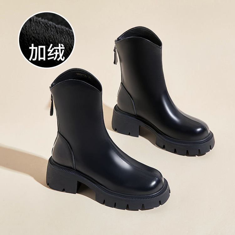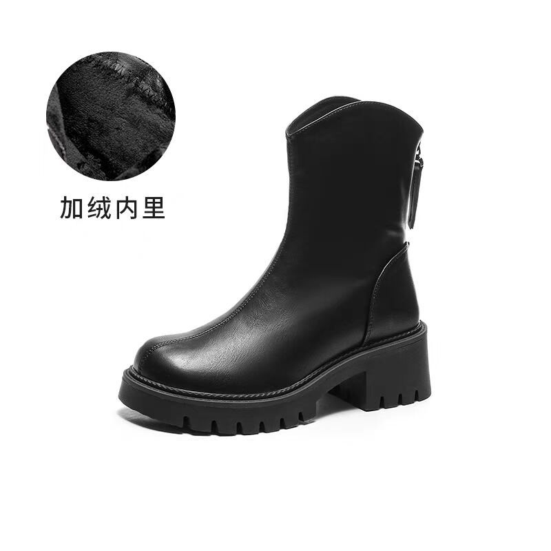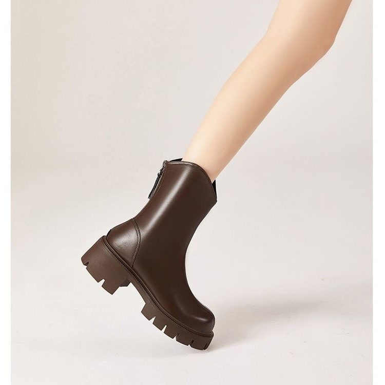 부드러운 가죽 마틴 부츠 여성용 영국 스타일 슬림 부츠 2026 신상 두꺼운 밑창 미드 부츠 굵은 굽 V컷 슬림 숏부츠 여성용스토어 가기