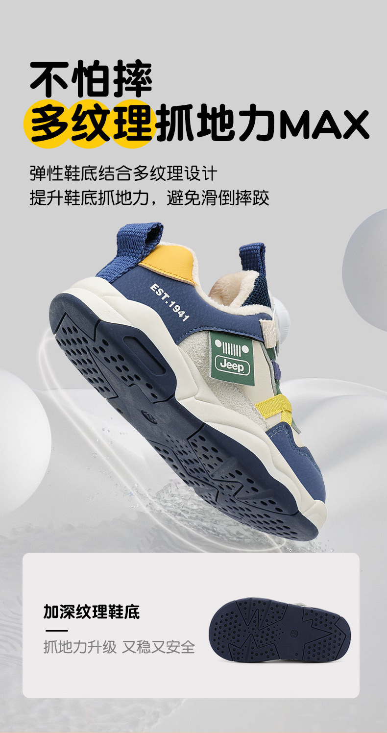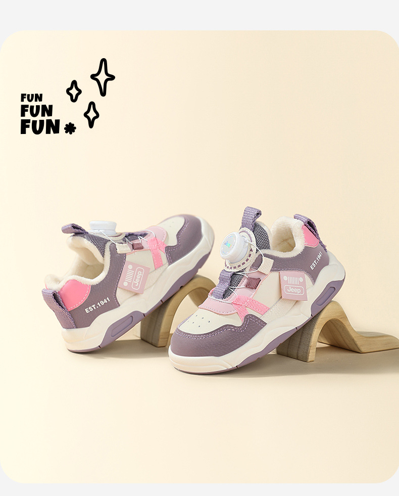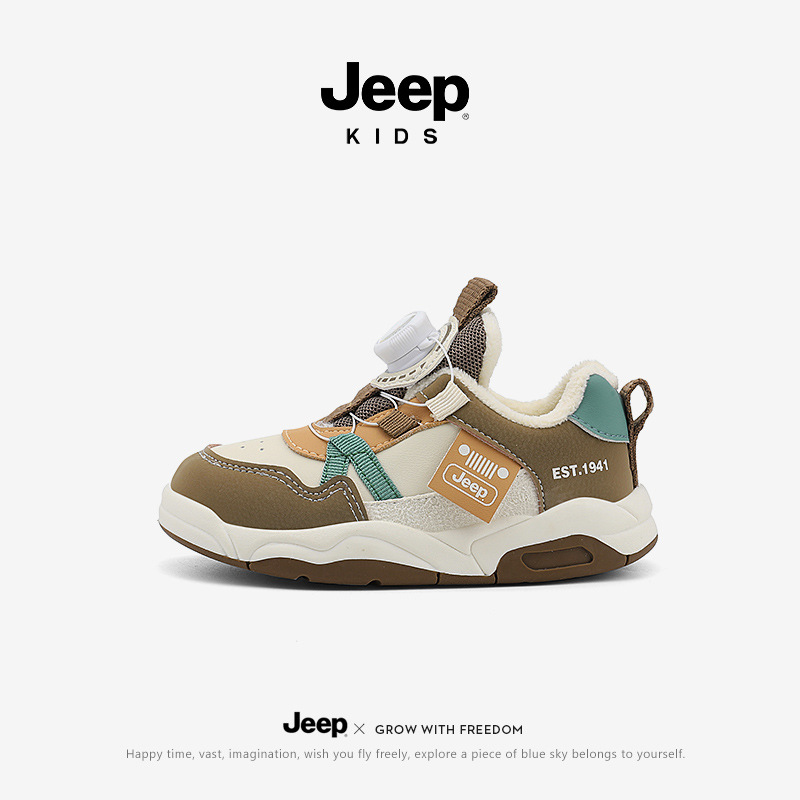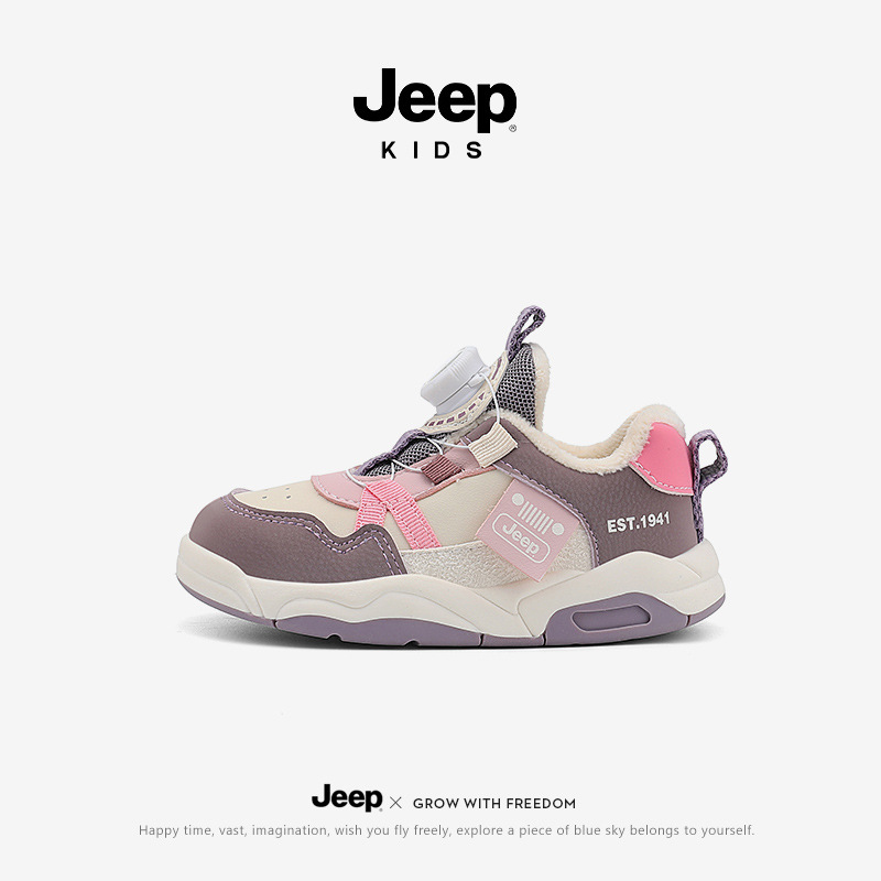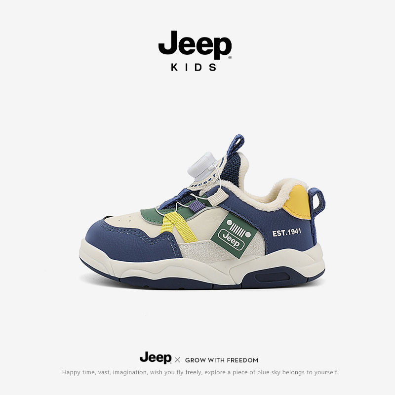 Jeep 어린이 2024 새로운 겨울 경량 면화 신발 소녀 미끄럼 방지 아기 신발 소년 벨벳 운동화 어린이스토어 가기