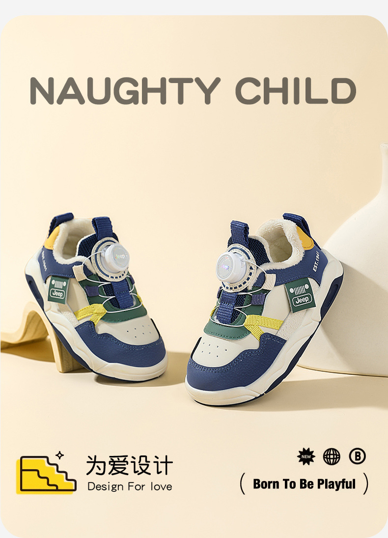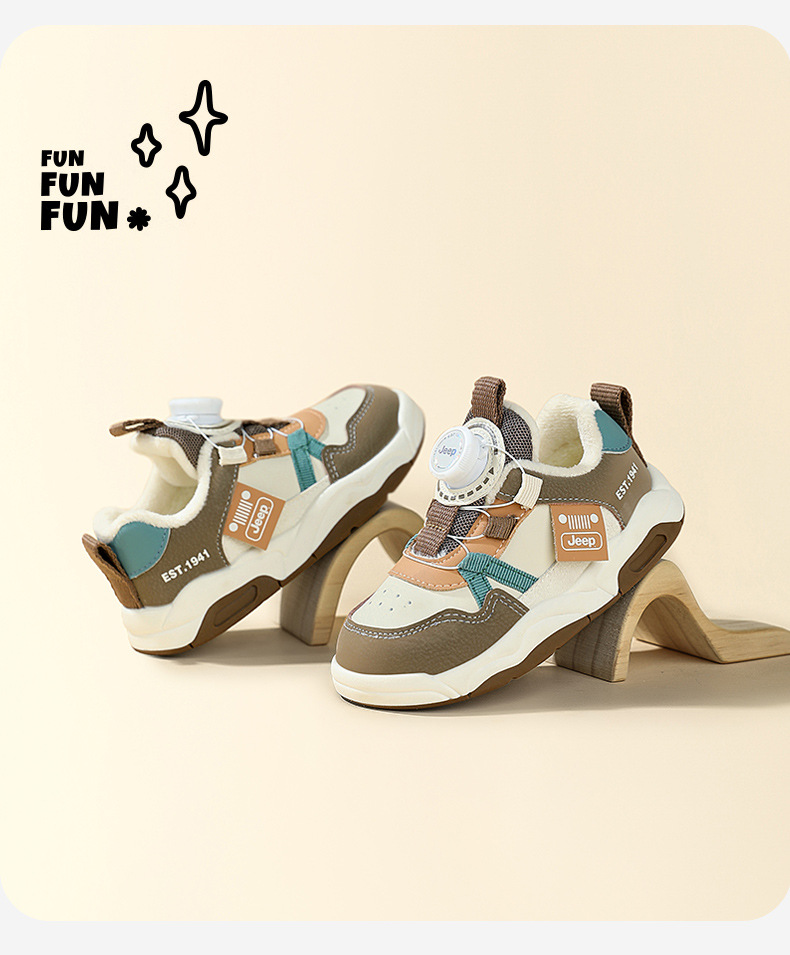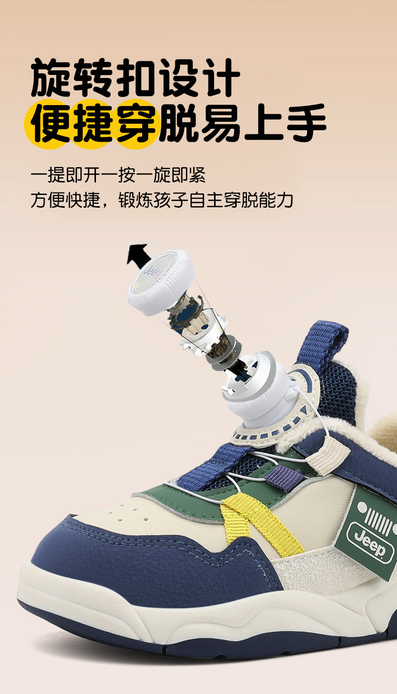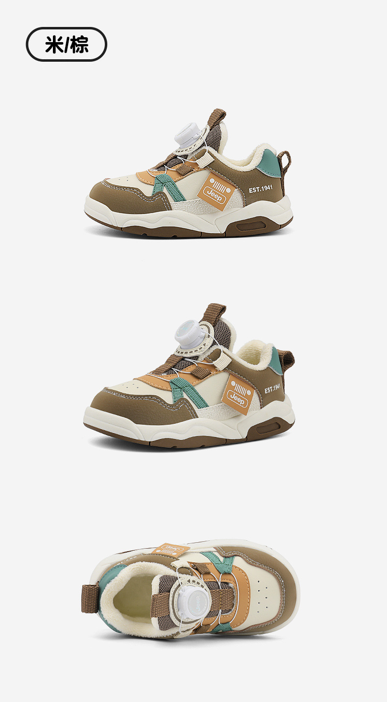 Jeep 어린이 2024 새로운 겨울 경량 면화 신발 소녀 미끄럼 방지 아기 신발 소년 벨벳 운동화 어린이스토어 가기