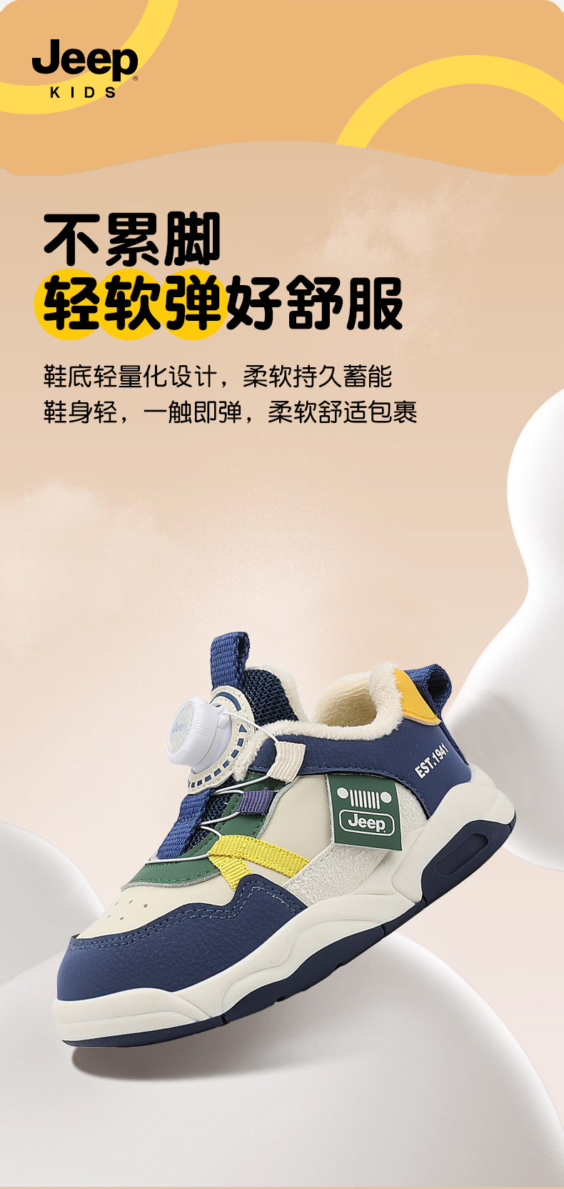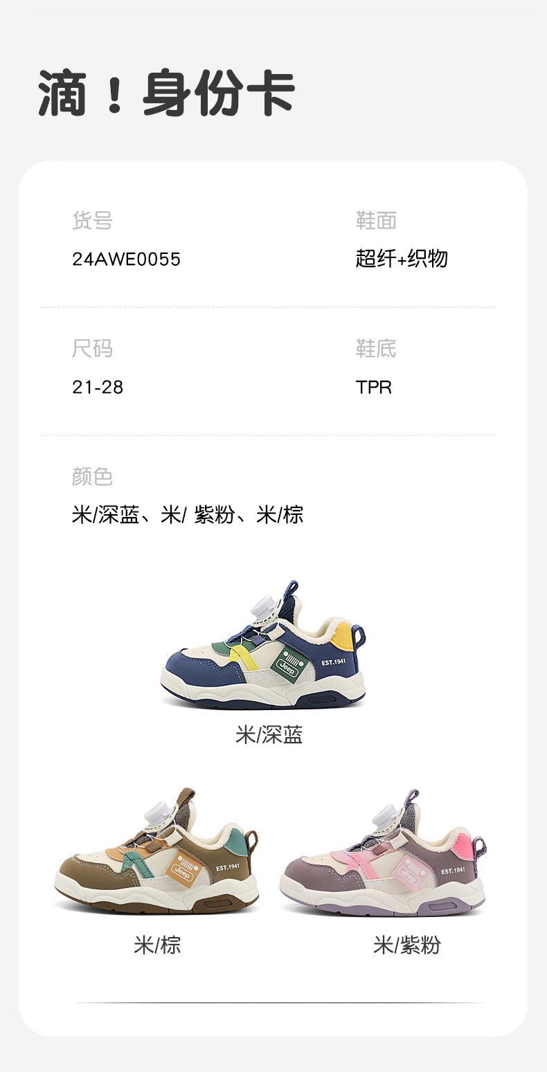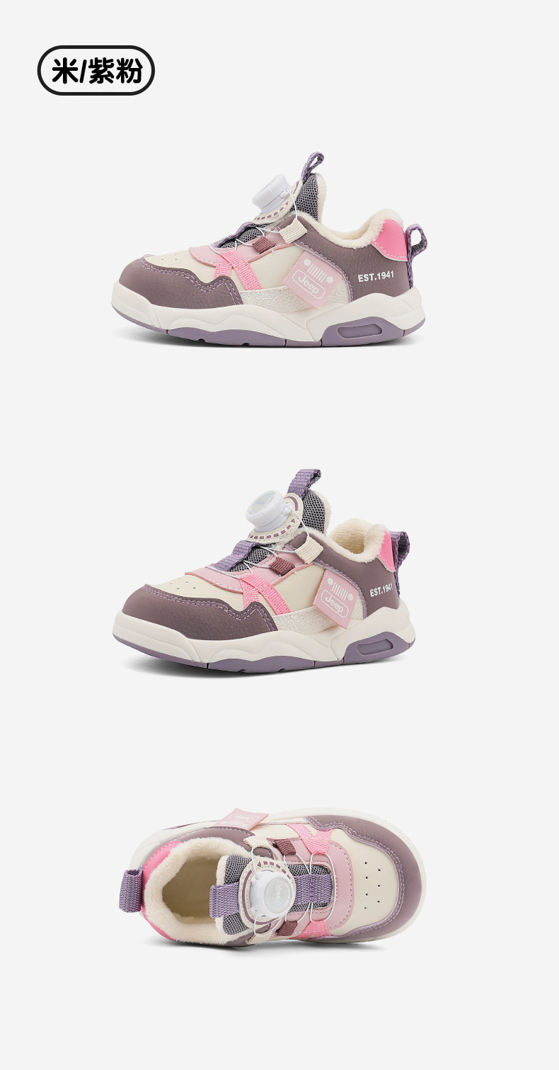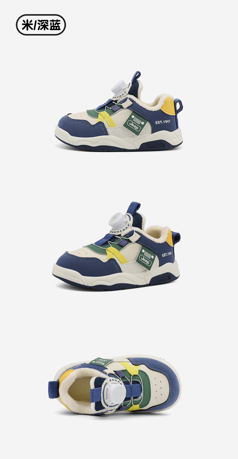 Jeep 어린이 2024 새로운 겨울 경량 면화 신발 소녀 미끄럼 방지 아기 신발 소년 벨벳 운동화 어린이스토어 가기