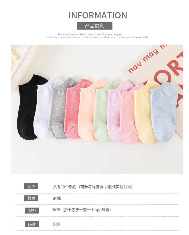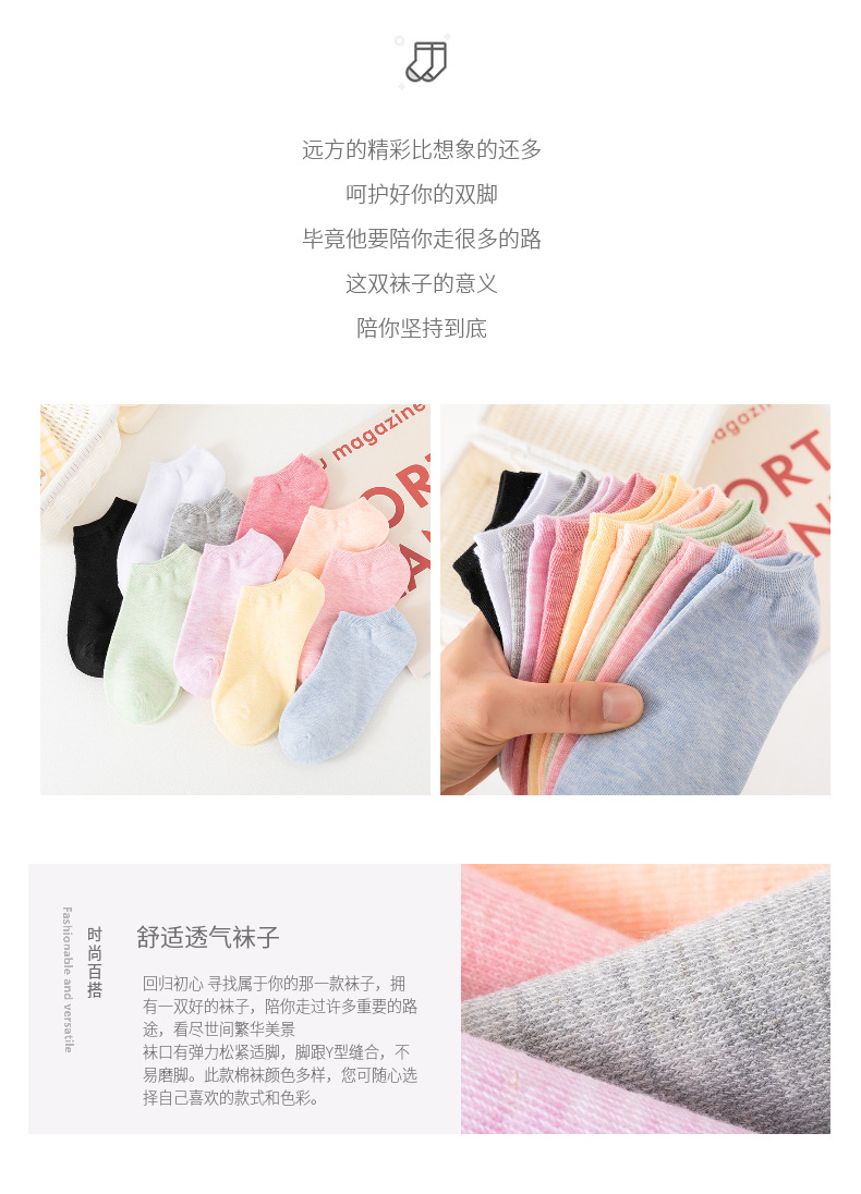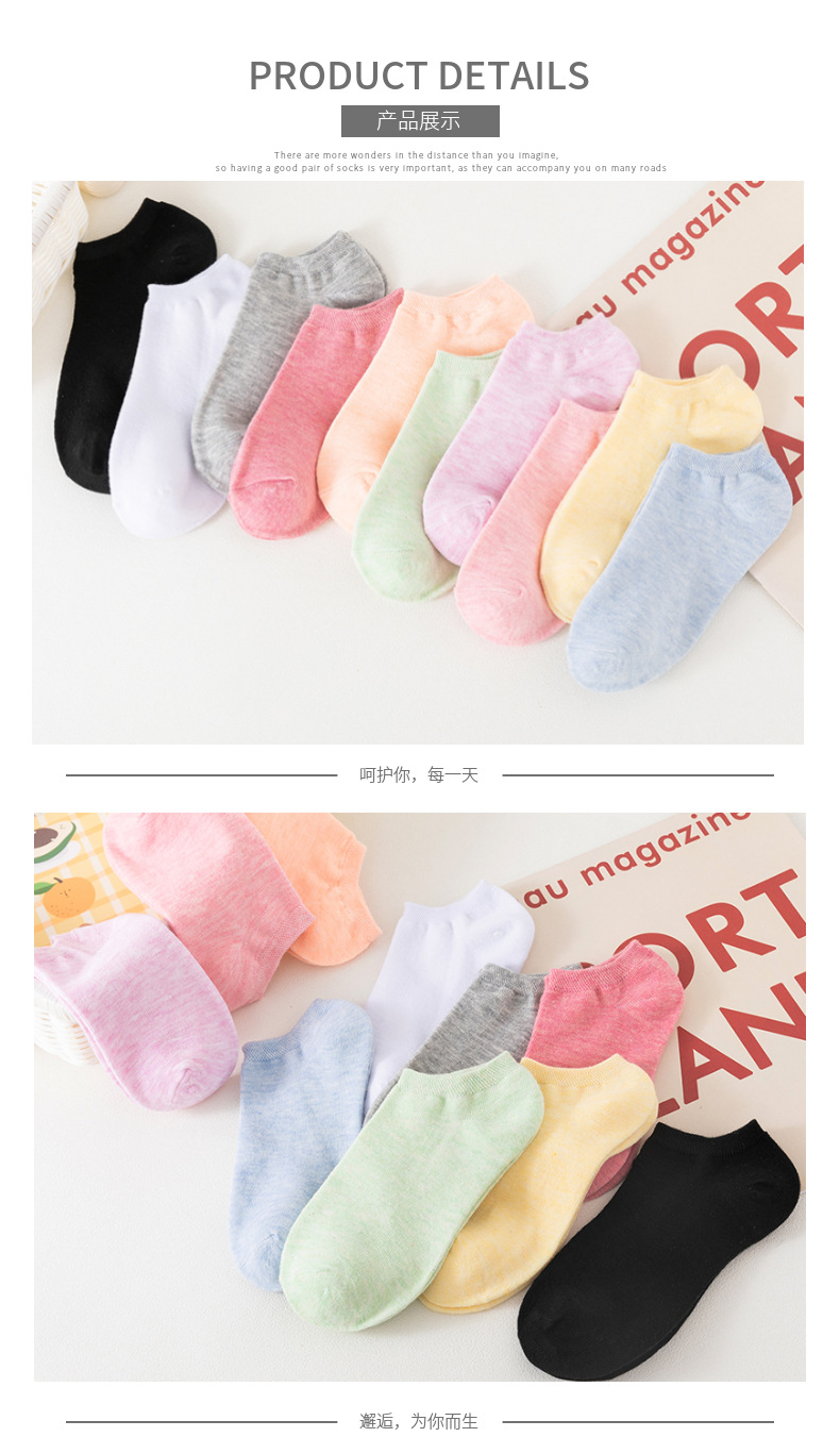 국경 양말 여성의 새로운 단색 조커 얕은 여성 보트 양말 땀 흡수성 통기성 컬러 솜사탕 색 양말 도매스토어 가기