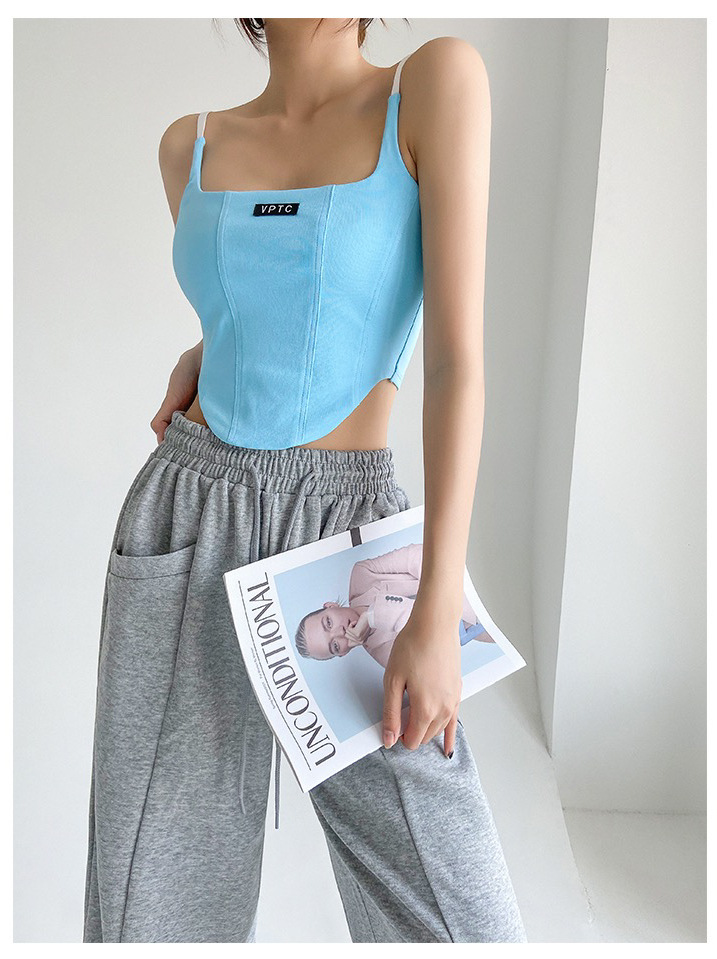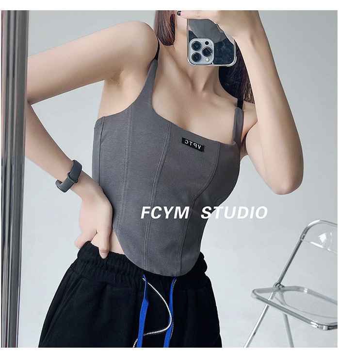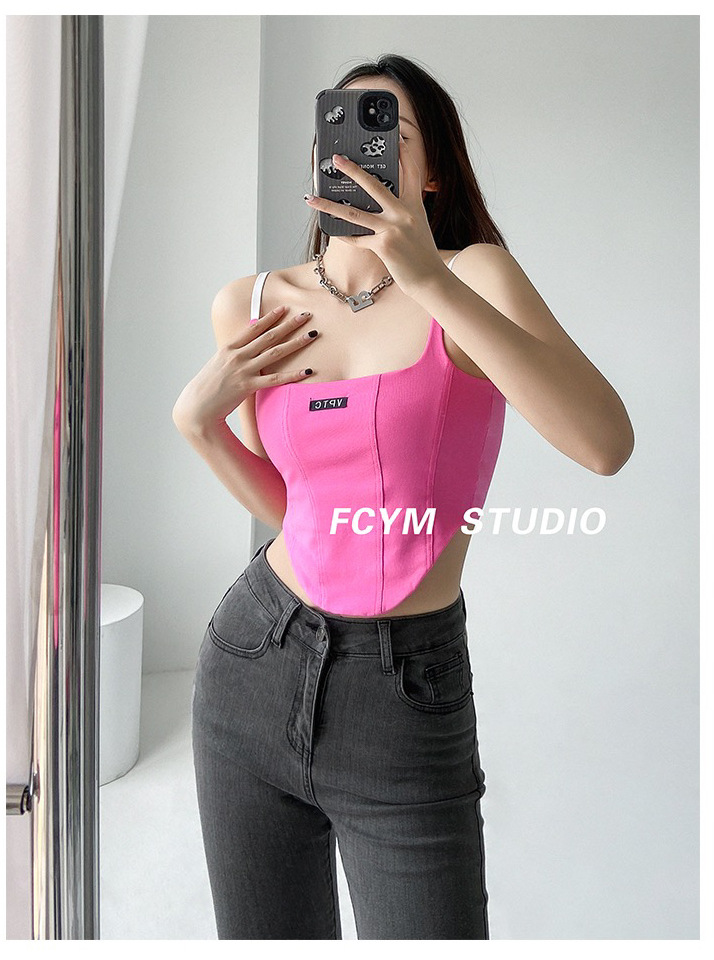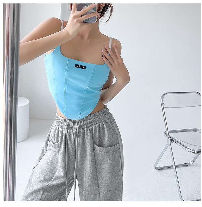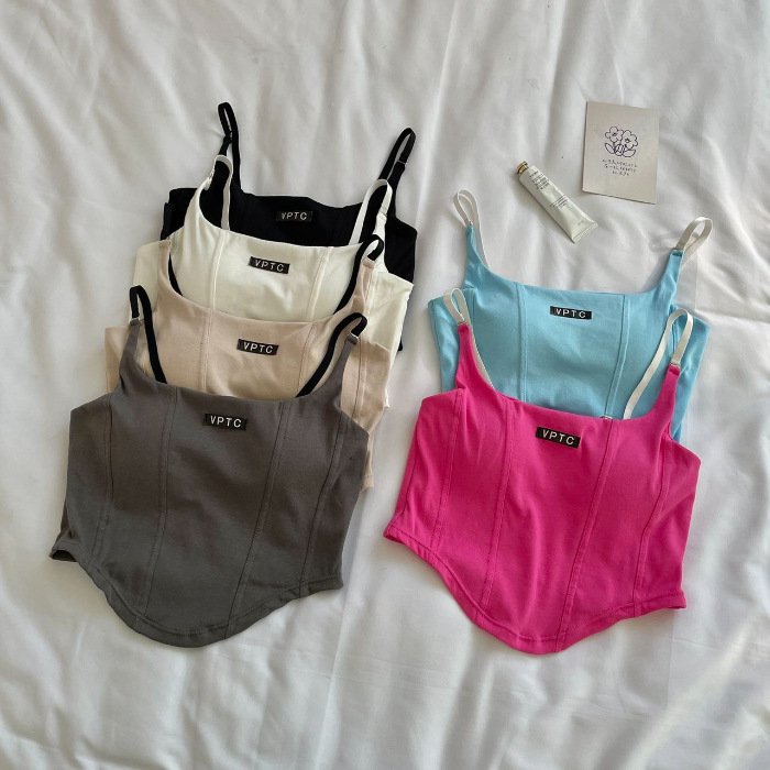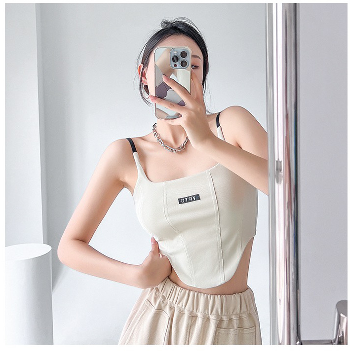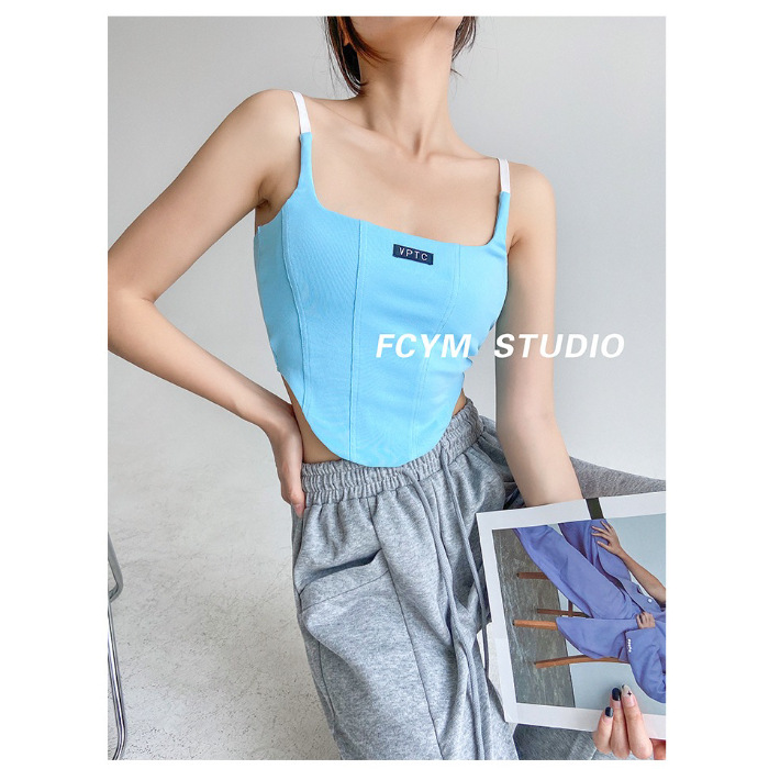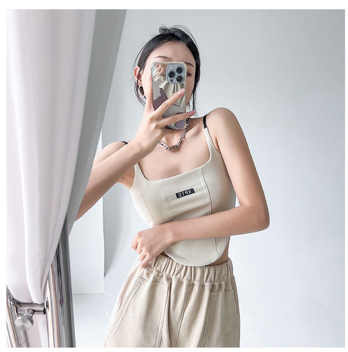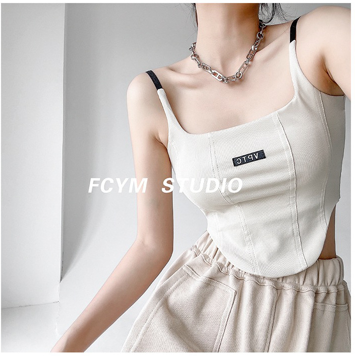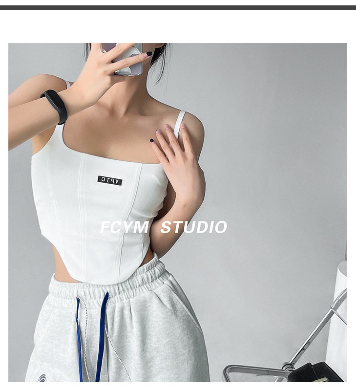 673 # 어깨끈 슬림핏 피쉬본 쉐이핑 캐미솔 여성 여름 허리 노출 핫걸 레터 로고 슬림핏 민소매 탑