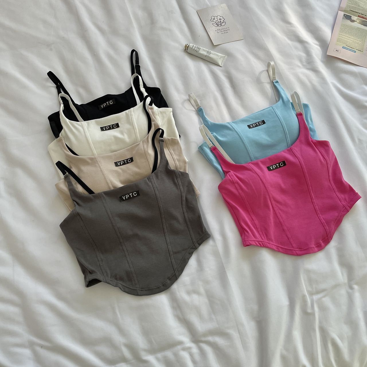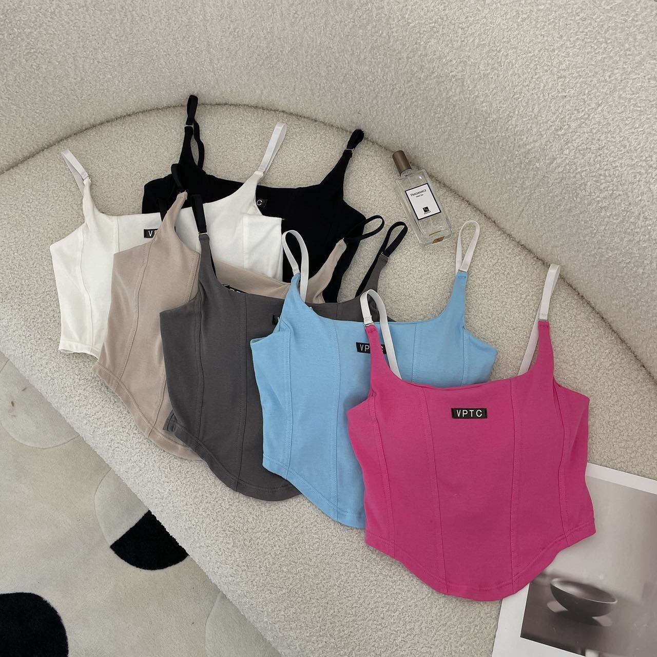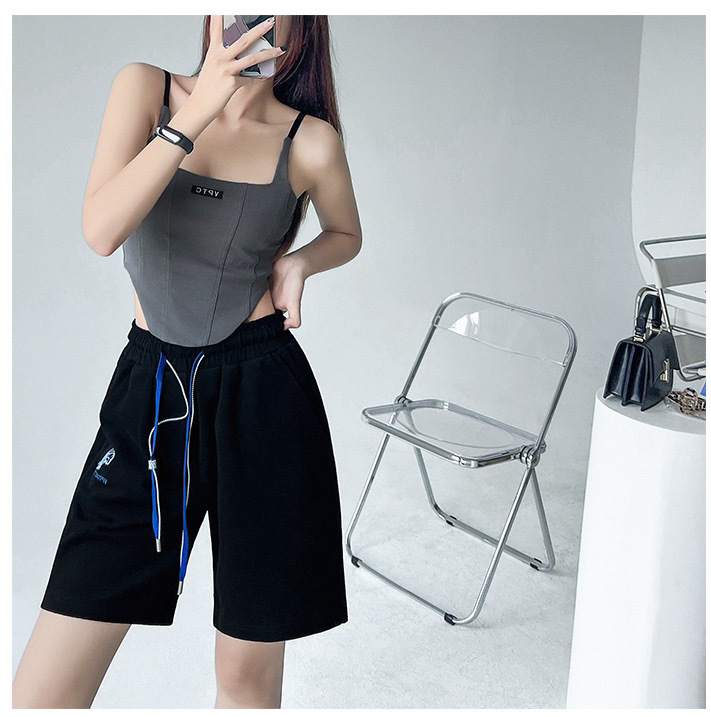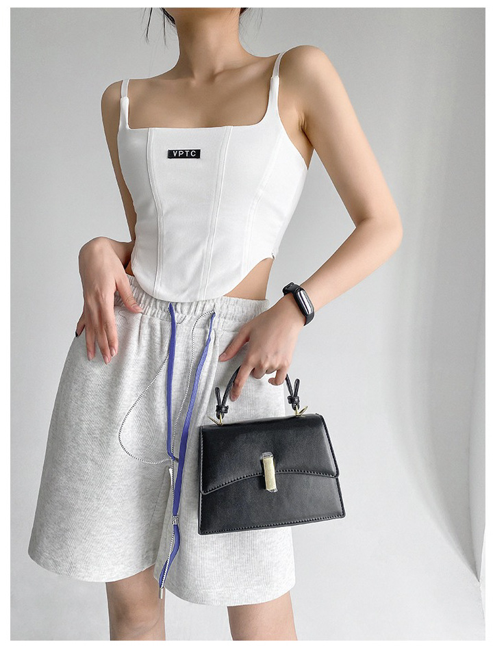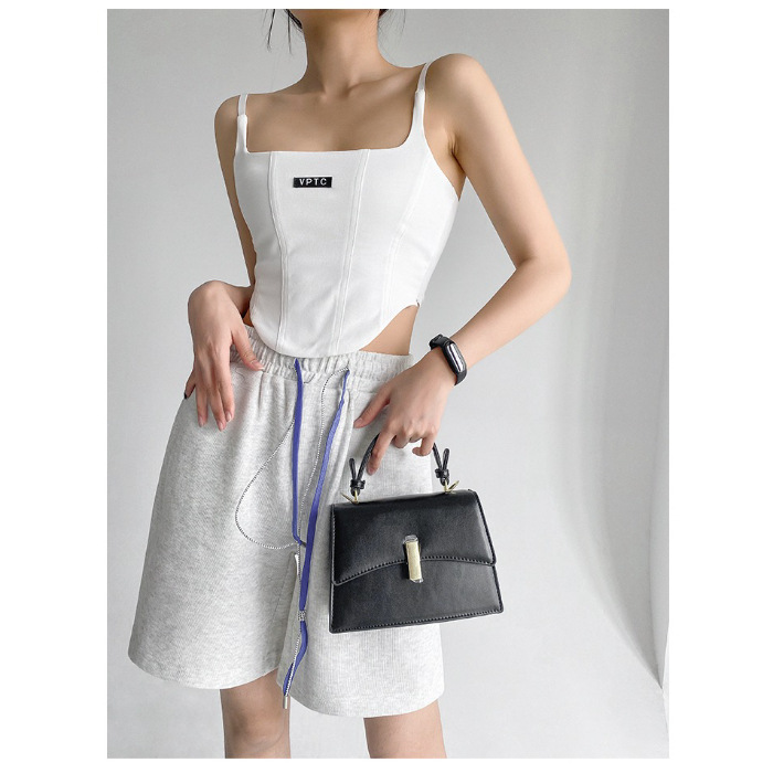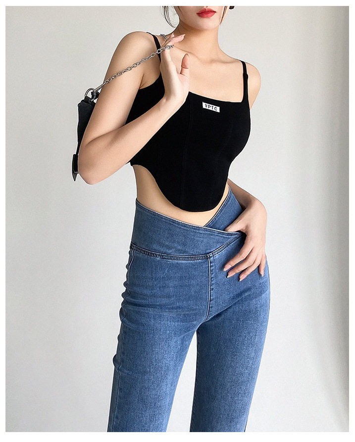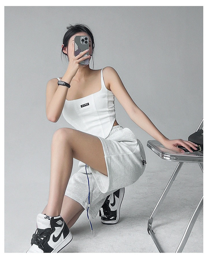 673 # 어깨끈 슬림핏 피쉬본 쉐이핑 캐미솔 여성 여름 허리 노출 핫걸 레터 로고 슬림핏 민소매 탑