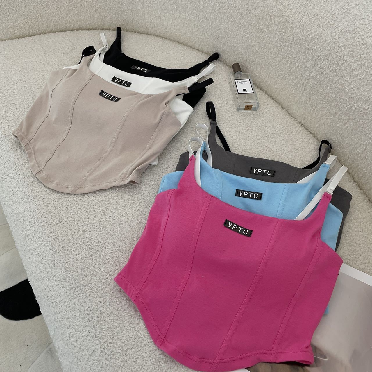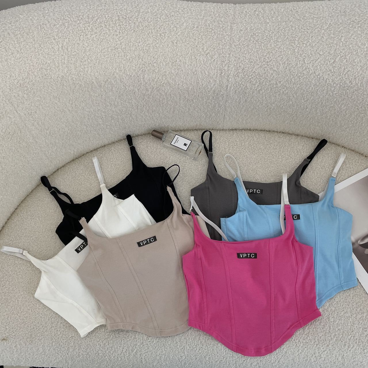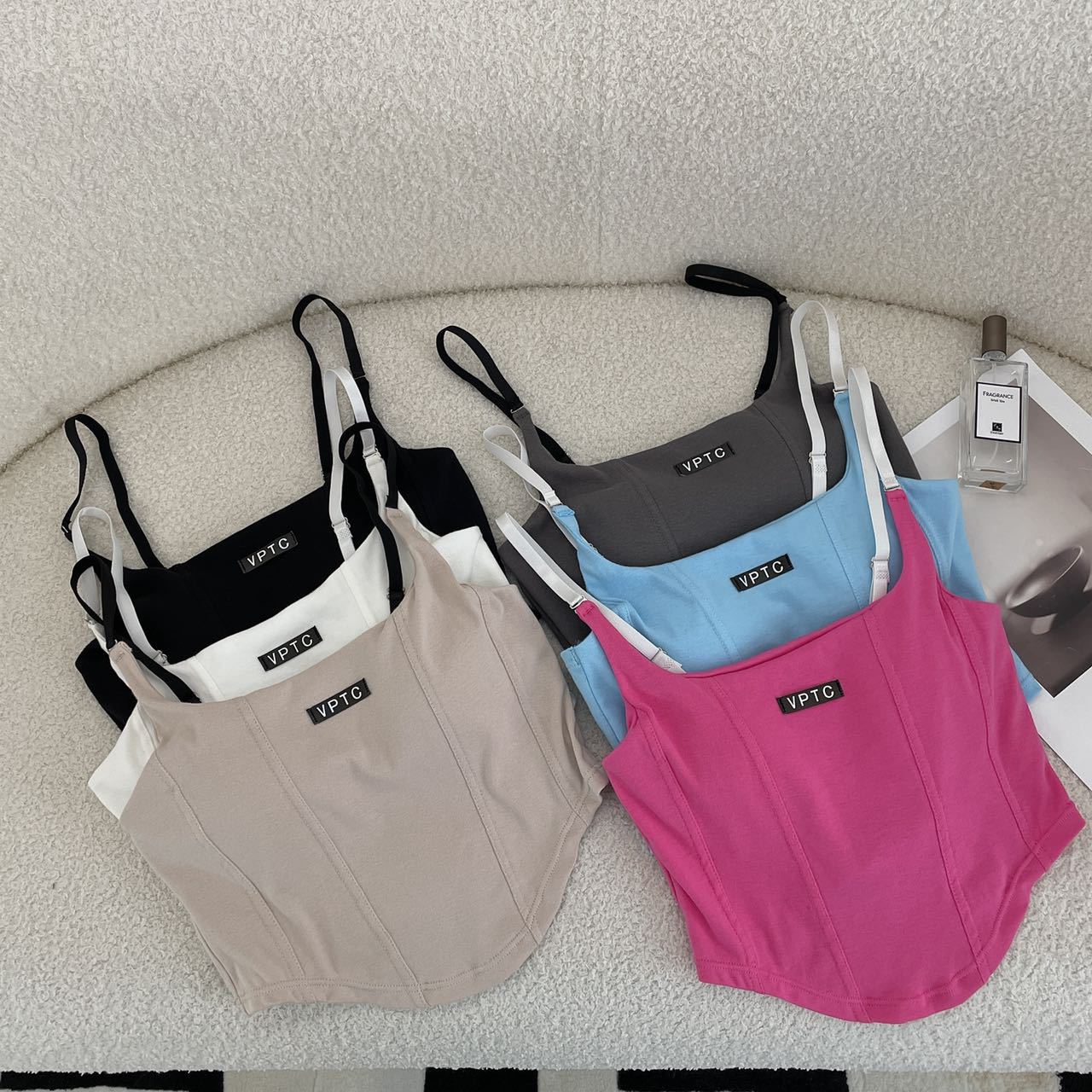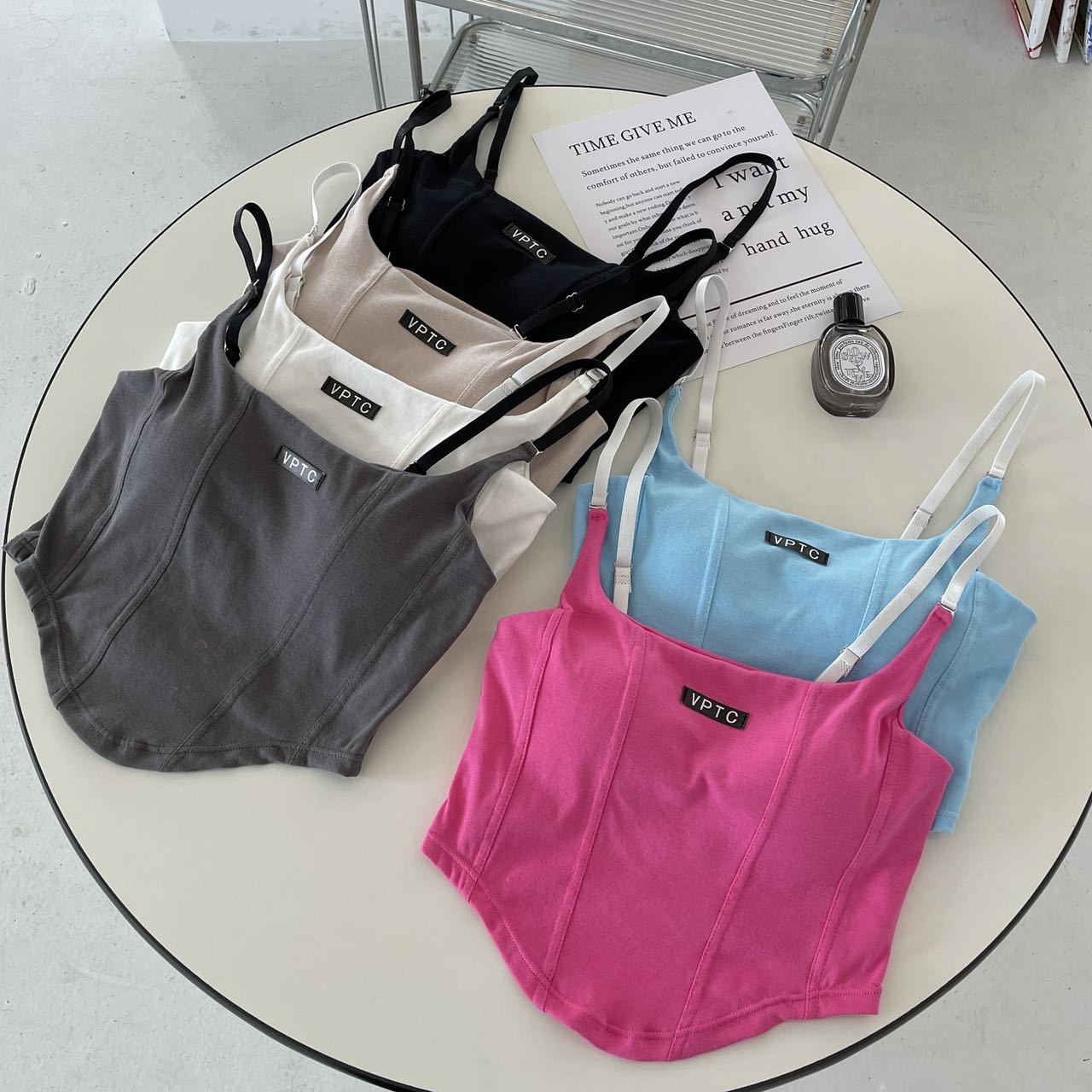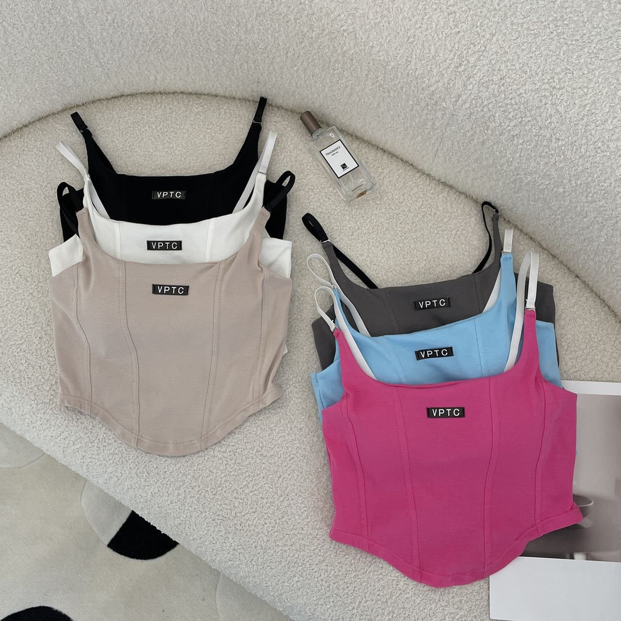 673 # 어깨끈 슬림핏 피쉬본 쉐이핑 캐미솔 여성 여름 허리 노출 핫걸 레터 로고 슬림핏 민소매 탑