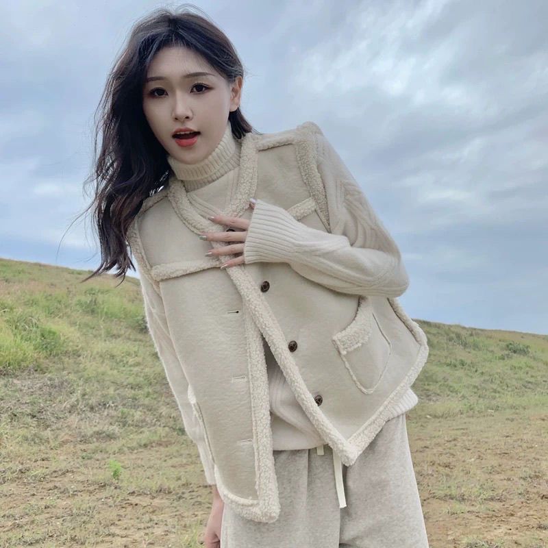 샤넬 스타일 양고기 조끼 여자 2024 가을 겨울 한국 스타일 두꺼운 웨어러블 모피 새로운 올인원 재킷스토어 가기
