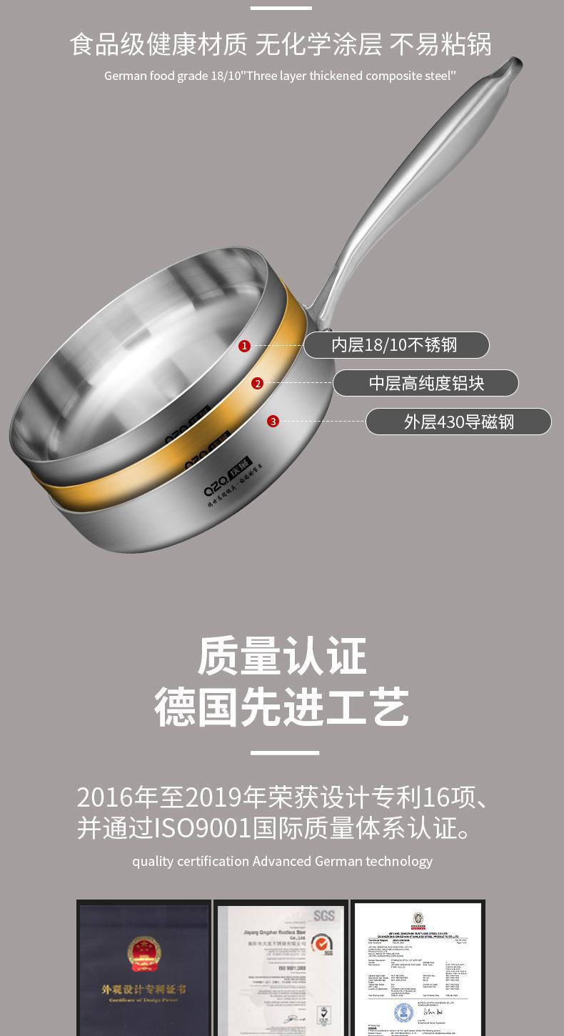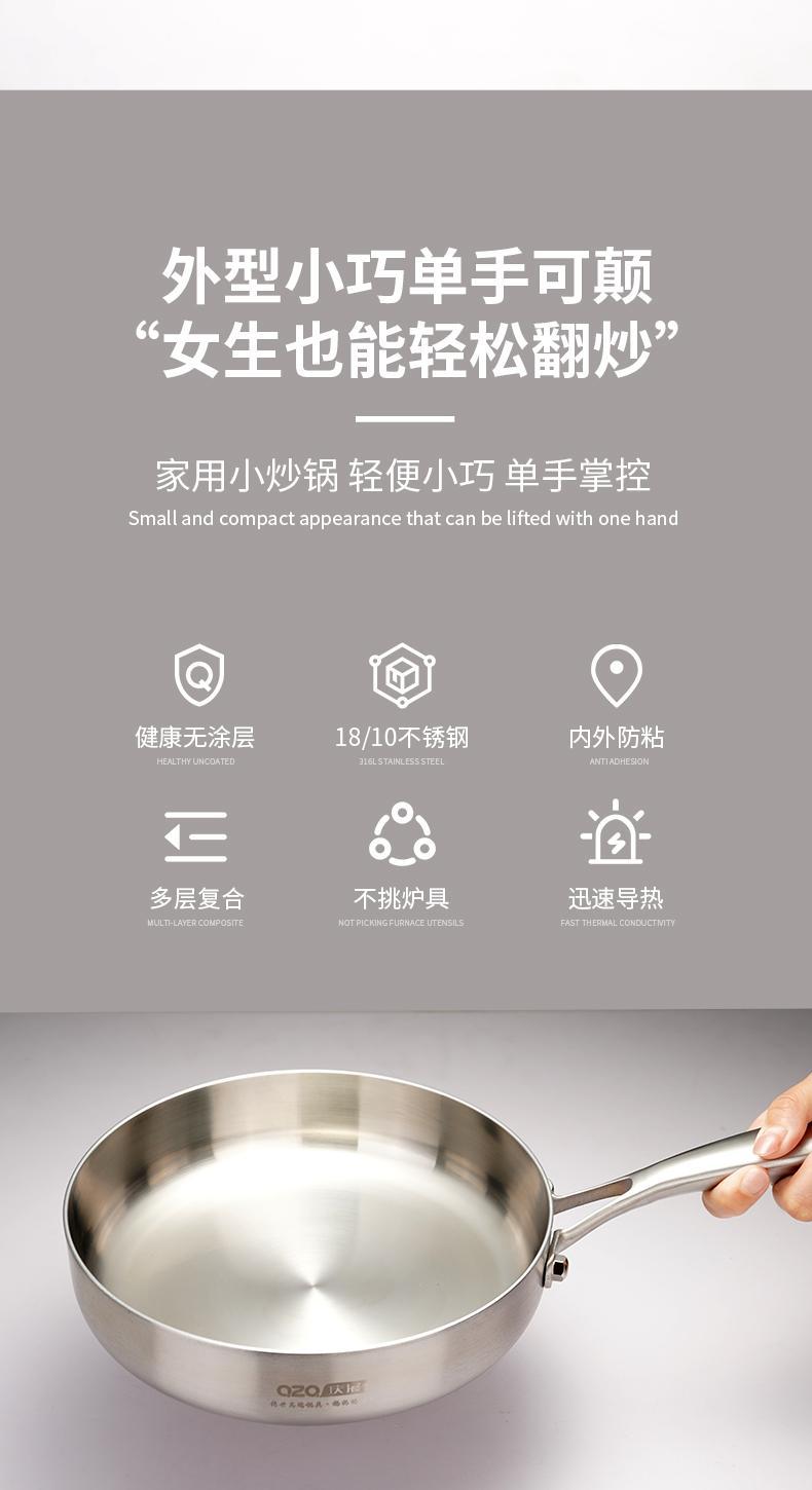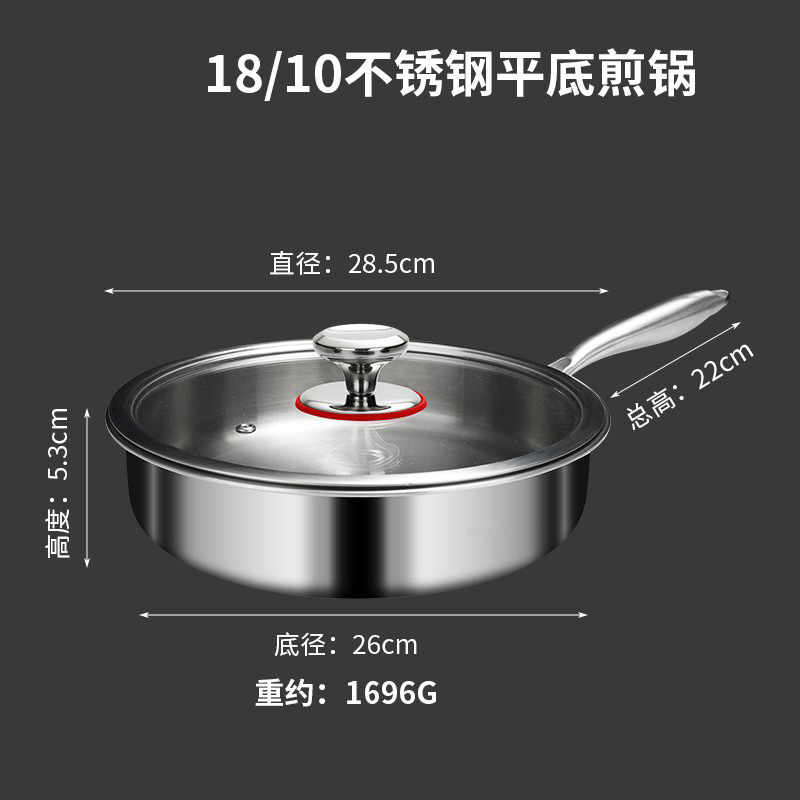 18-10 3겹 강철 프라이팬, 두꺼운 바닥 프라이팬, 가정용 고급 소형 프라이팬, 바닥이 평평한 스테이크 프라이팬, 식기세척기 사용 가능스토어 가기