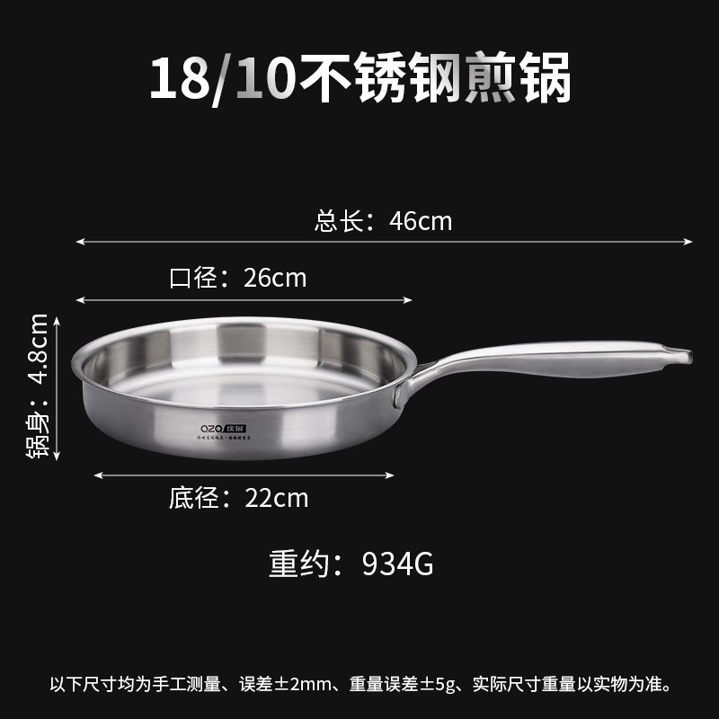 18-10 3겹 강철 프라이팬, 두꺼운 바닥 프라이팬, 가정용 고급 소형 프라이팬, 바닥이 평평한 스테이크 프라이팬, 식기세척기 사용 가능