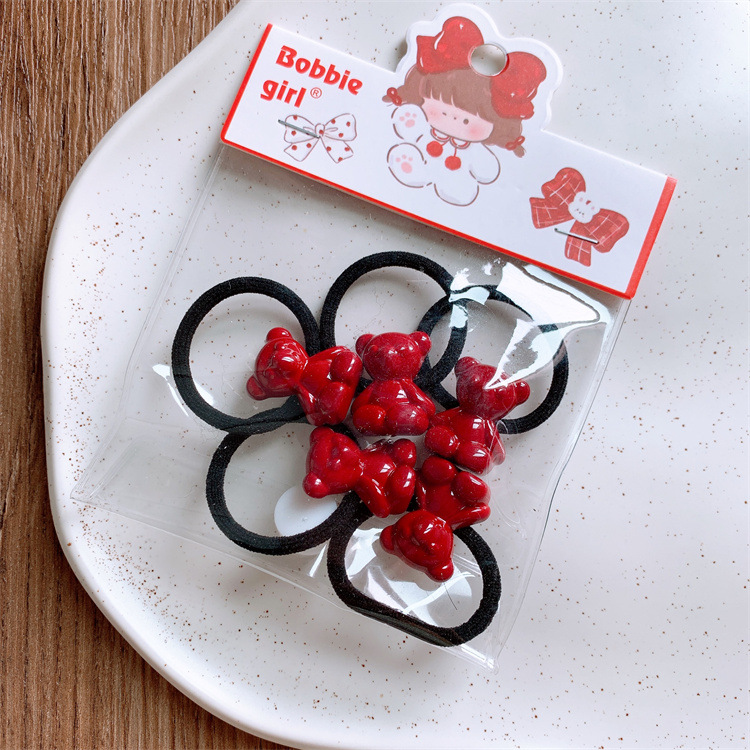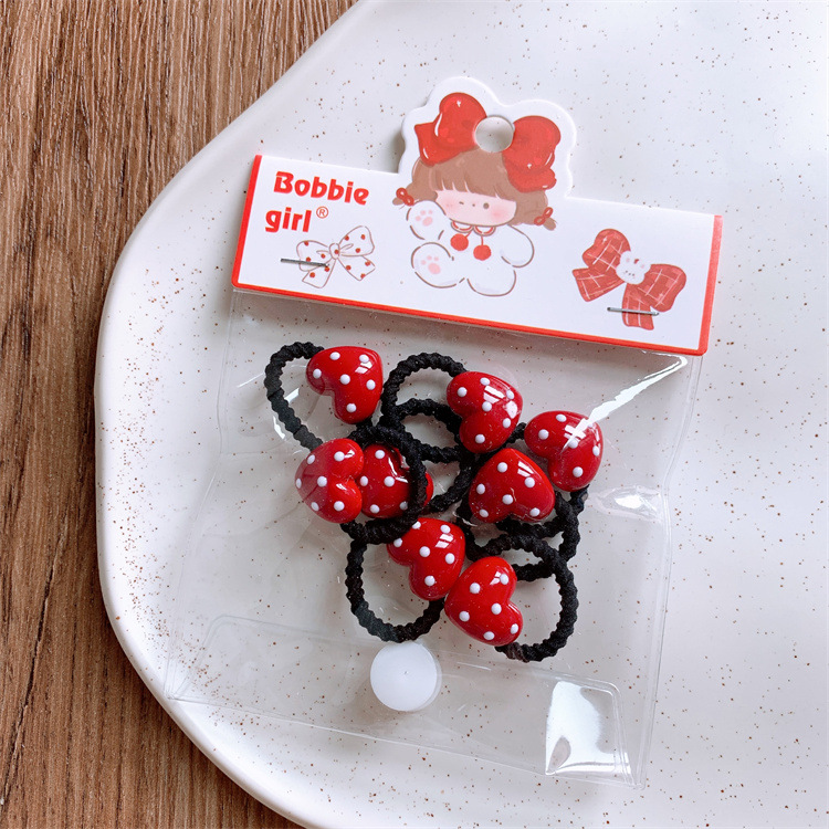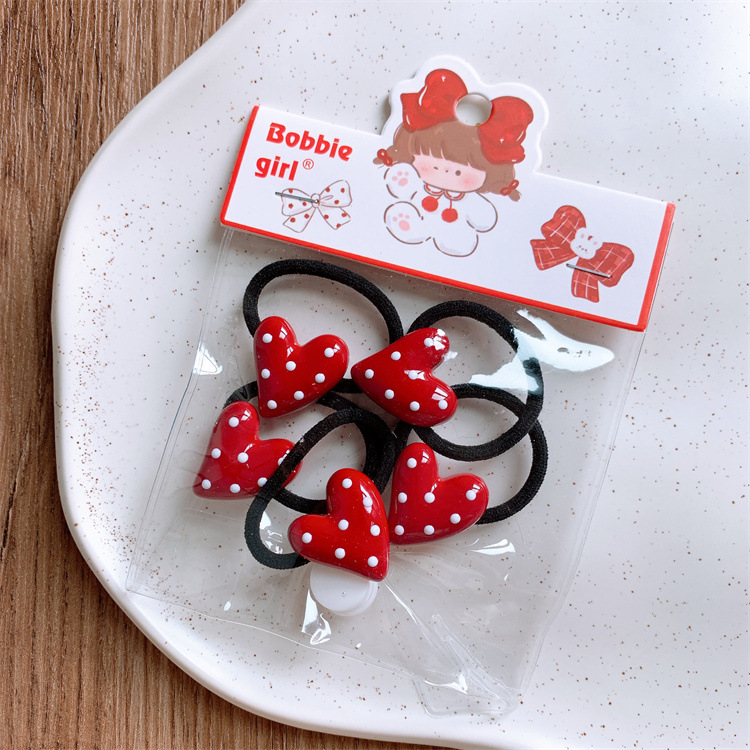 빨간 어린이 웨이브 도트 사랑 웃는 얼굴 머리 반지 아기의 머리 로프 귀여운 소녀 어린이 헤어 스트랩 고무 스트랩 헤어 로프스토어 가기
