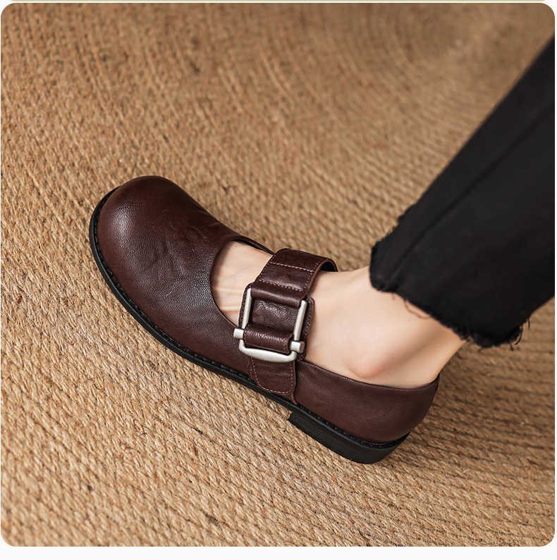 가을 2024 새로운 도착 라운드 토 메리 제인 신발 여성 로우 입 로우 힐 두꺼운 힐 신발 안카라 레드 양가죽 신발스토어 가기