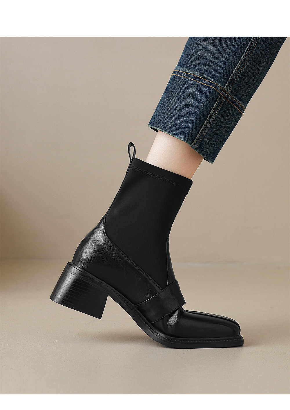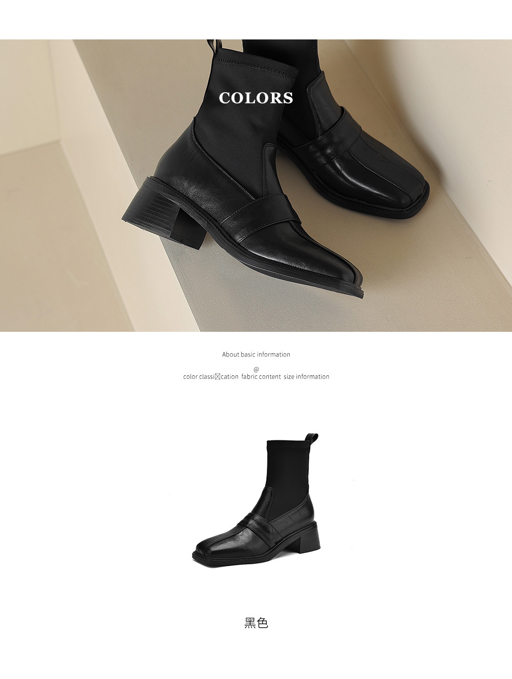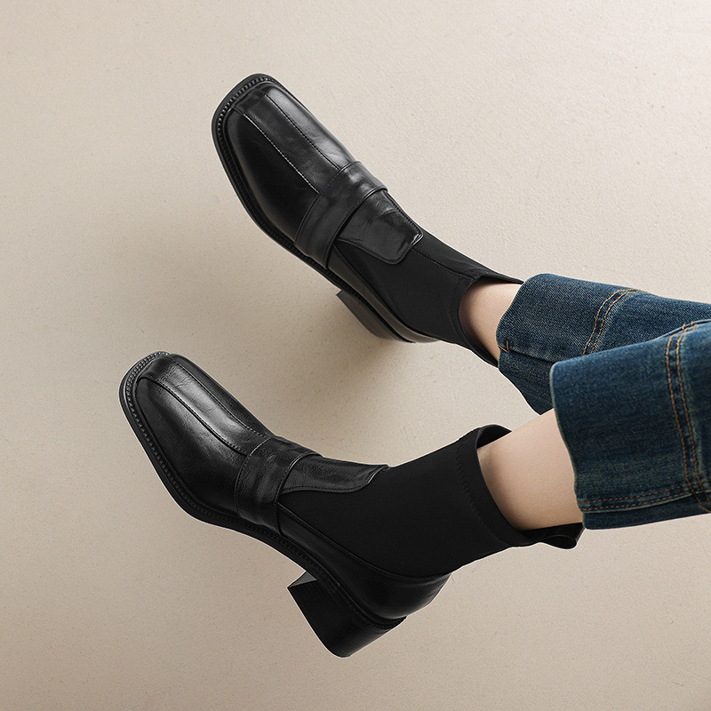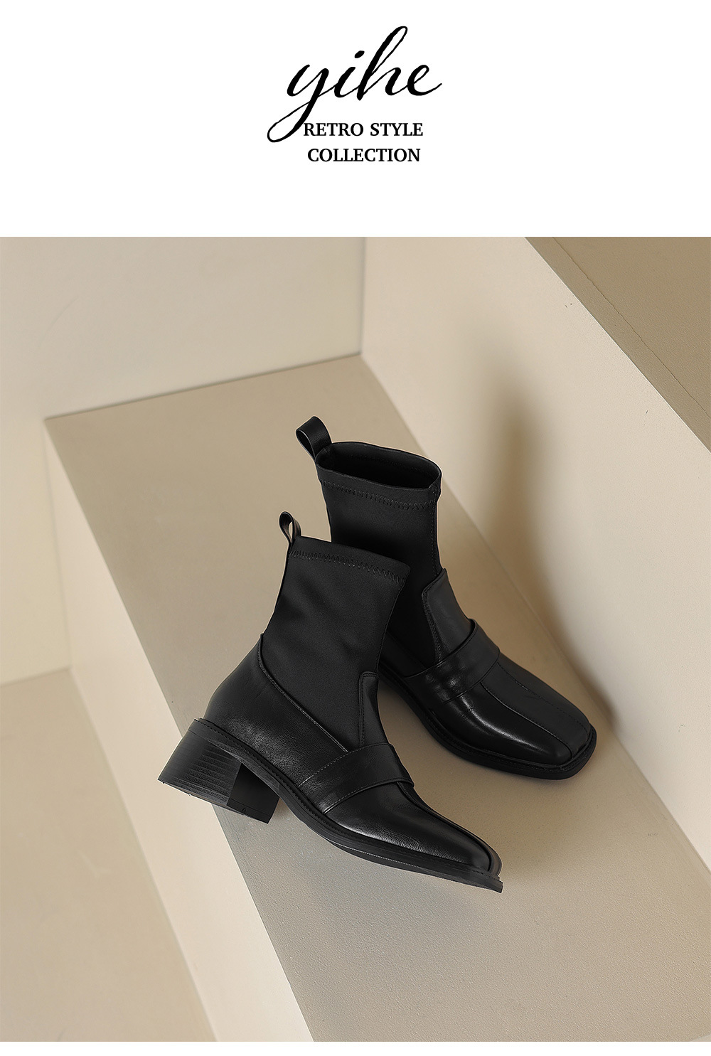 33-43 플러스 사이즈 부츠 가을과 겨울 새로운 두꺼운 힐 짧은 부츠 여성 양말 부츠 간단한 스퀘어 헤드 로우 힐 부츠 대외 무역 국경스토어 가기