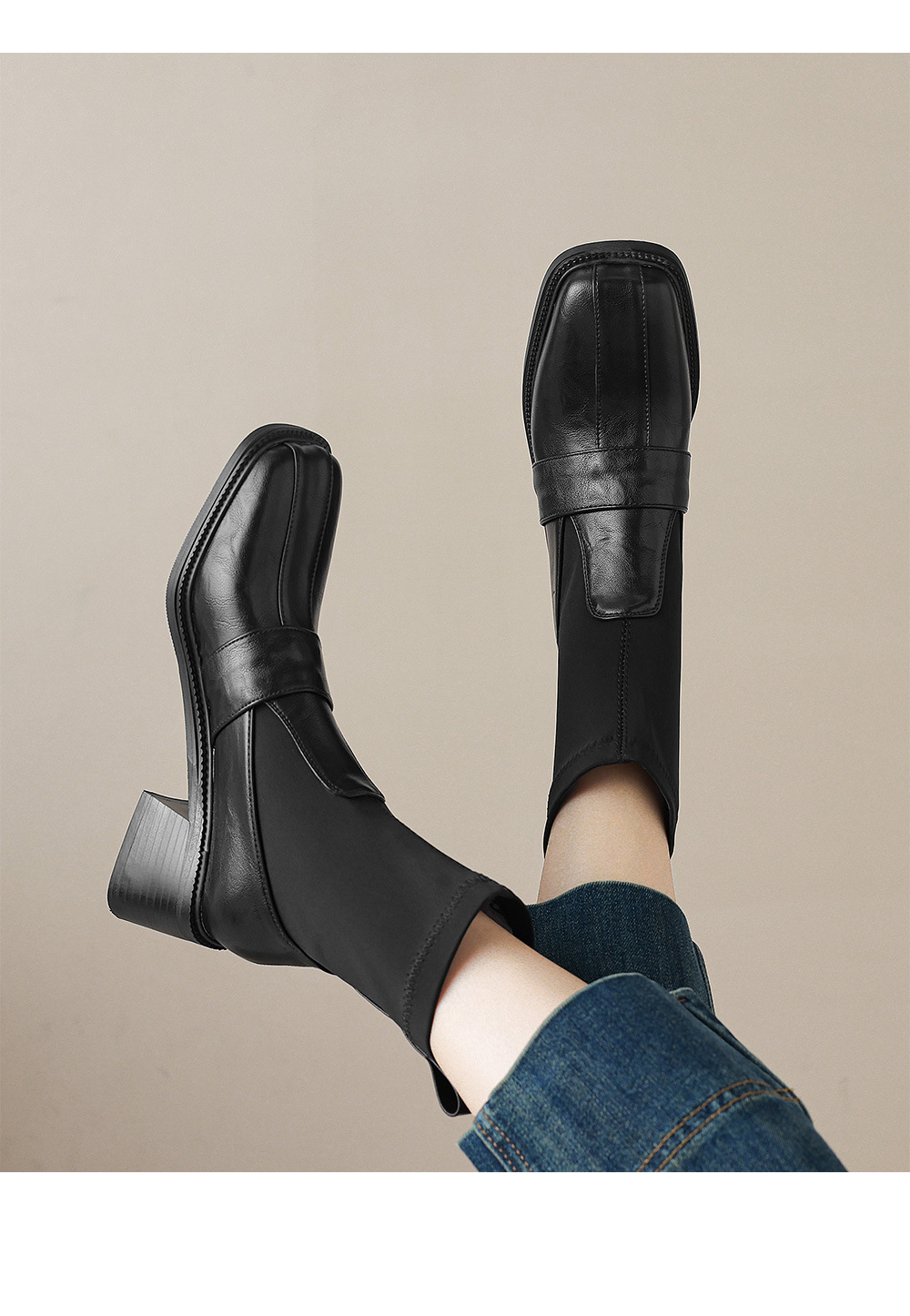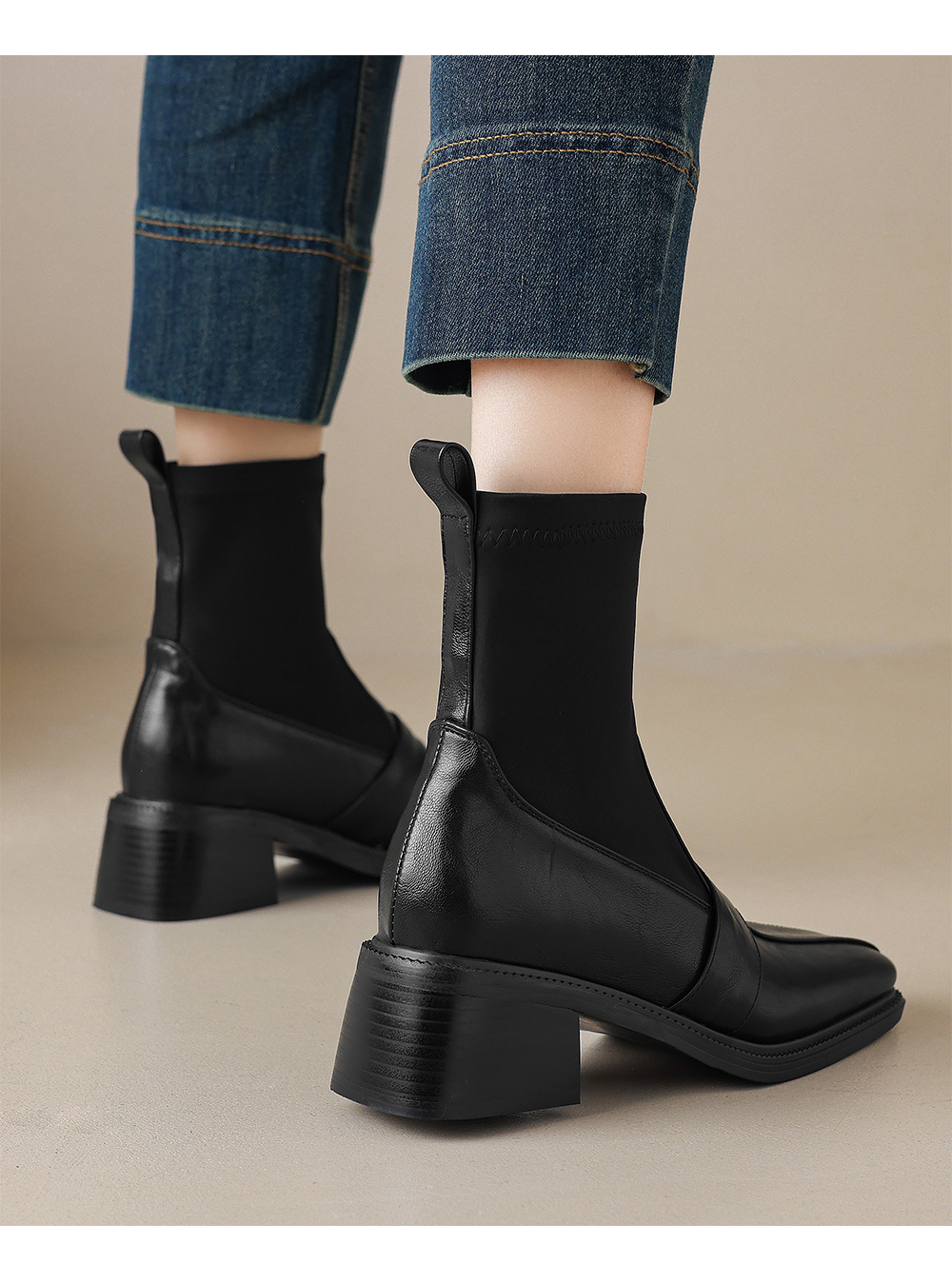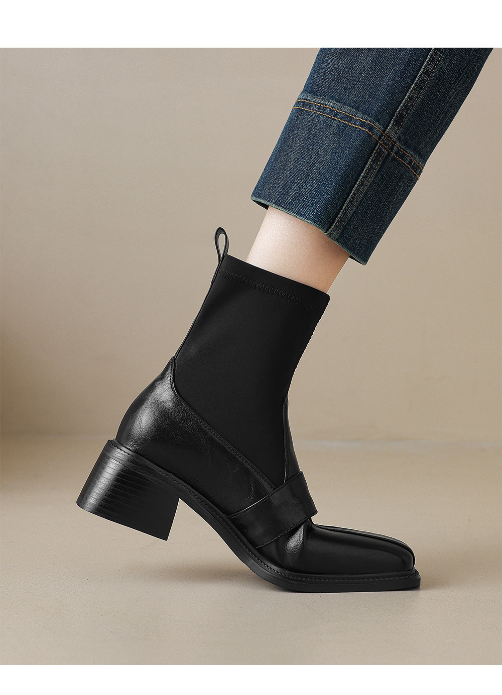 33-43 플러스 사이즈 부츠 가을과 겨울 새로운 두꺼운 힐 짧은 부츠 여성 양말 부츠 간단한 스퀘어 헤드 로우 힐 부츠 대외 무역 국경스토어 가기