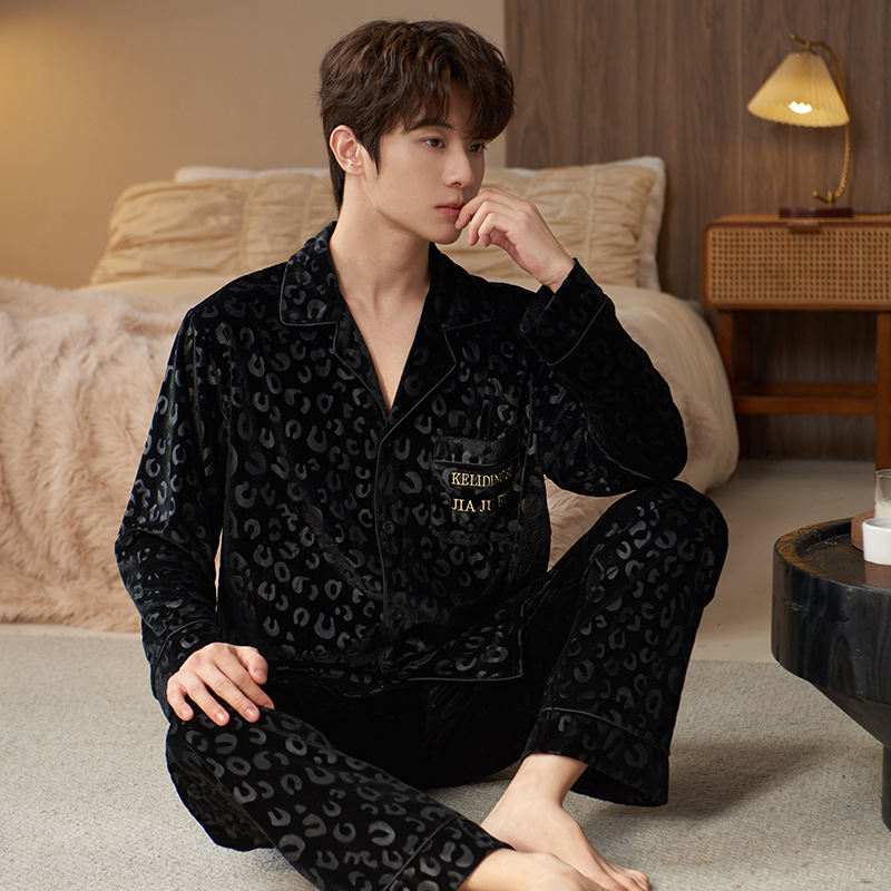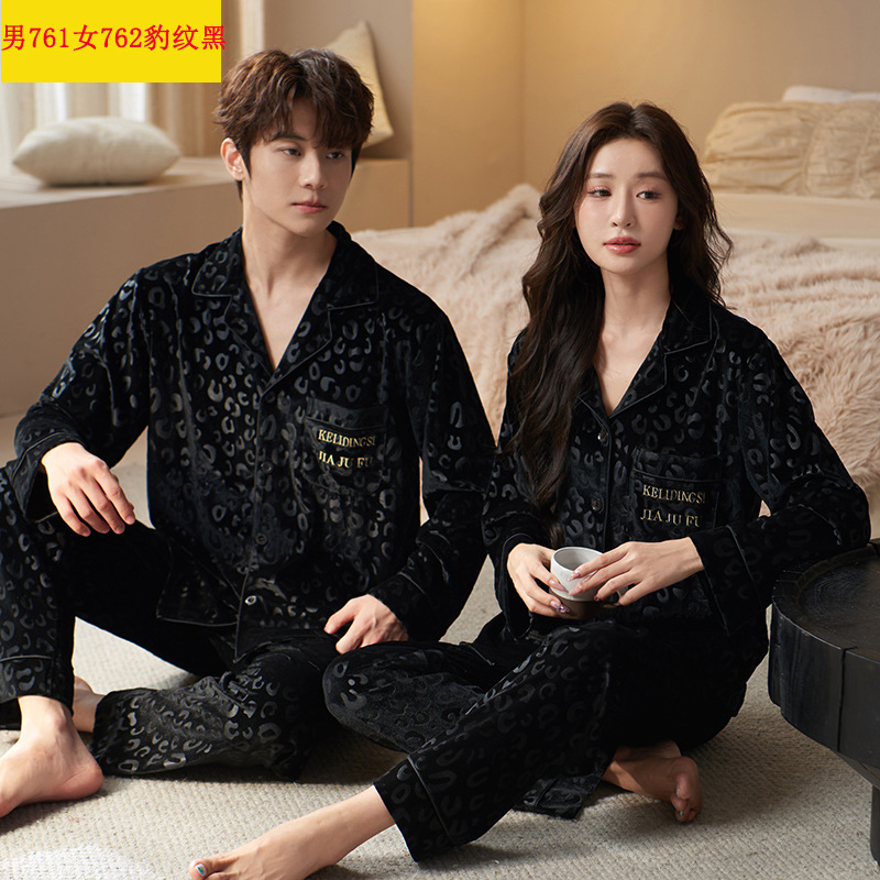 커플 잠옷 가을과 겨울 긴 소매 골드 벨벳 레오파드 무늬 캐주얼 세트 겨울 얇은 남성과 여성의 하이 엔드 센스 홈 의류
