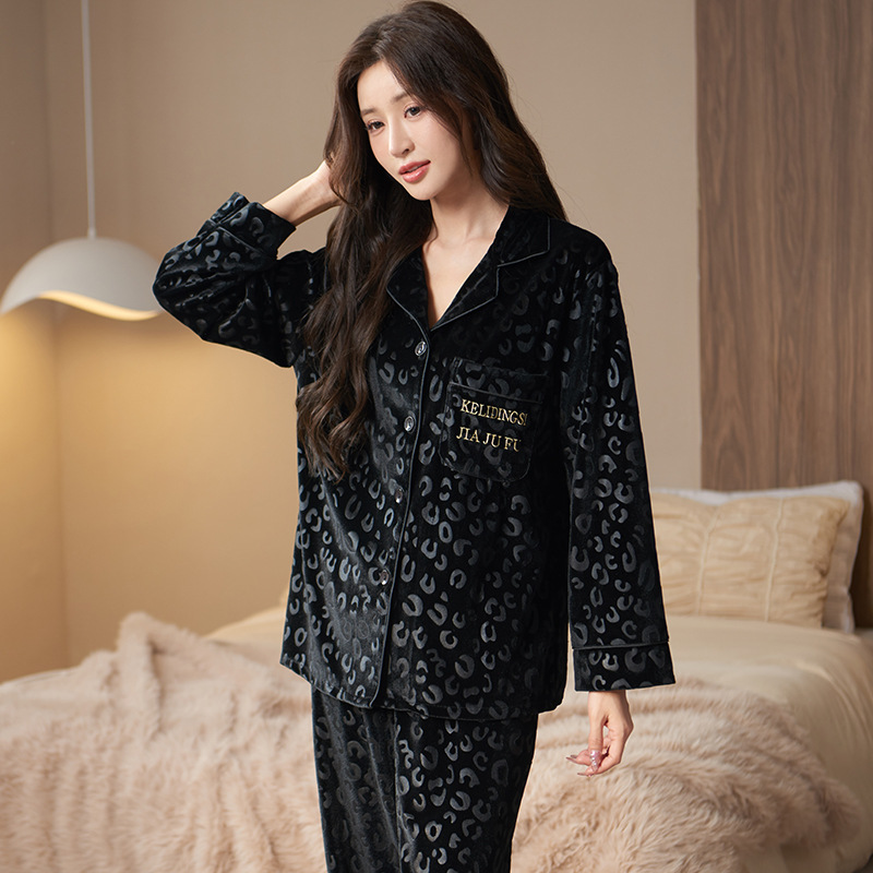커플 잠옷 가을과 겨울 긴 소매 골드 벨벳 레오파드 무늬 캐주얼 세트 겨울 얇은 남성과 여성의 하이 엔드 센스 홈 의류스토어 가기