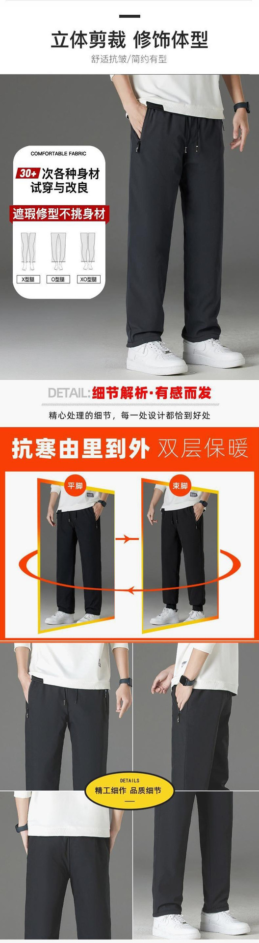 冬季新款男裤防风防水加绒加厚休闲裤石墨烯宽松百搭运动保暖棉裤