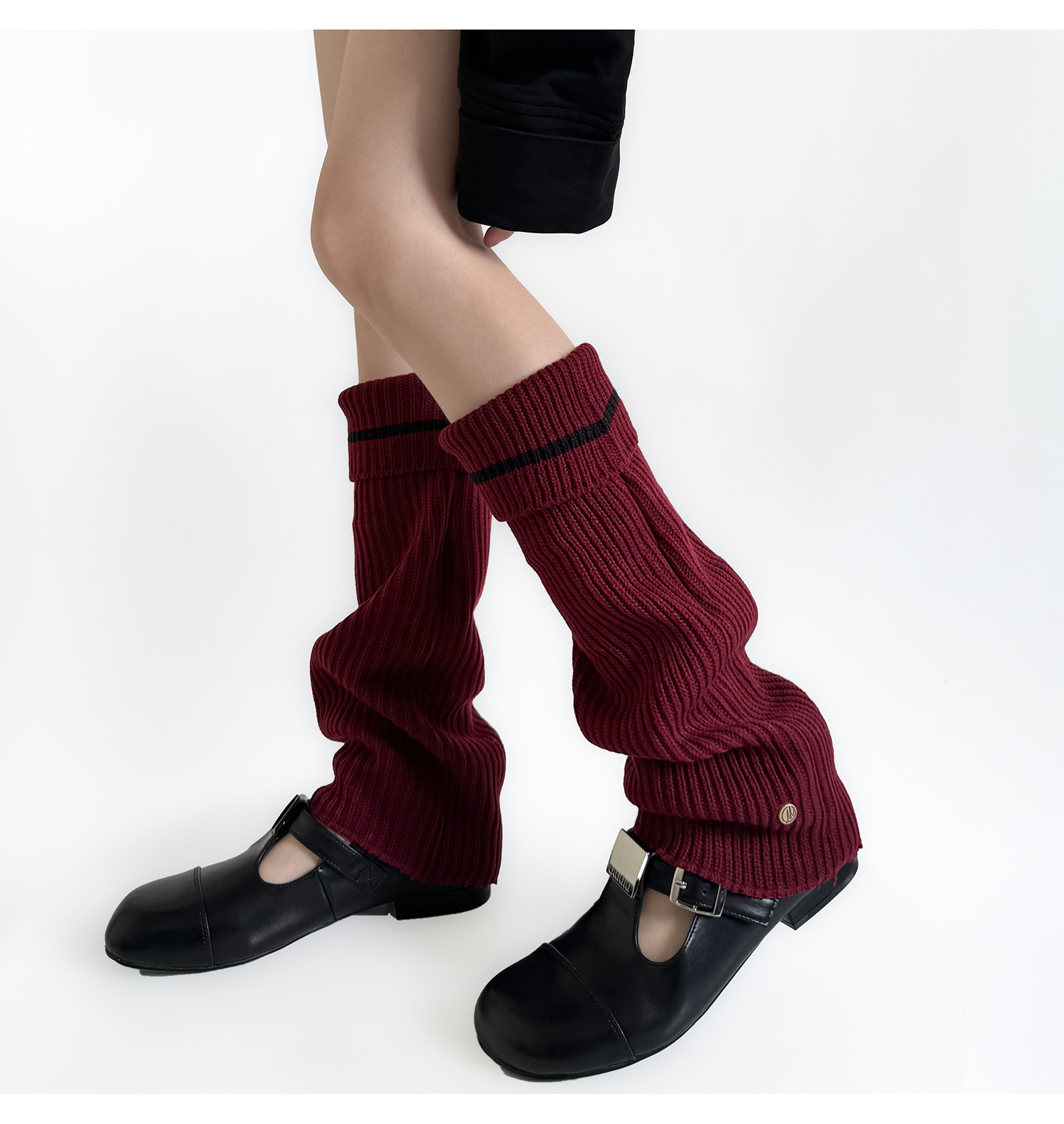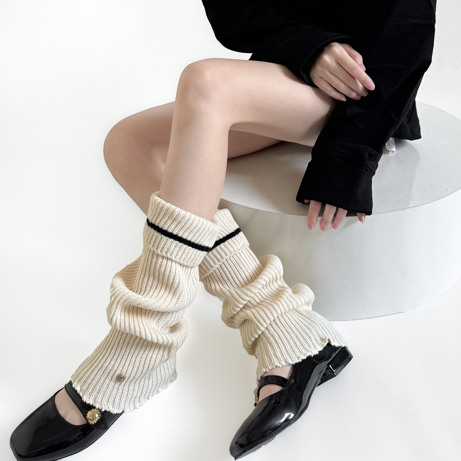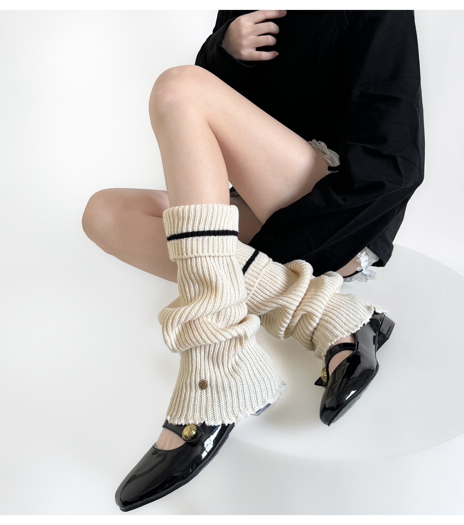 한국식 금속 버튼 디자인 여성을위한 턴업 코일 양말 가을 겨울 따뜻한 줄무늬 아카데미 스타일 니트 다리 커버