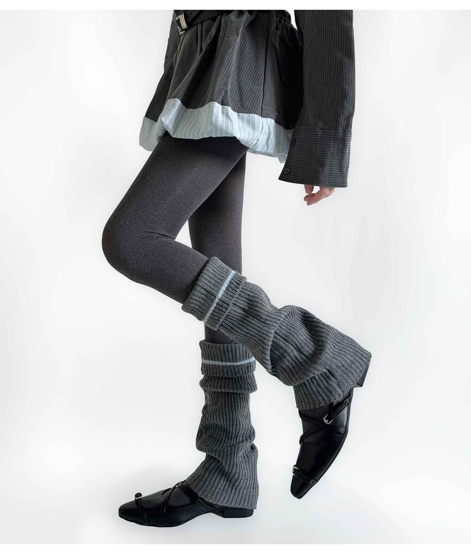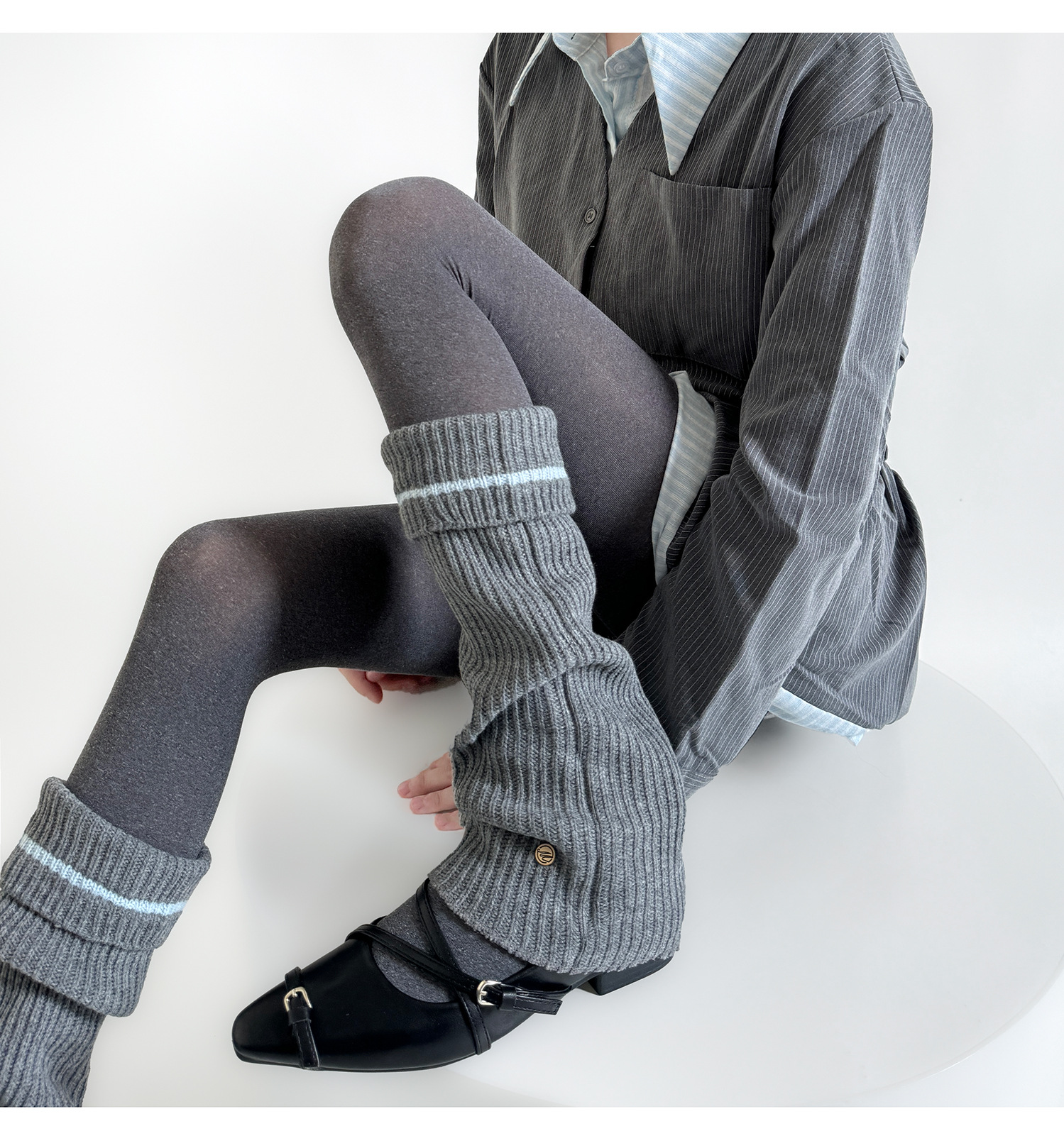 한국식 금속 버튼 디자인 여성을위한 턴업 코일 양말 가을 겨울 따뜻한 줄무늬 아카데미 스타일 니트 다리 커버스토어 가기