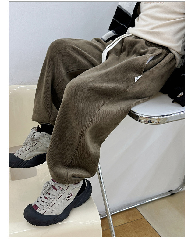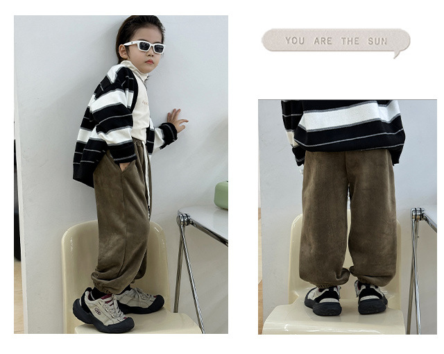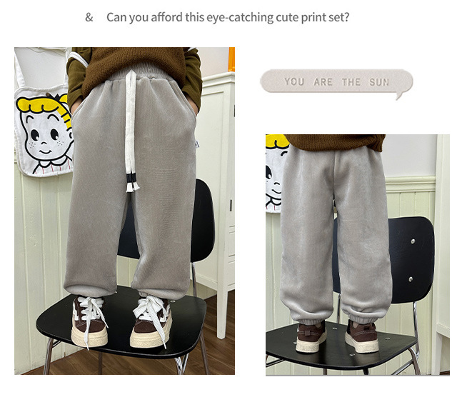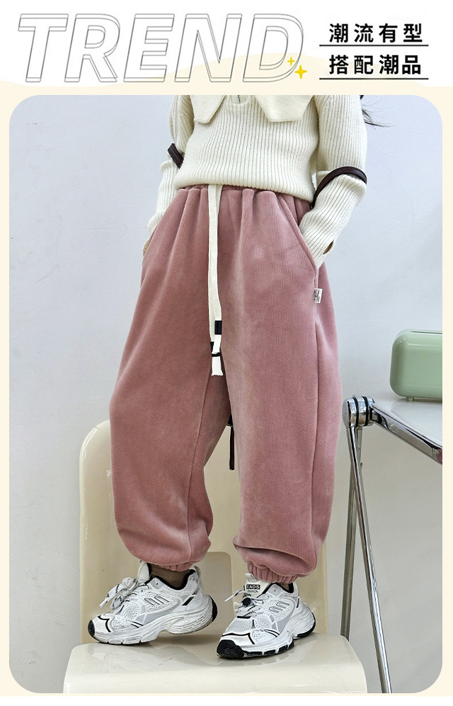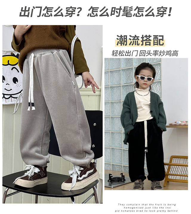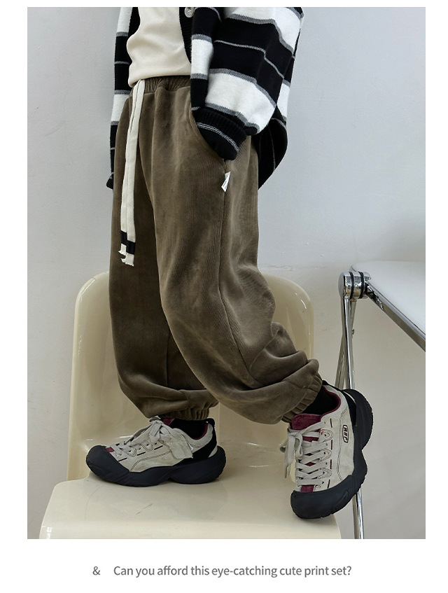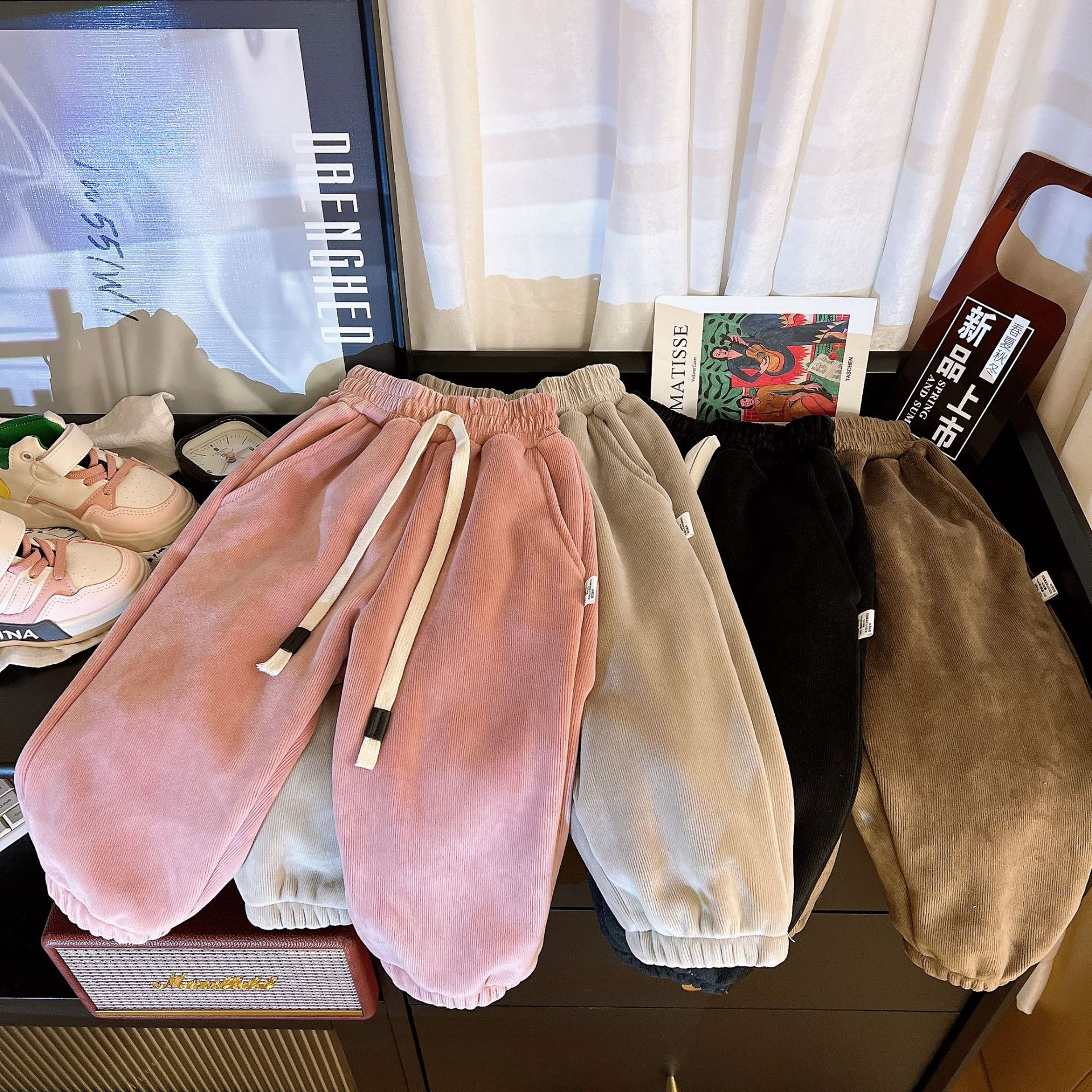 어린이 기모 바지 어린이 양면 양털 따뜻한 외모 바지 2024 신상 가을/겨울 소년 느슨한 캐주얼 레이스 업스토어 가기