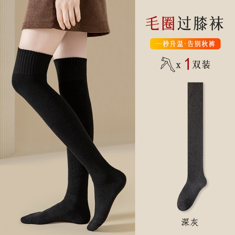 가을과 겨울 두꺼운 무릎 양말 여성의 기모 두껍게 따뜻한 열 저장 테리 허벅지 양말 여성의 높은 미끄럼 방지 스타킹