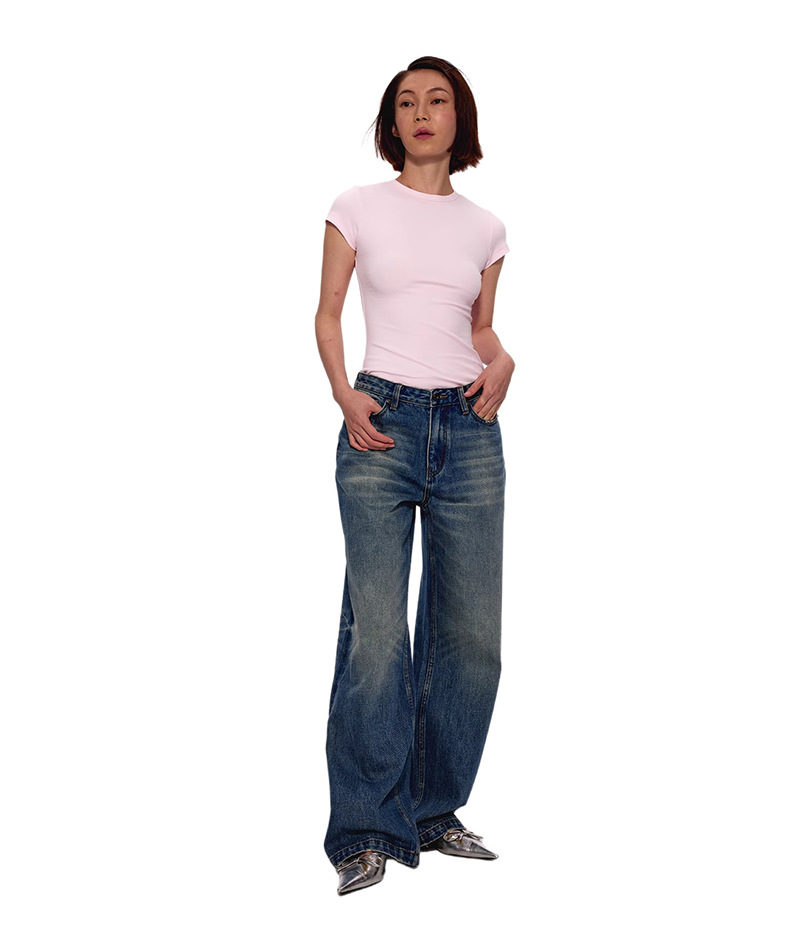 가을 여성용 반팔 슬림핏 티셔츠, 슬림한 핏의 정형 어깨 티셔츠, 캐주얼 상의, 이너웨어, 순면, 핫걸 스타일스토어 가기