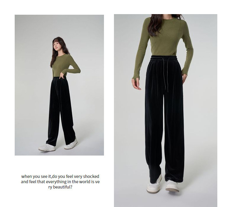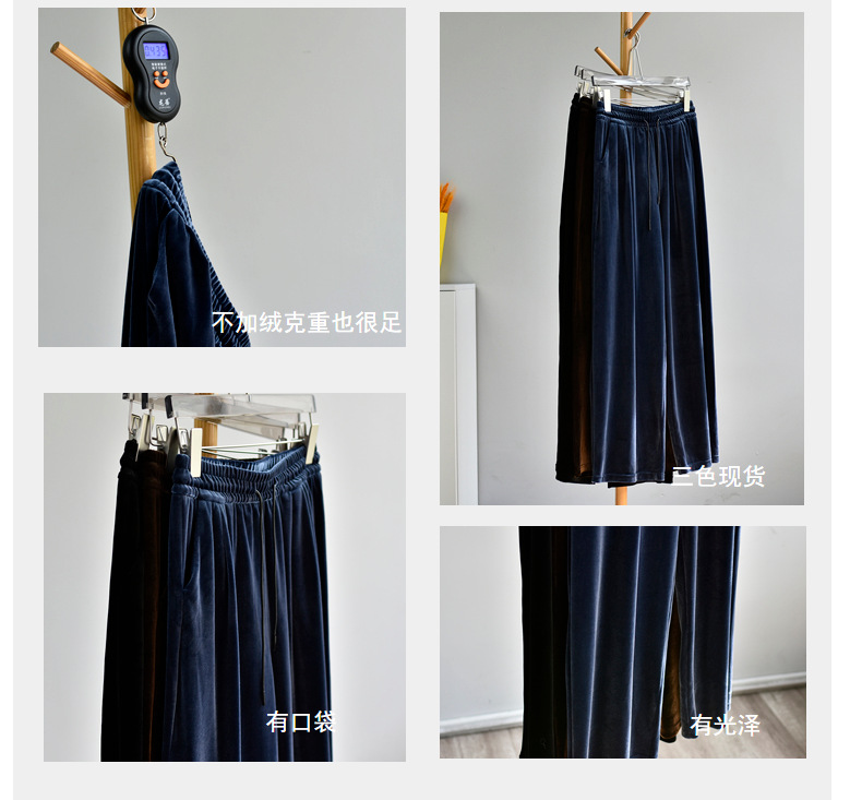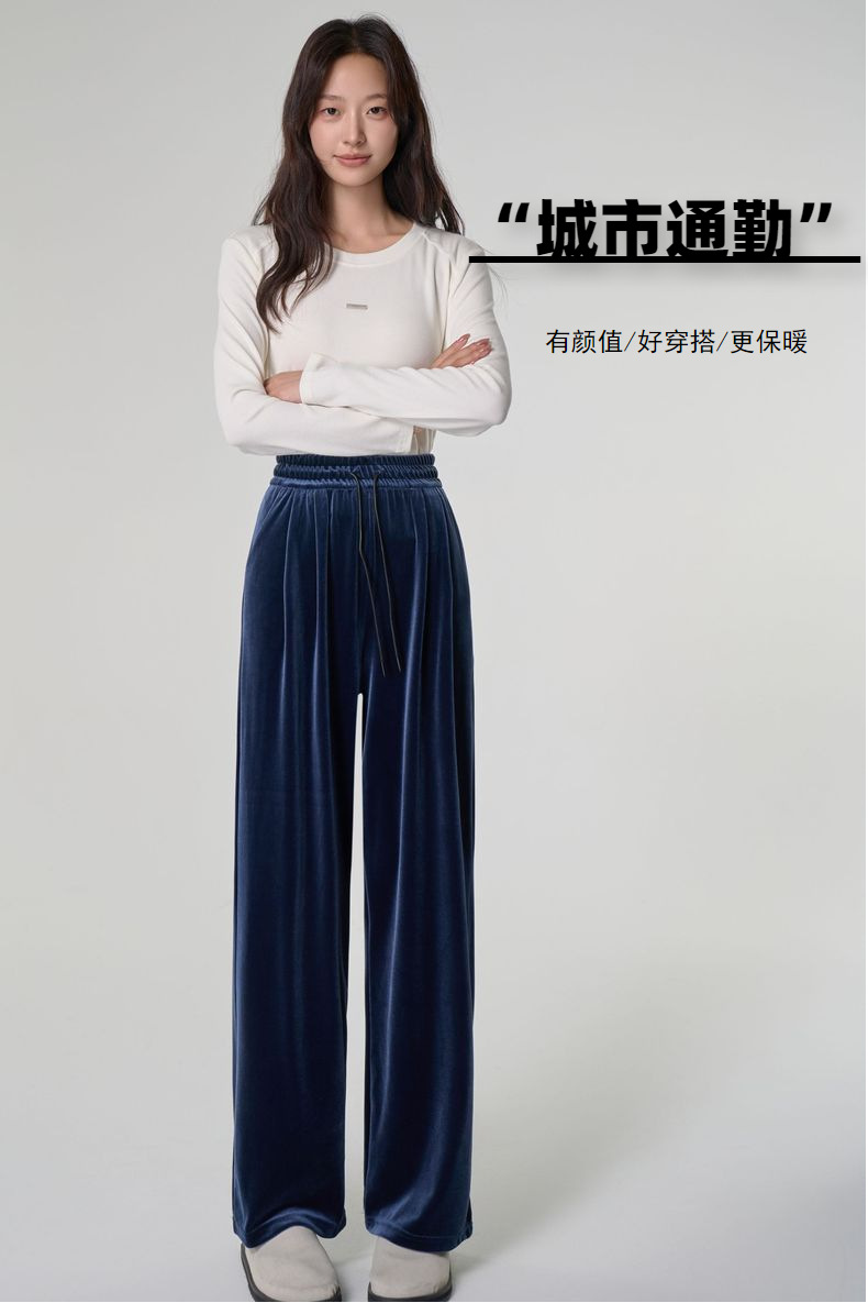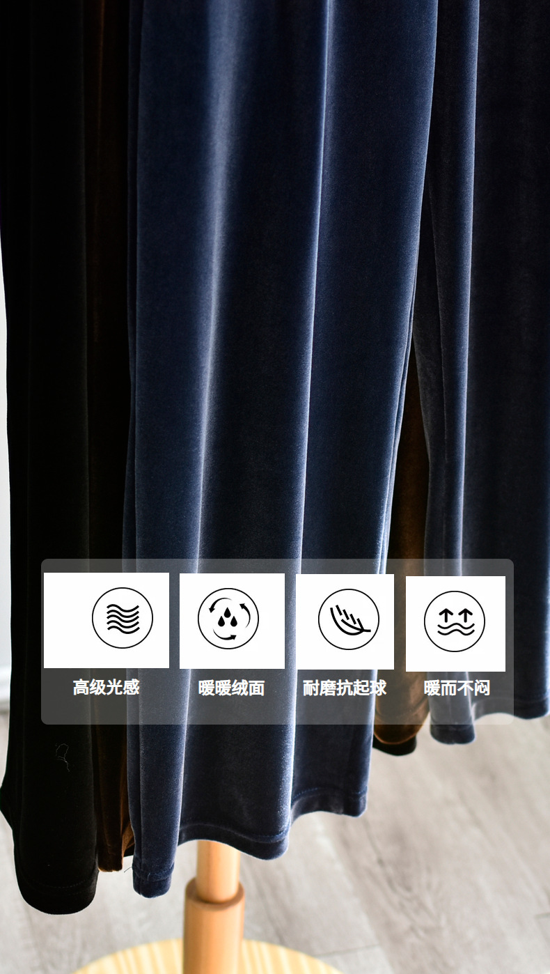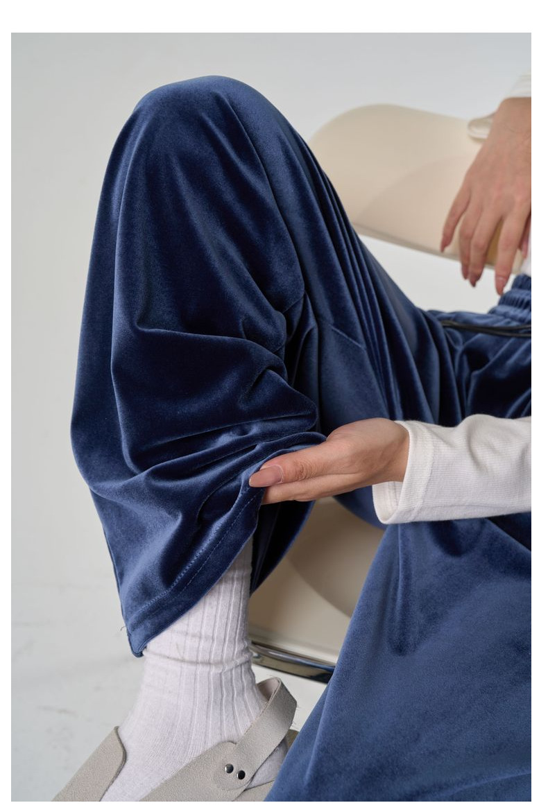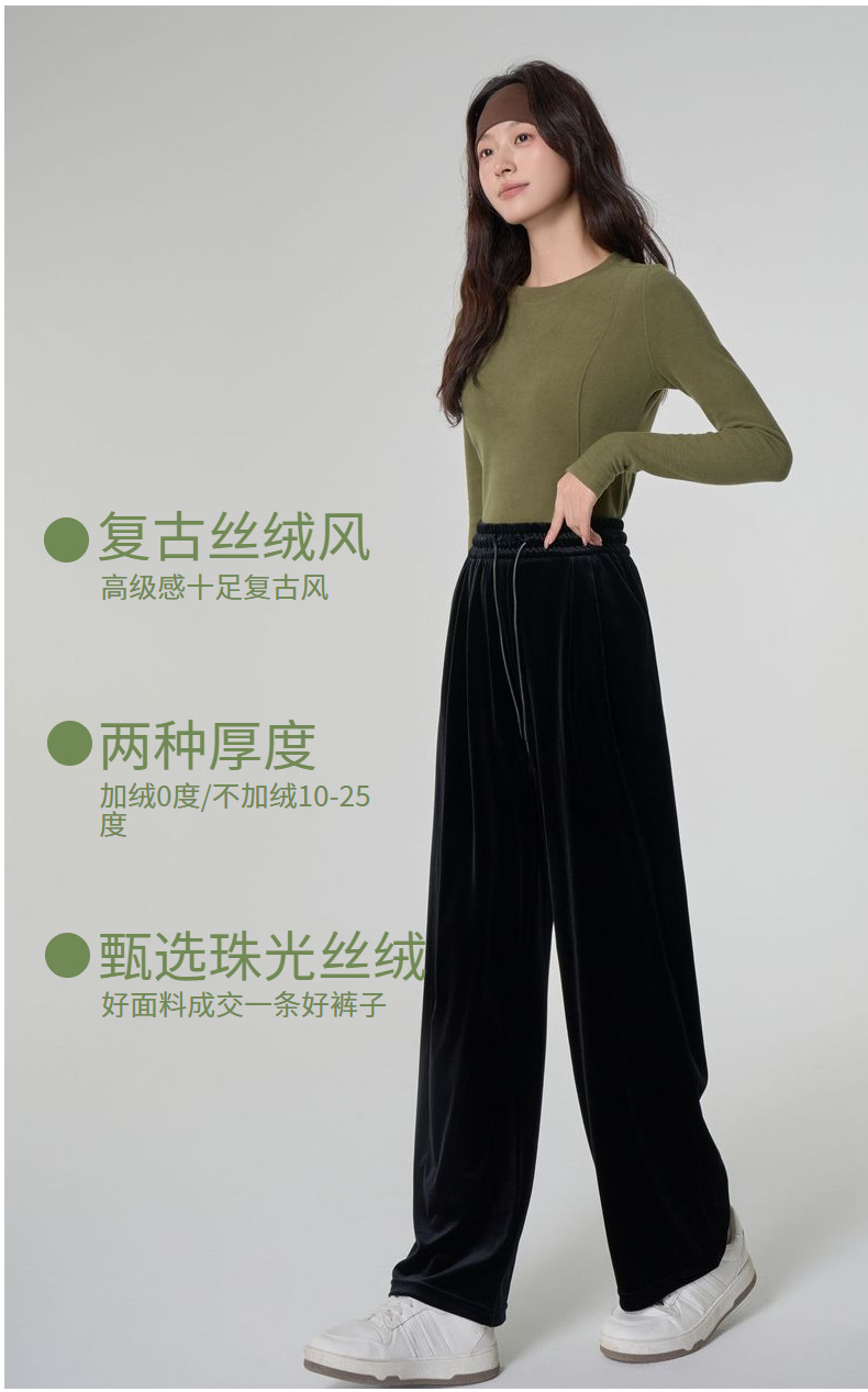 [두꺼운 벨벳] 새 여성 가을 · 겨울 황금 벨벳 와이드 레그 기모 빨래진 스트레이트 벨벳 바지스토어 가기