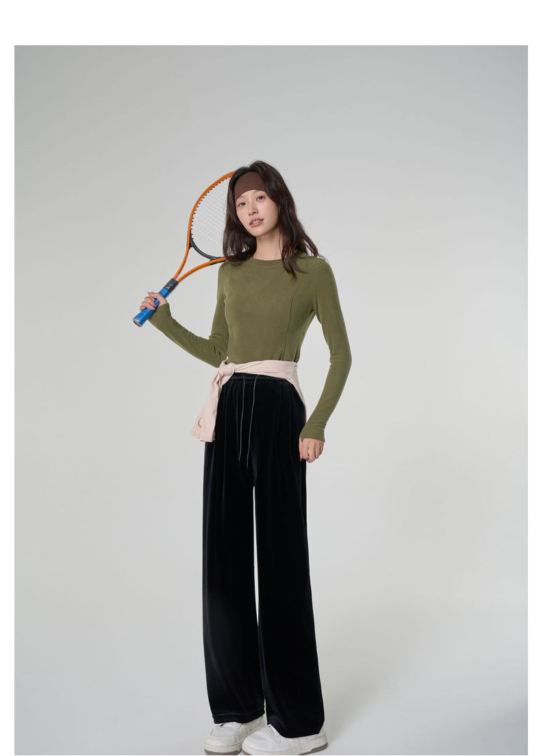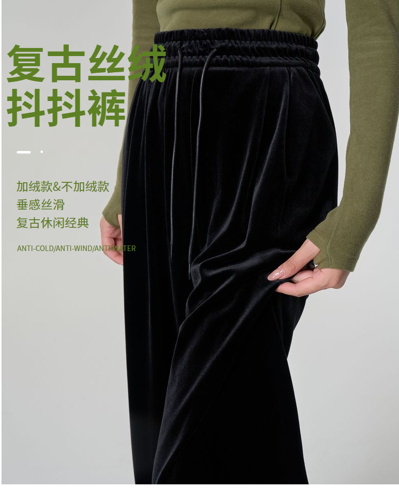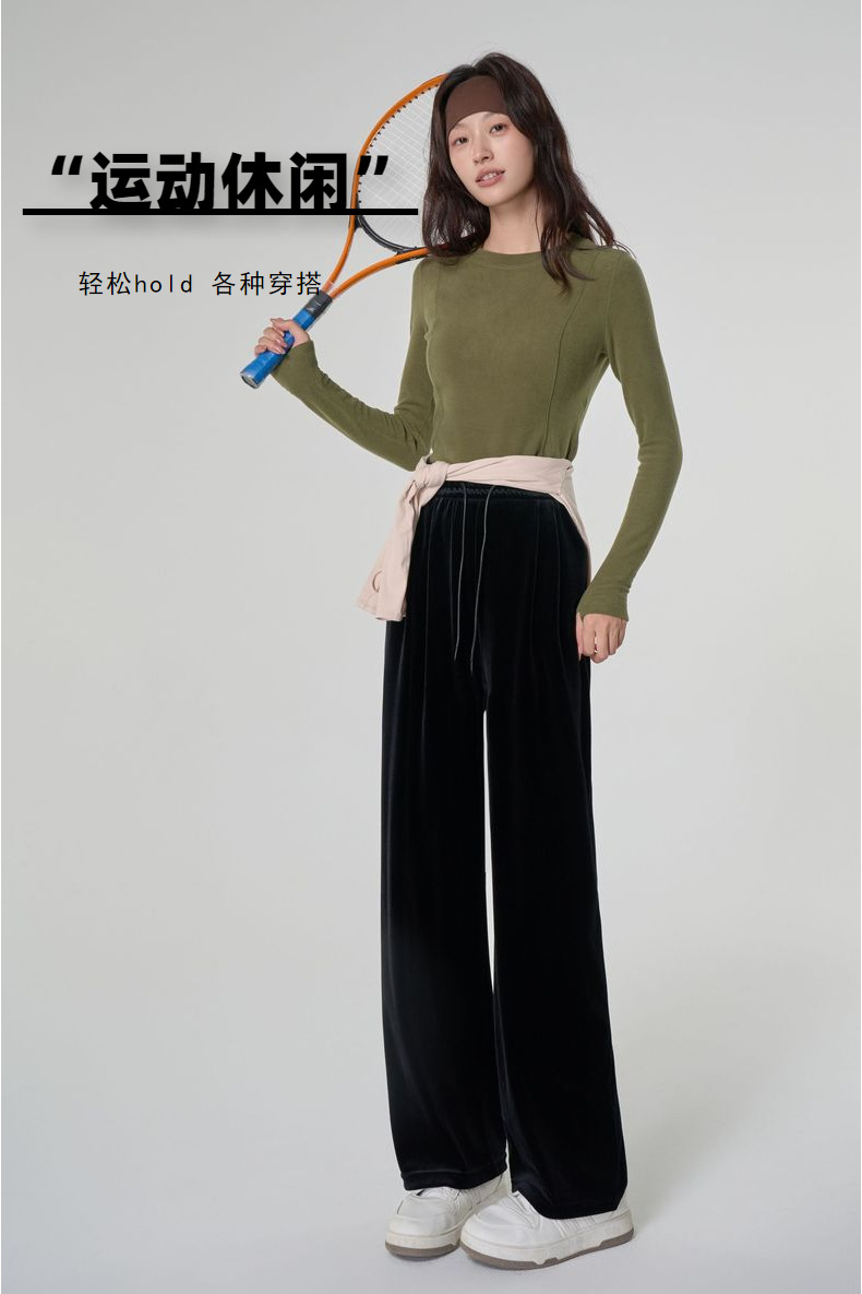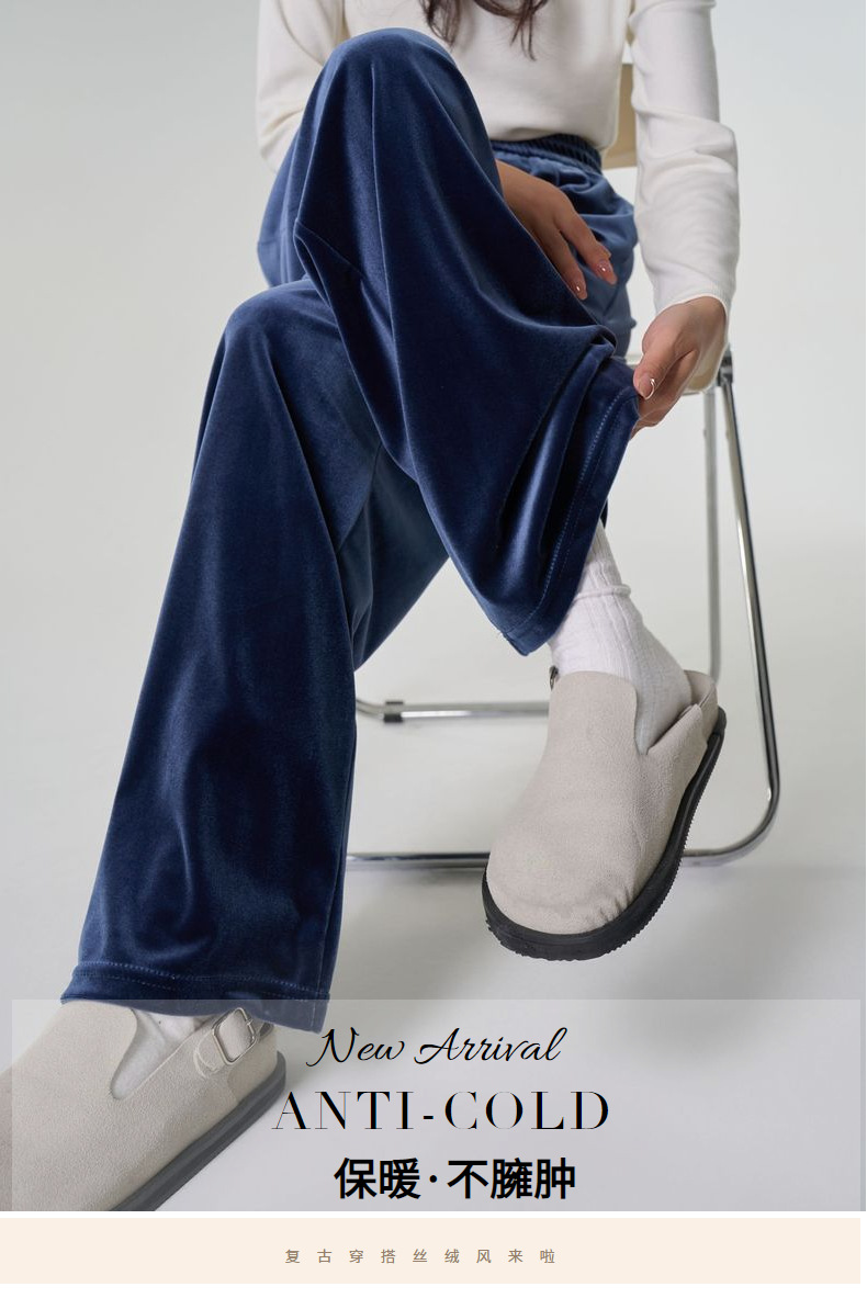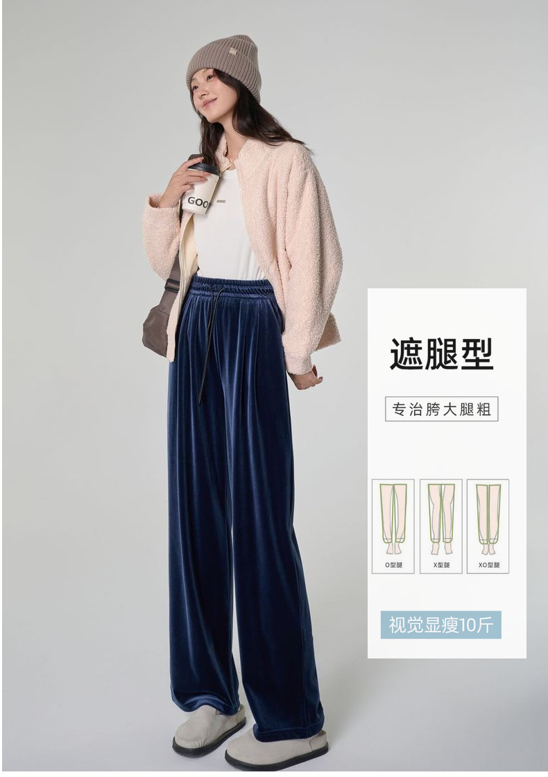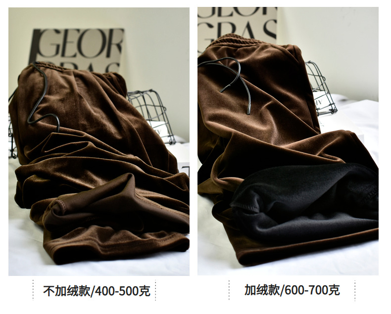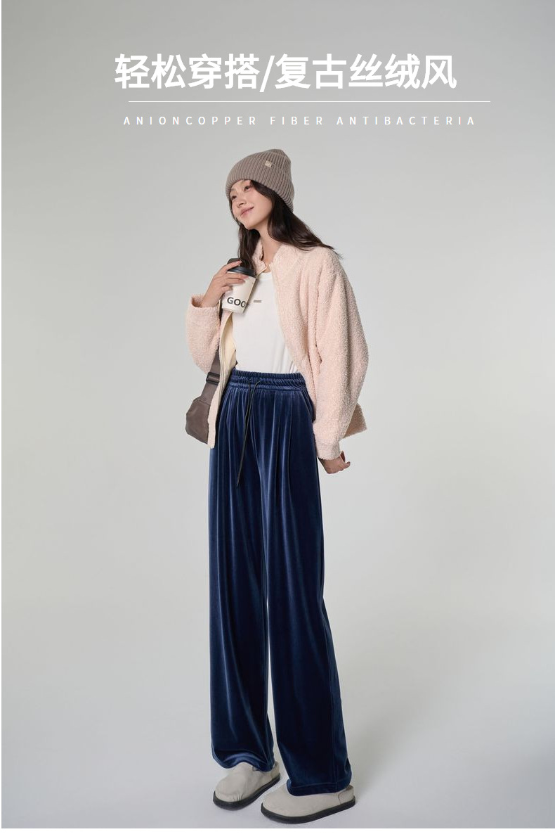 [두꺼운 벨벳] 새 여성 가을 · 겨울 황금 벨벳 와이드 레그 기모 빨래진 스트레이트 벨벳 바지스토어 가기