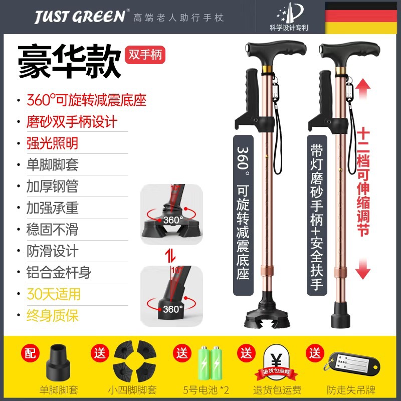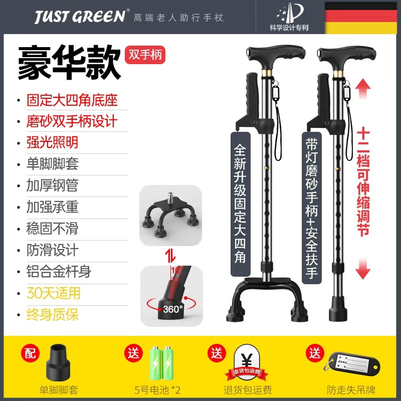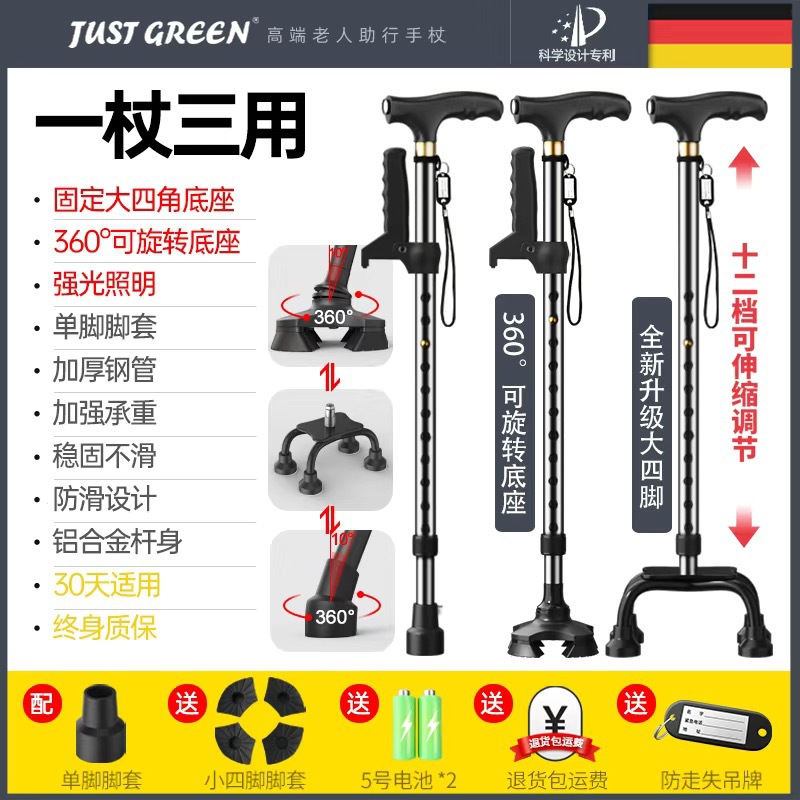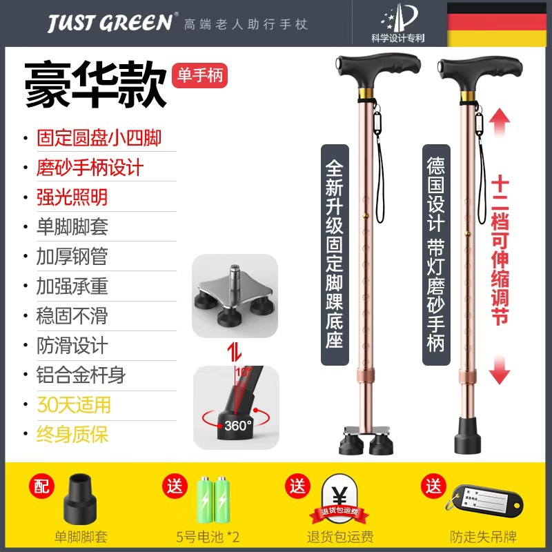 노인 Lepton 알루미늄 합금을위한 노인 4 발 텔레스코픽 지팡이 경량 다기능스토어 가기