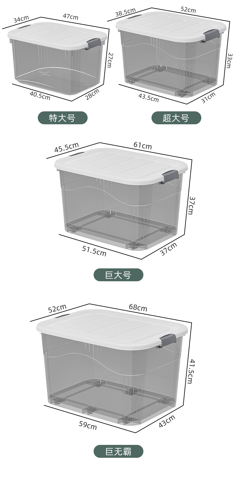 대형 보관 상자 의류 보관 주최자 투명한 플라스틱 장난감 보관 상자 옷 옷장 보관 상자