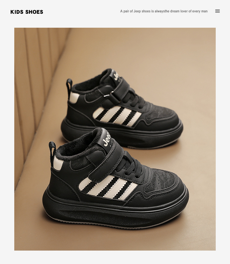 지프 어린이 벨벳 운동화 겨울 하이 탑 운동화 2024 새로운 따뜻한 소년 면화 신발 소녀 면화 부츠