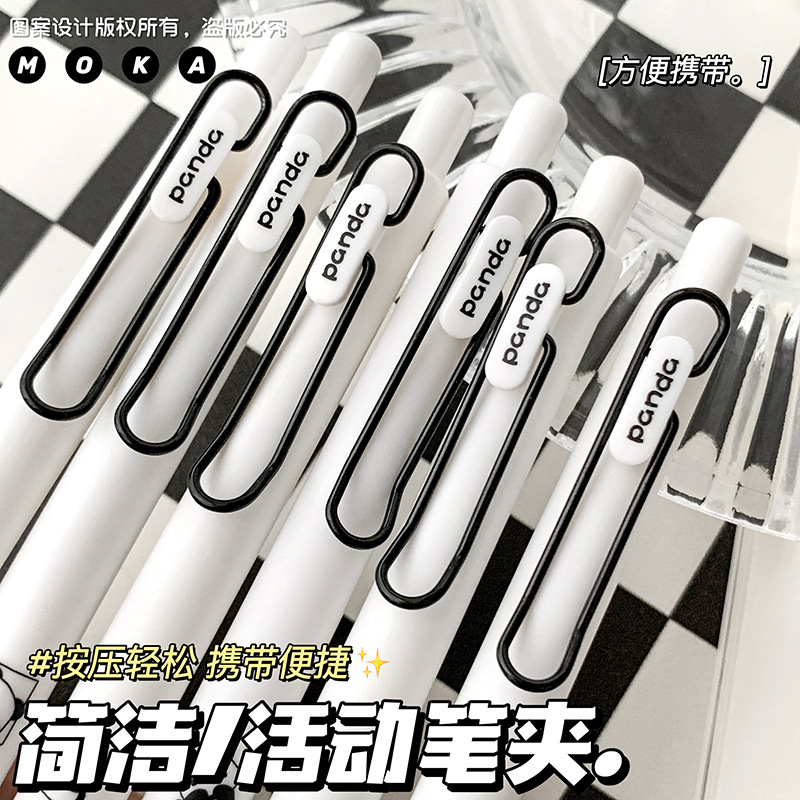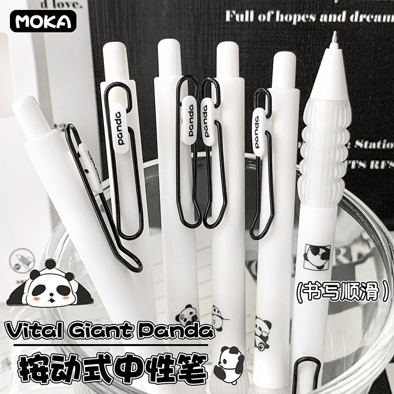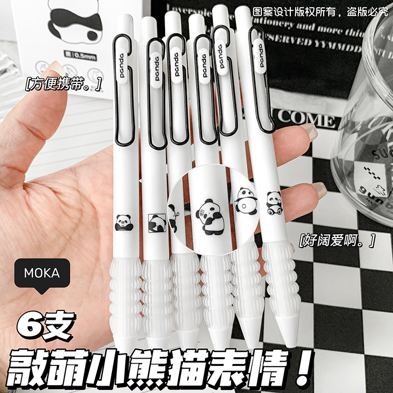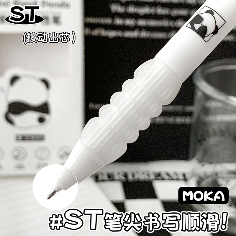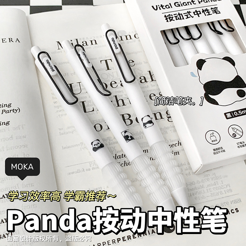 简约 熊猫 按动中性笔 学生 刷题笔 黑白 ins 日系