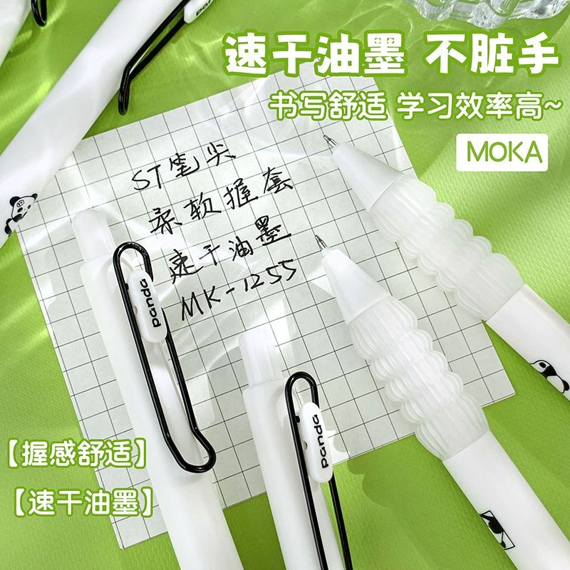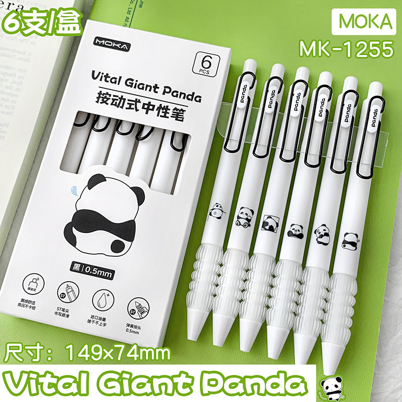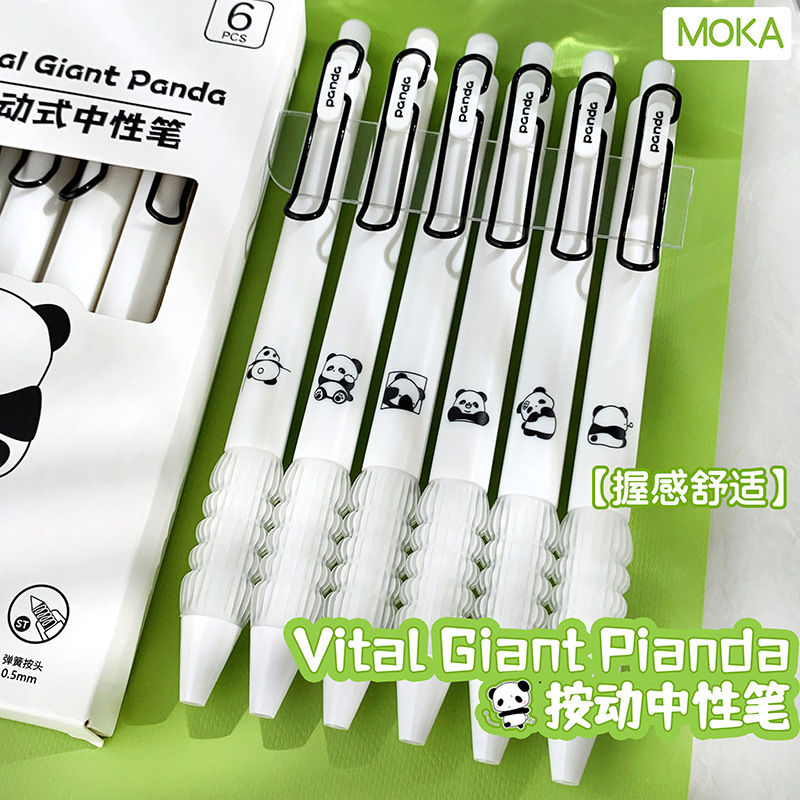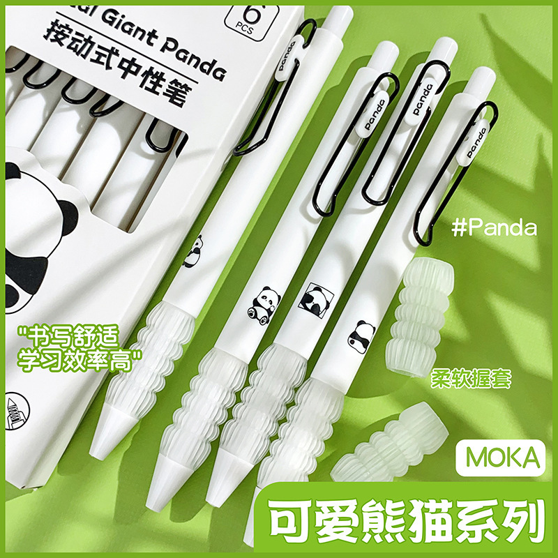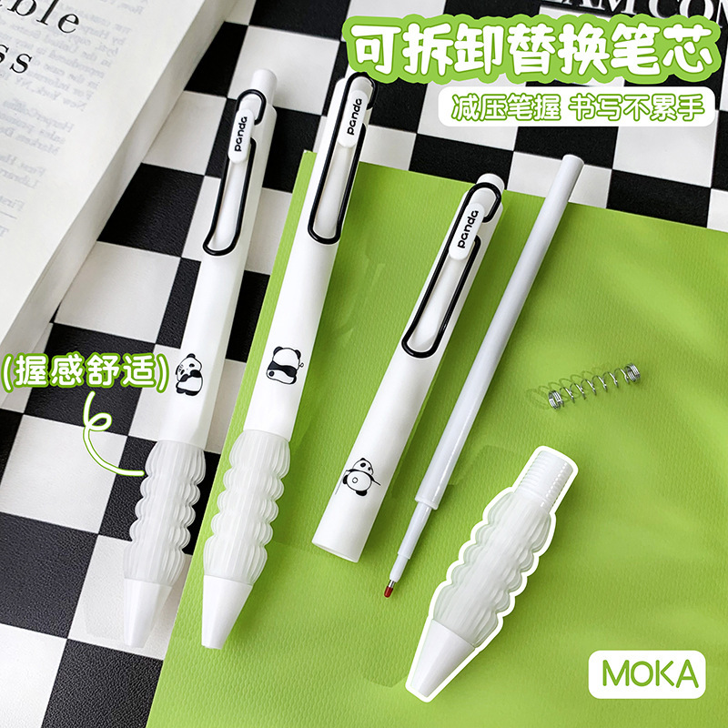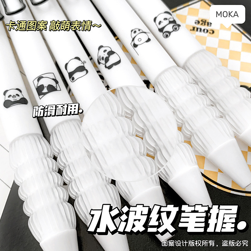 简约 熊猫 按动中性笔 学生 刷题笔 黑白 ins 日系