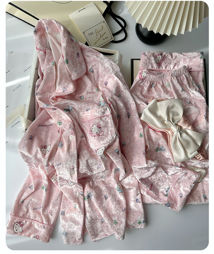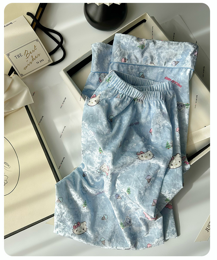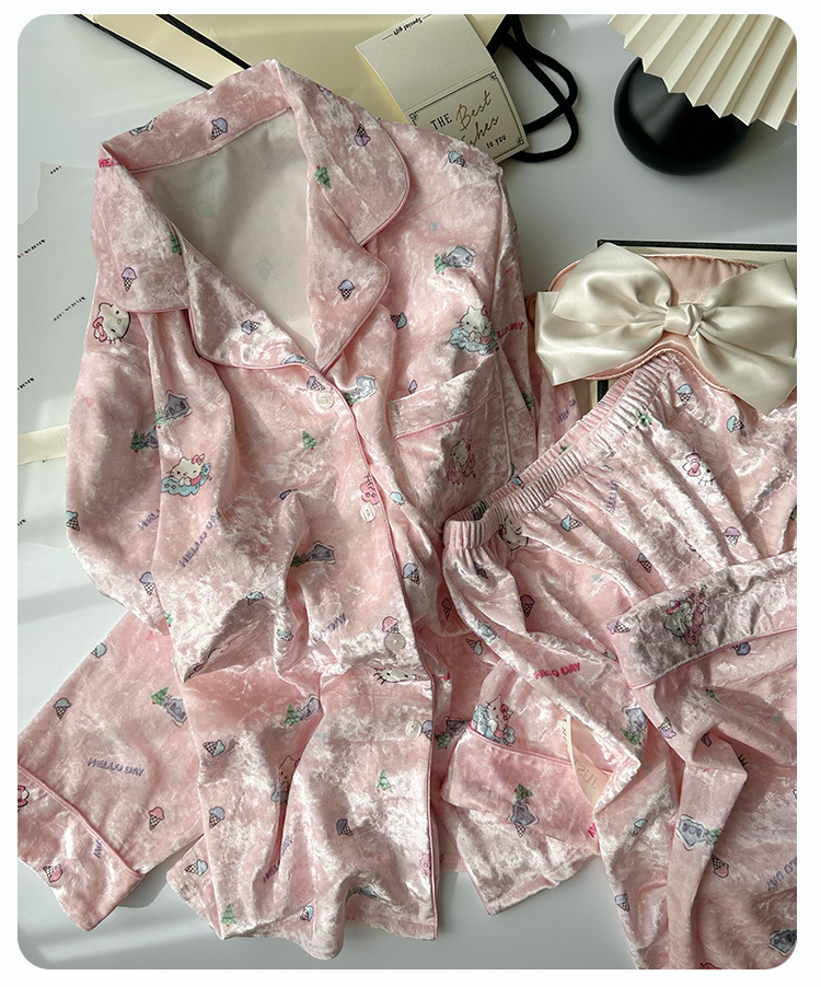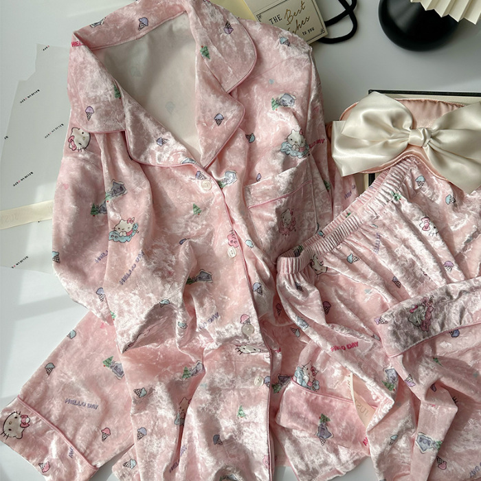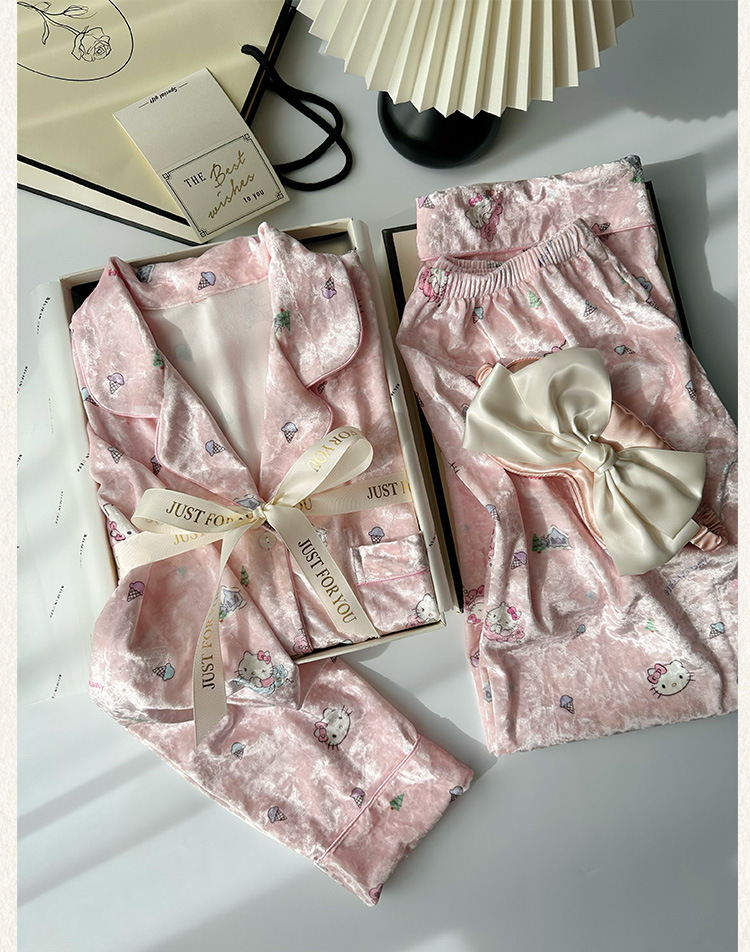 가을 뉴 골드 벨벳 파자마 여성용 긴 소매 카디건 홈 의류 세트 달콤한 소녀 만화 외부 마모 세대 헤어스토어 가기