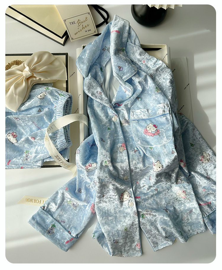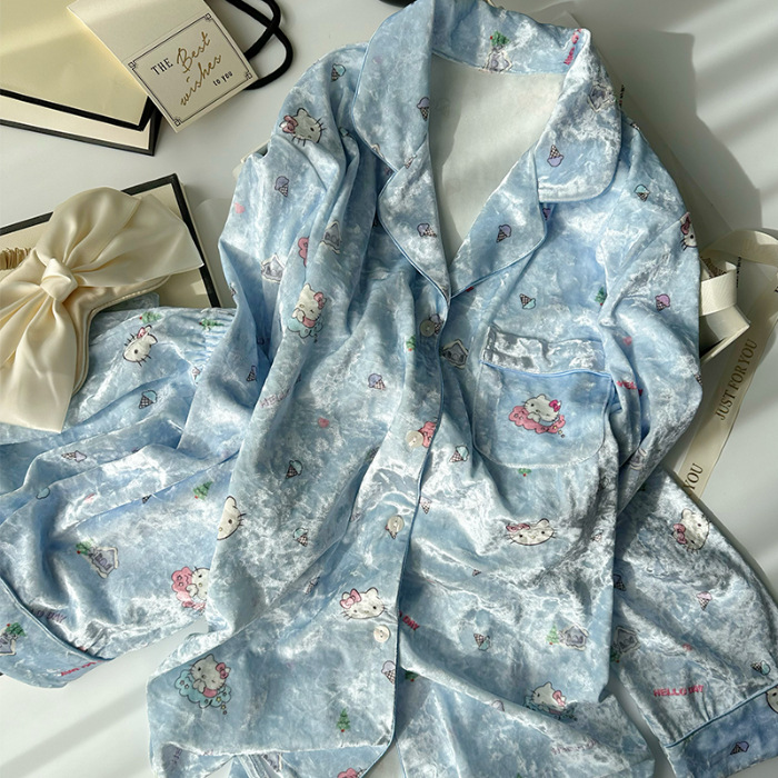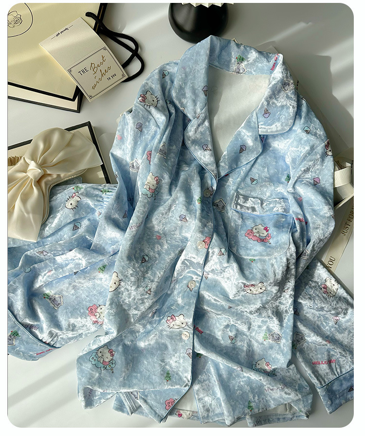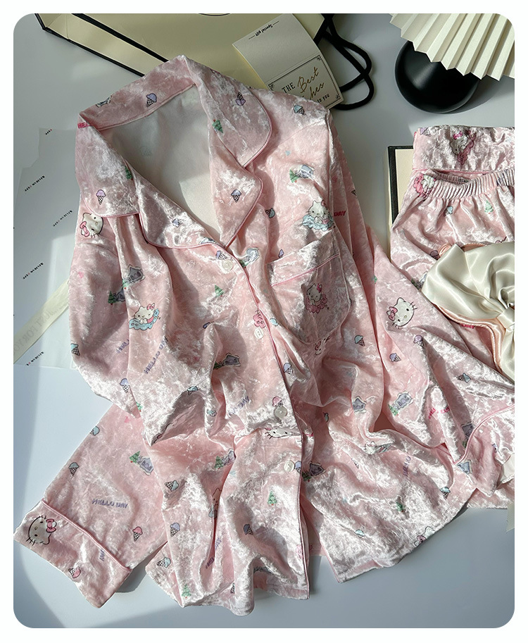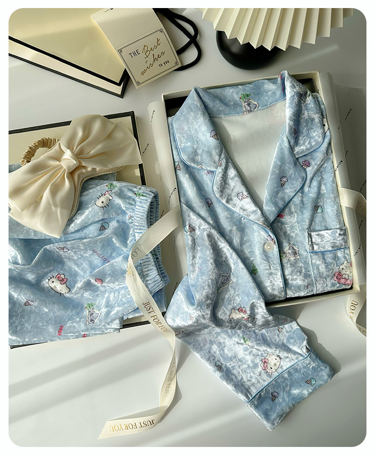 가을 뉴 골드 벨벳 파자마 여성용 긴 소매 카디건 홈 의류 세트 달콤한 소녀 만화 외부 마모 세대 헤어스토어 가기