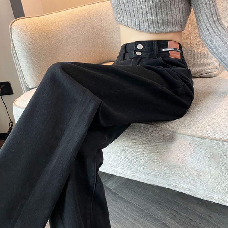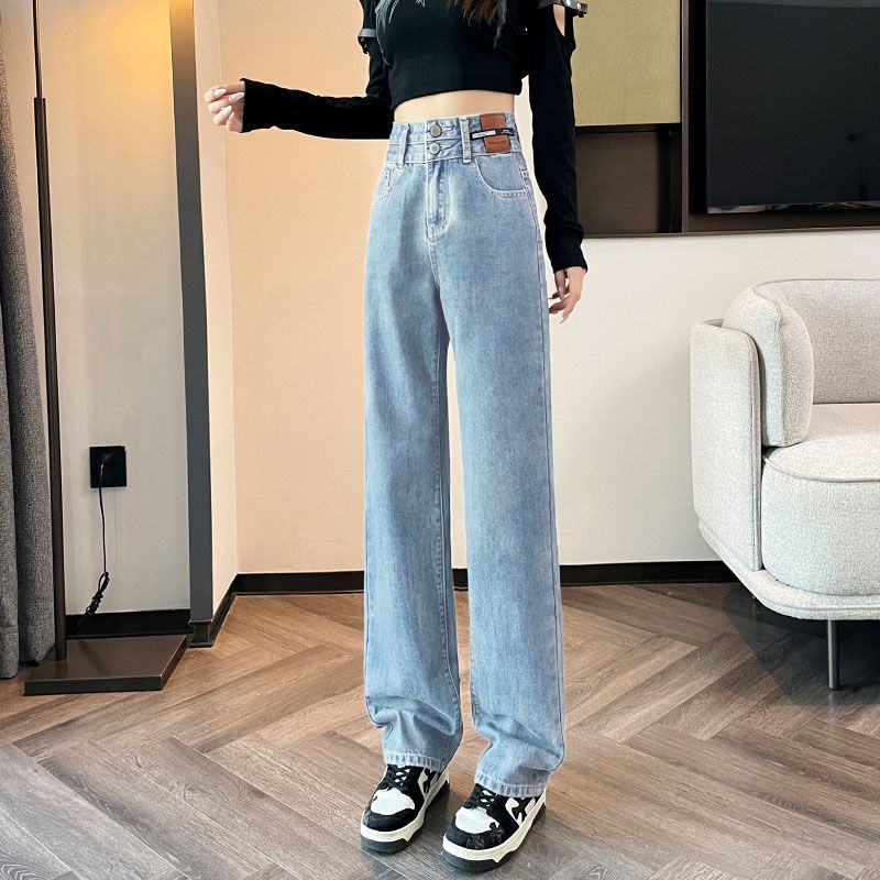 2024 레트로 블루 새로운 높은 허리 청바지 두 버클 서양식 고기 넓은 다리 바지 슬리밍 여성용 느슨한 걸레 바지스토어 가기