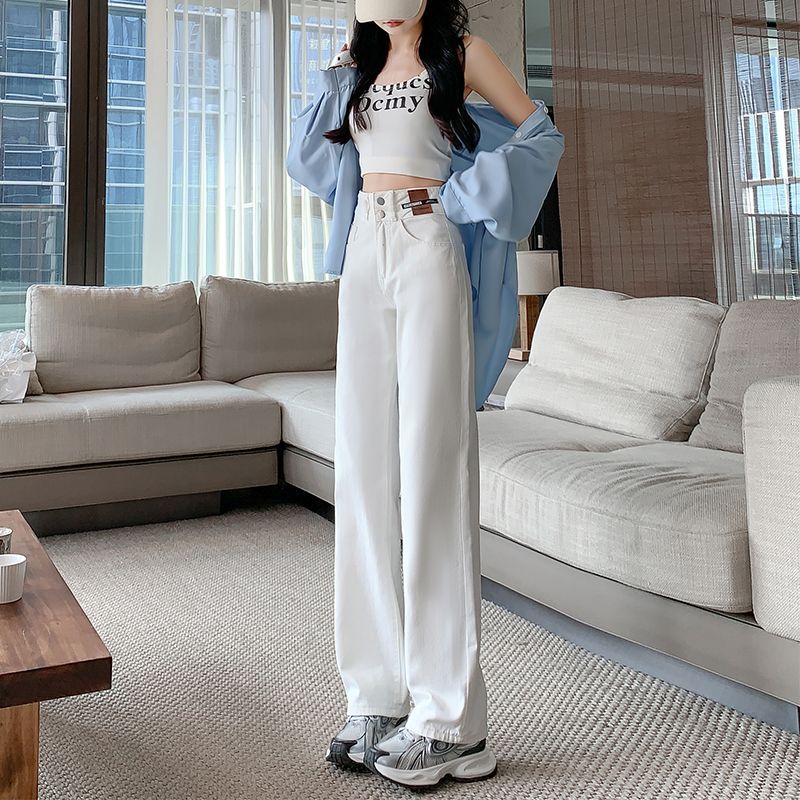 2024 레트로 블루 새로운 높은 허리 청바지 두 버클 서양식 고기 넓은 다리 바지 슬리밍 여성용 느슨한 걸레 바지